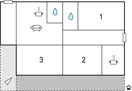 Boligen består af to adskilte enheder, som deler en fælles terrasse. Den er ideel for to familier, som gerne vil holde ferie sammen, men samtidig værne om privatlivet. Denne lejlighed har tre soveværelser med dobbeltsenge og kan derfor rumme seks gæster. Der er desuden køkken-alrum og to badeværelser.