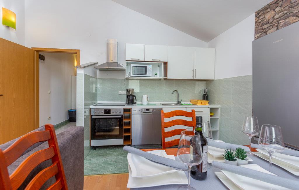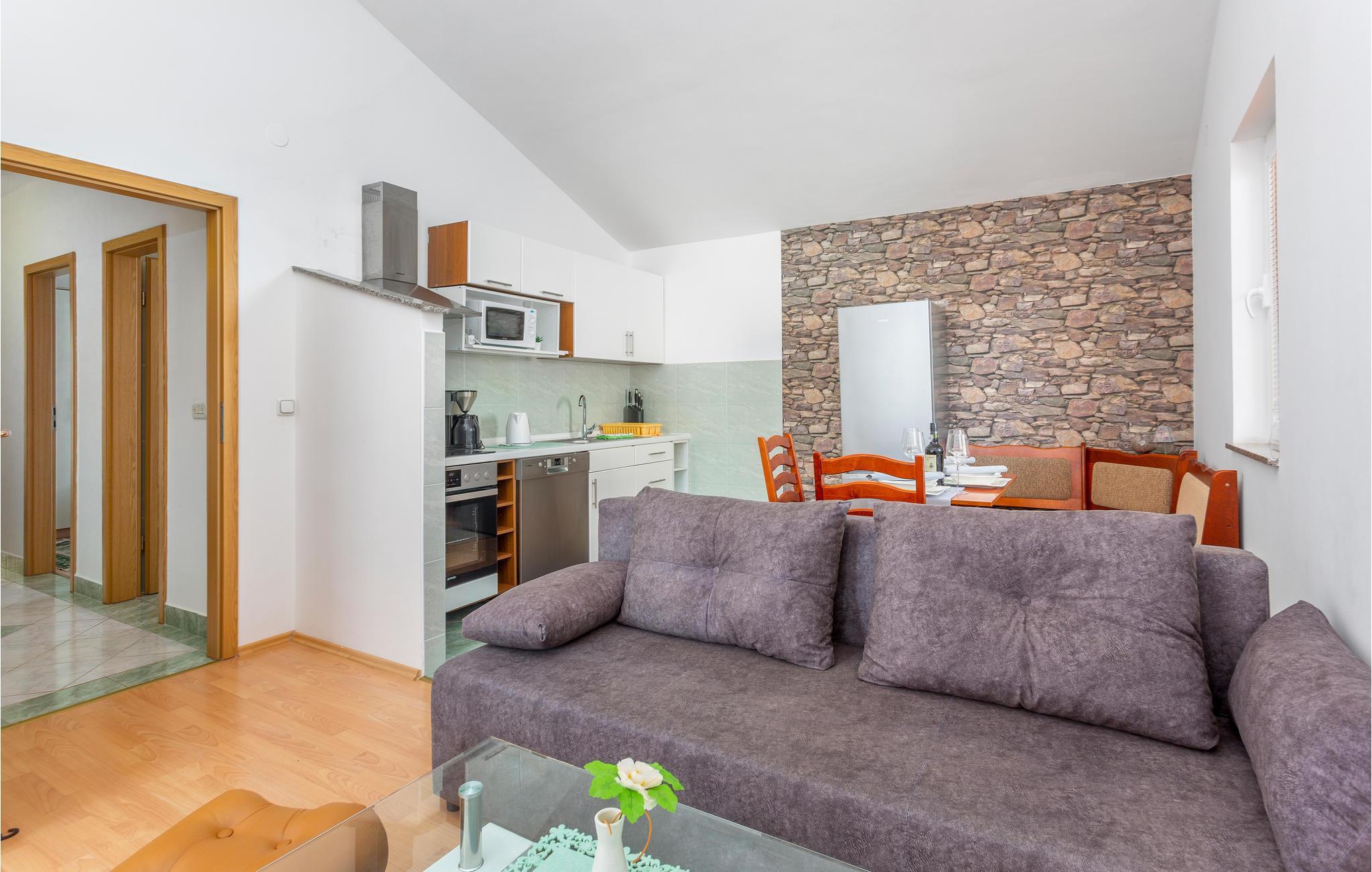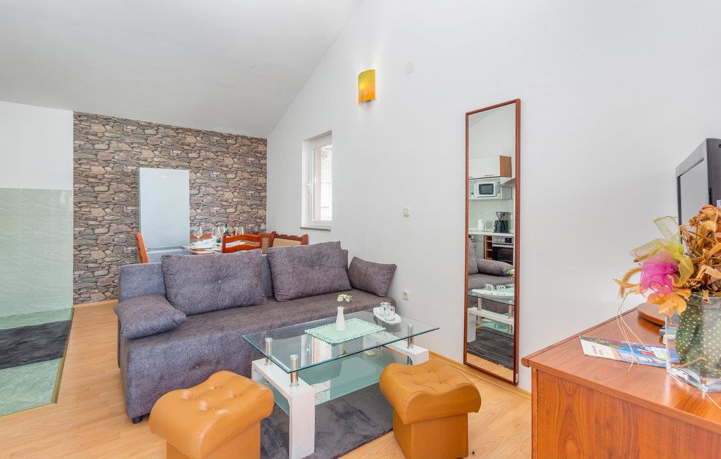 På øen Krk, på anden sal i et beboelseshus, ligger denne enkle og praktisk indrettede ferielejlighed.