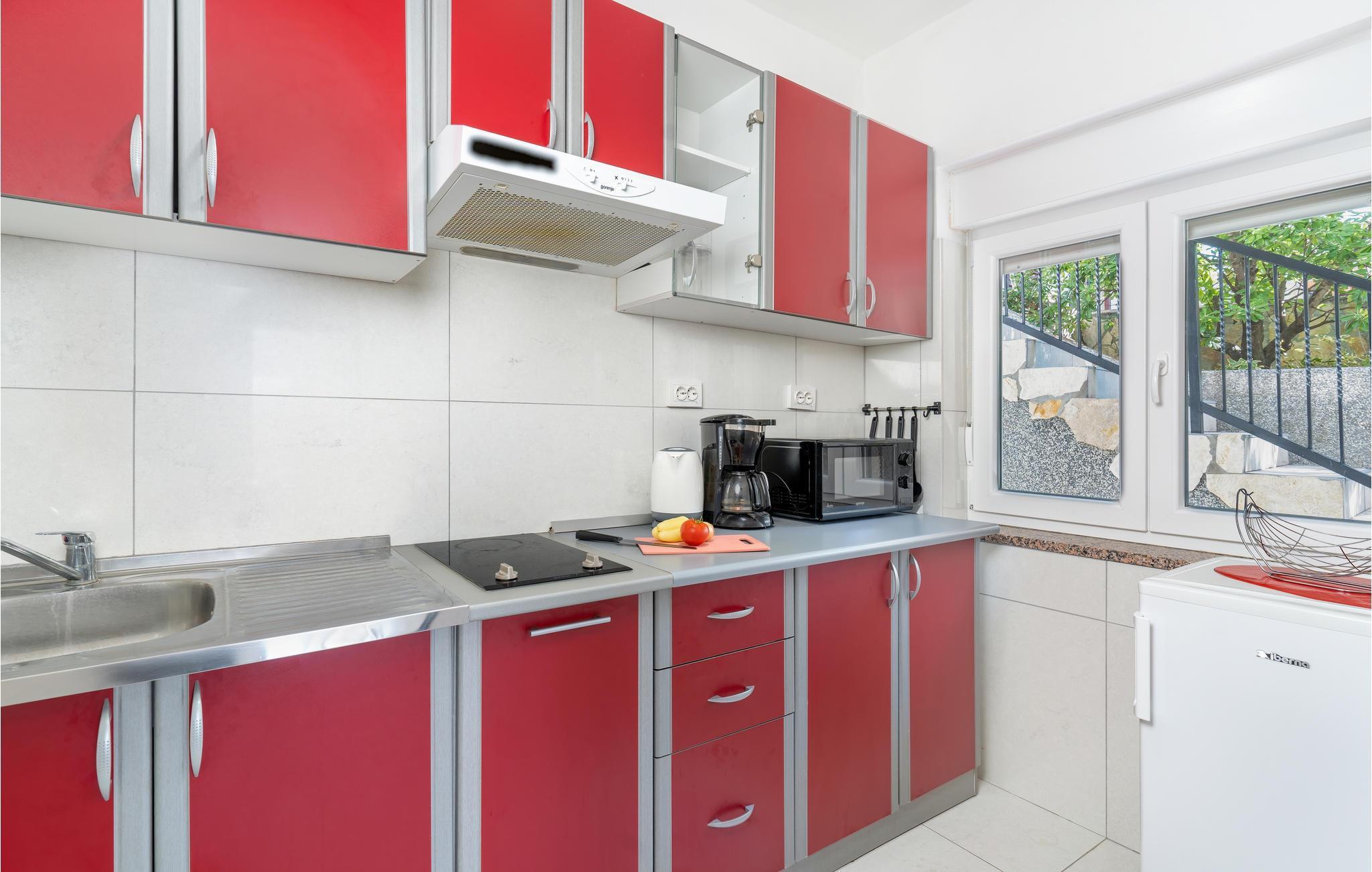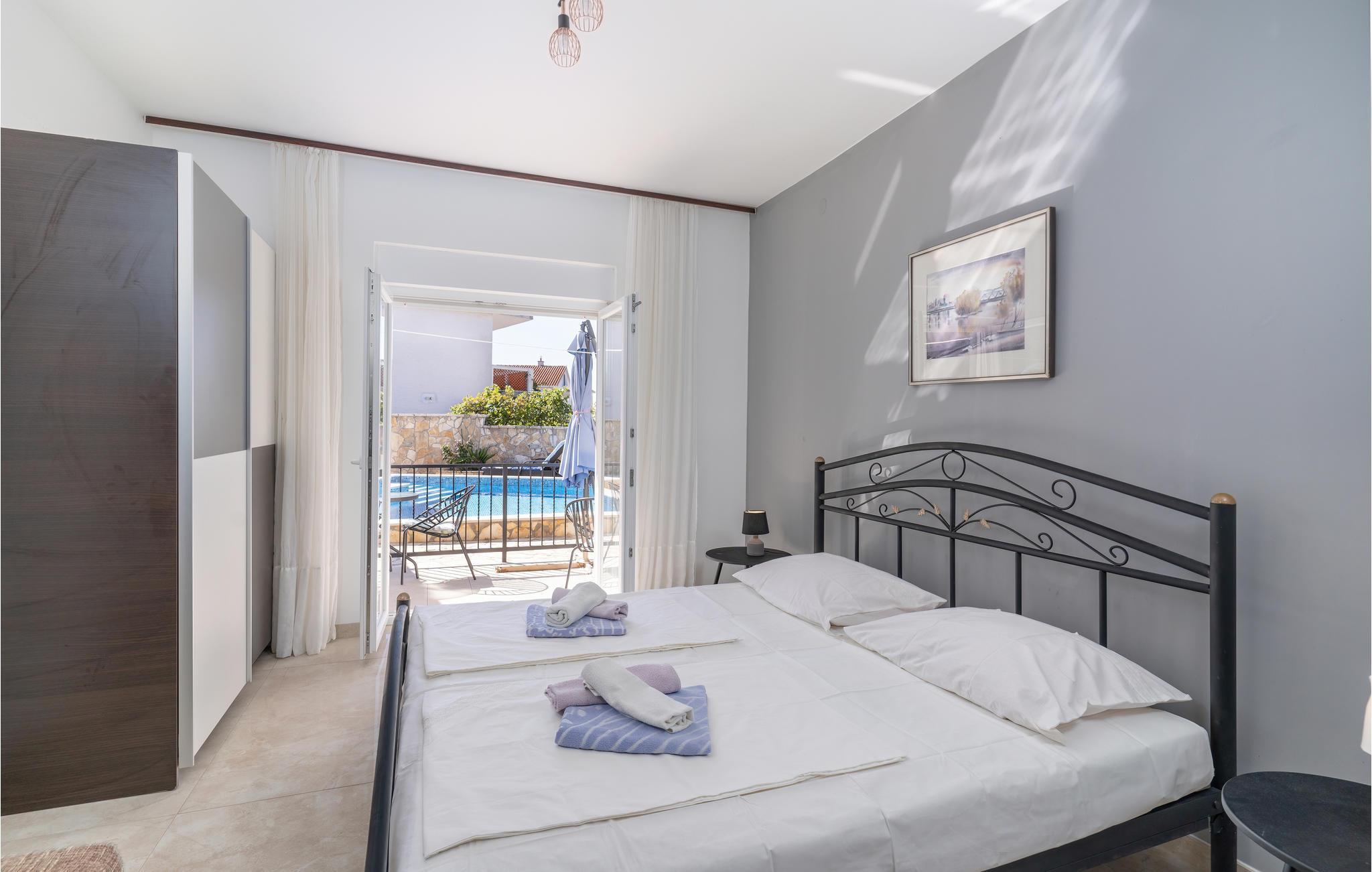 I en rolig del af byen Krk, ligger disse enkelt og praktisk indrettede ferielejligheder med balkon eller terrasse. Der hører en overdækket fælles terrasse med grill til huset, som alle har adgang til. Tag også en forfriskende svømmetur i poolen i det lille hus, som også kan bruges af alle fra huset. Det varer ikke længe at gå til de nærmeste strande. Der er mange muligheder for aktiv ferie: gocart-bane, wakeboarding, vandskilift, ride og cykle. Den rige kulturhistorie, de mange former for underholdning og et kæmpe udvalg af restauranter hører alle med til at gøre dette feriemål så populært og elsket.