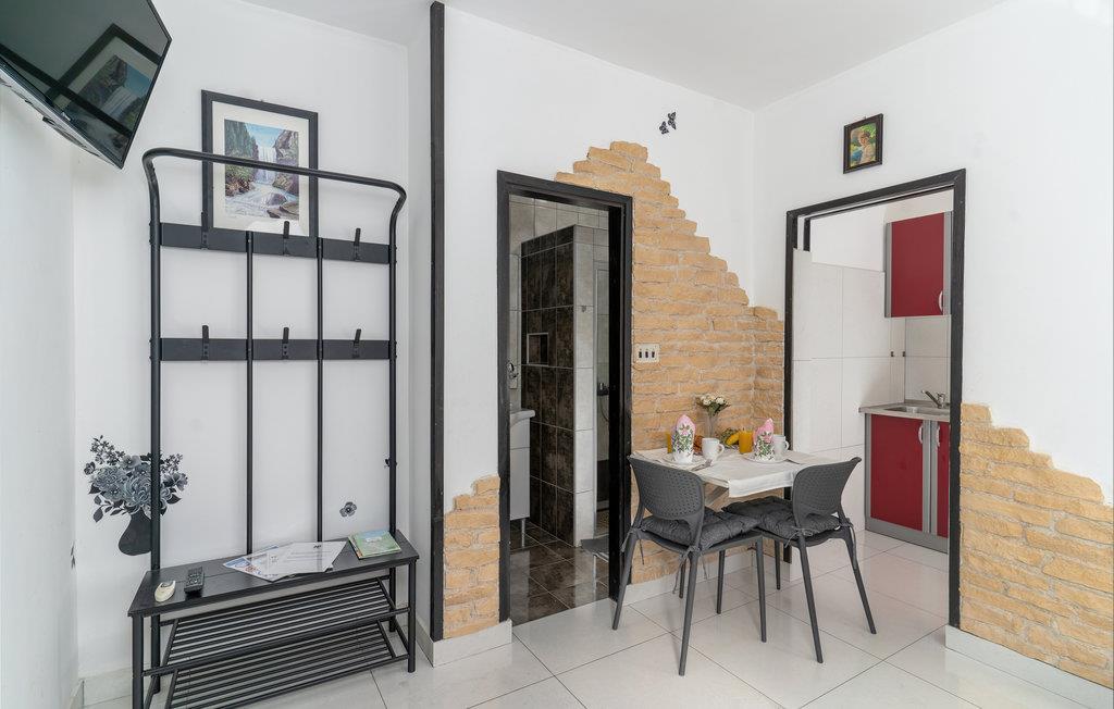 I en rolig del af byen Krk, ligger disse enkelt og praktisk indrettede ferielejligheder med balkon eller terrasse. Der hører en overdækket fælles terrasse med grill til huset, som alle har adgang til. Tag også en forfriskende svømmetur i poolen i det lille hus, som også kan bruges af alle fra huset. Det varer ikke længe at gå til de nærmeste strande. Der er mange muligheder for aktiv ferie: gocart-bane, wakeboarding, vandskilift, ride og cykle. Den rige kulturhistorie, de mange former for underholdning og et kæmpe udvalg af restauranter hører alle med til at gøre dette feriemål så populært og elsket.
