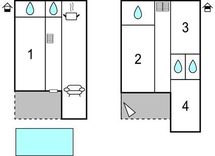 Badeværelse (nr. 1) - WC. Varmt og koldt vand. Badekar