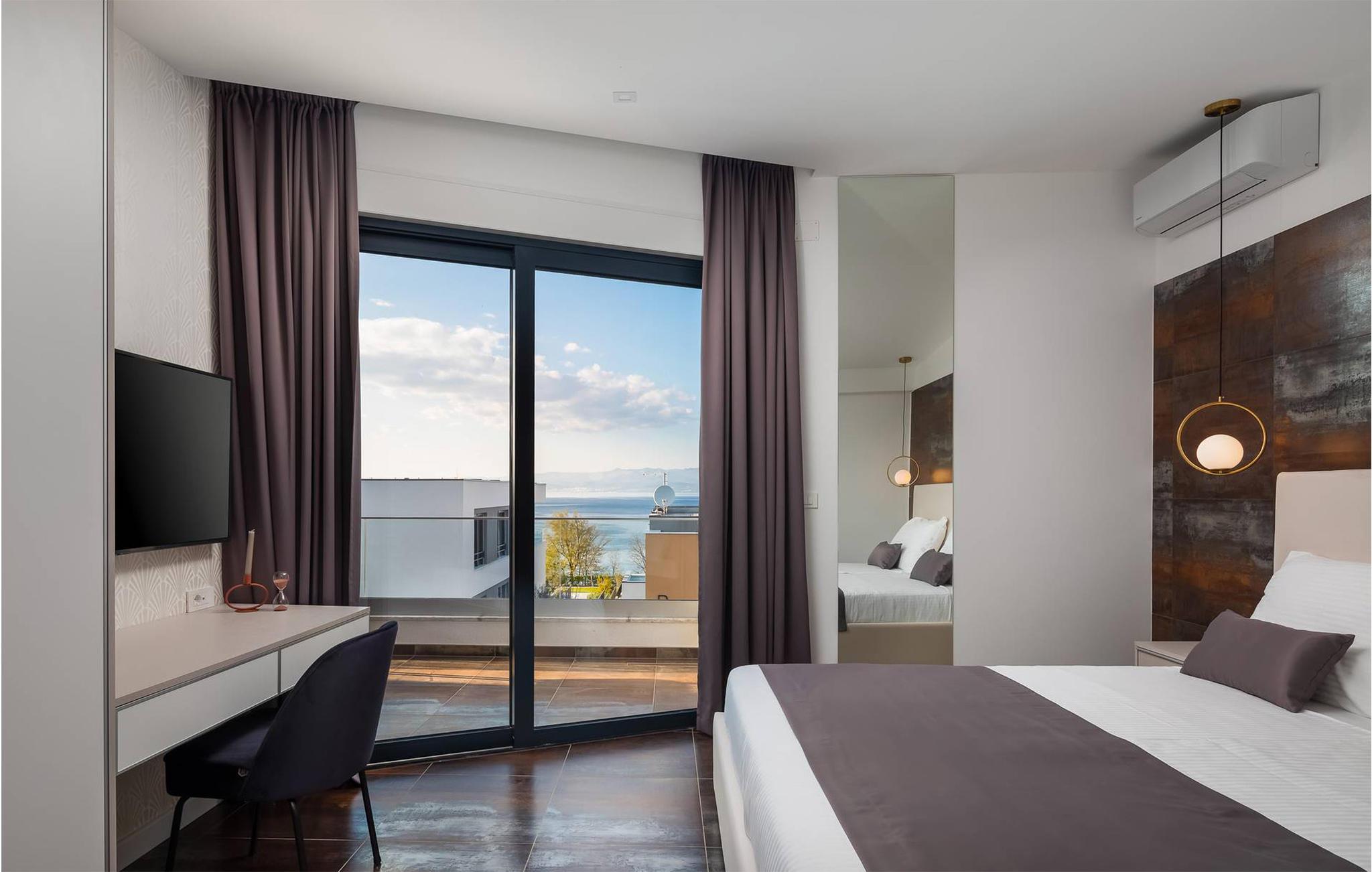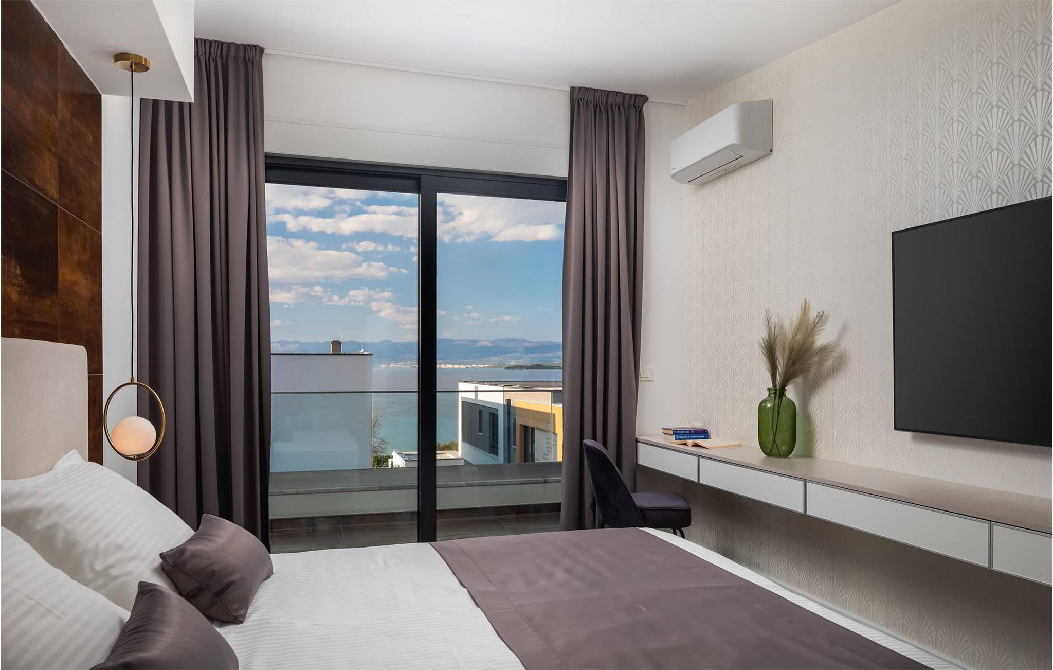 Nyd en vidunderlig panoramaudsigt til havet fra denne indbydende ferielejlighed.