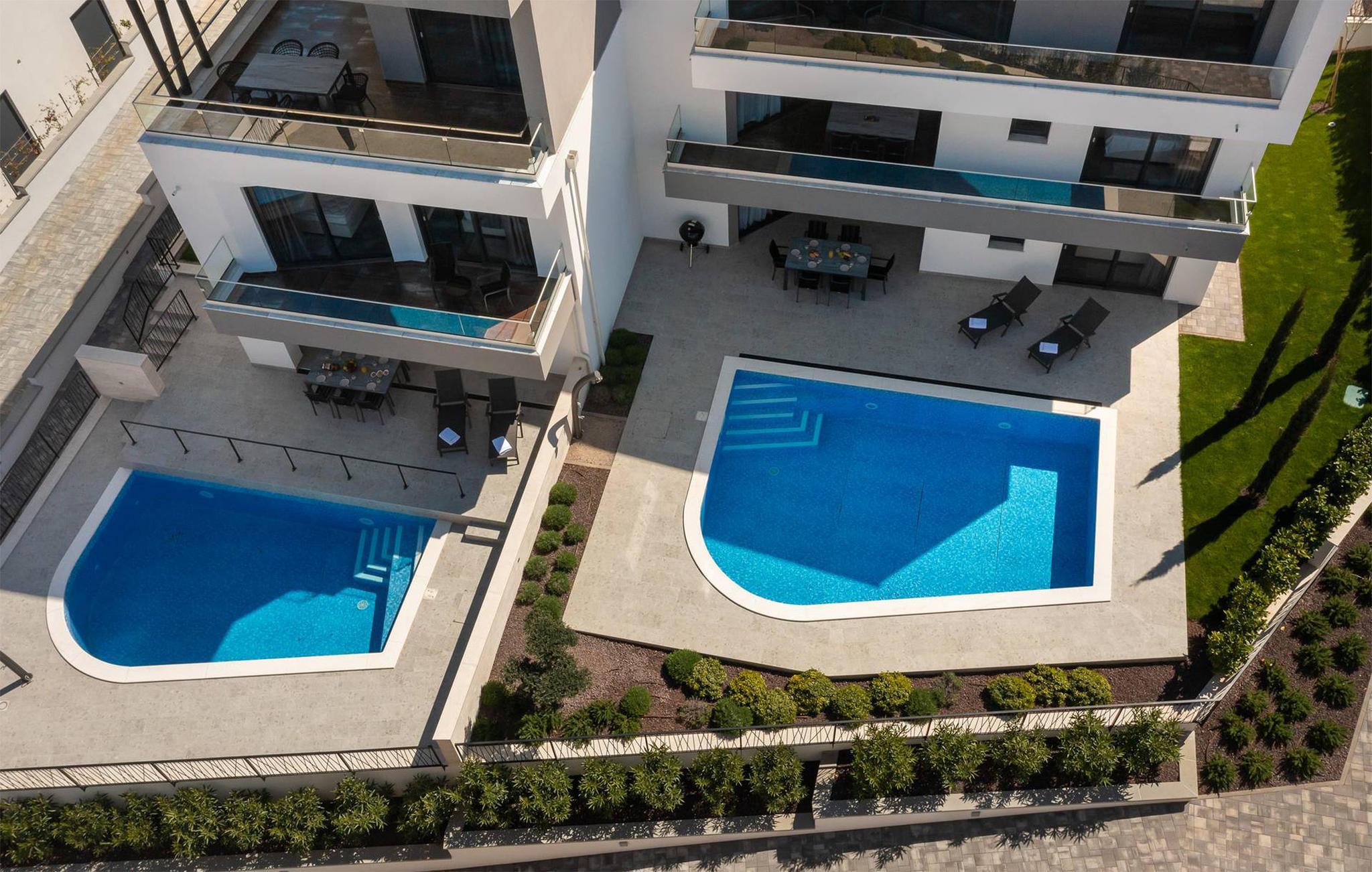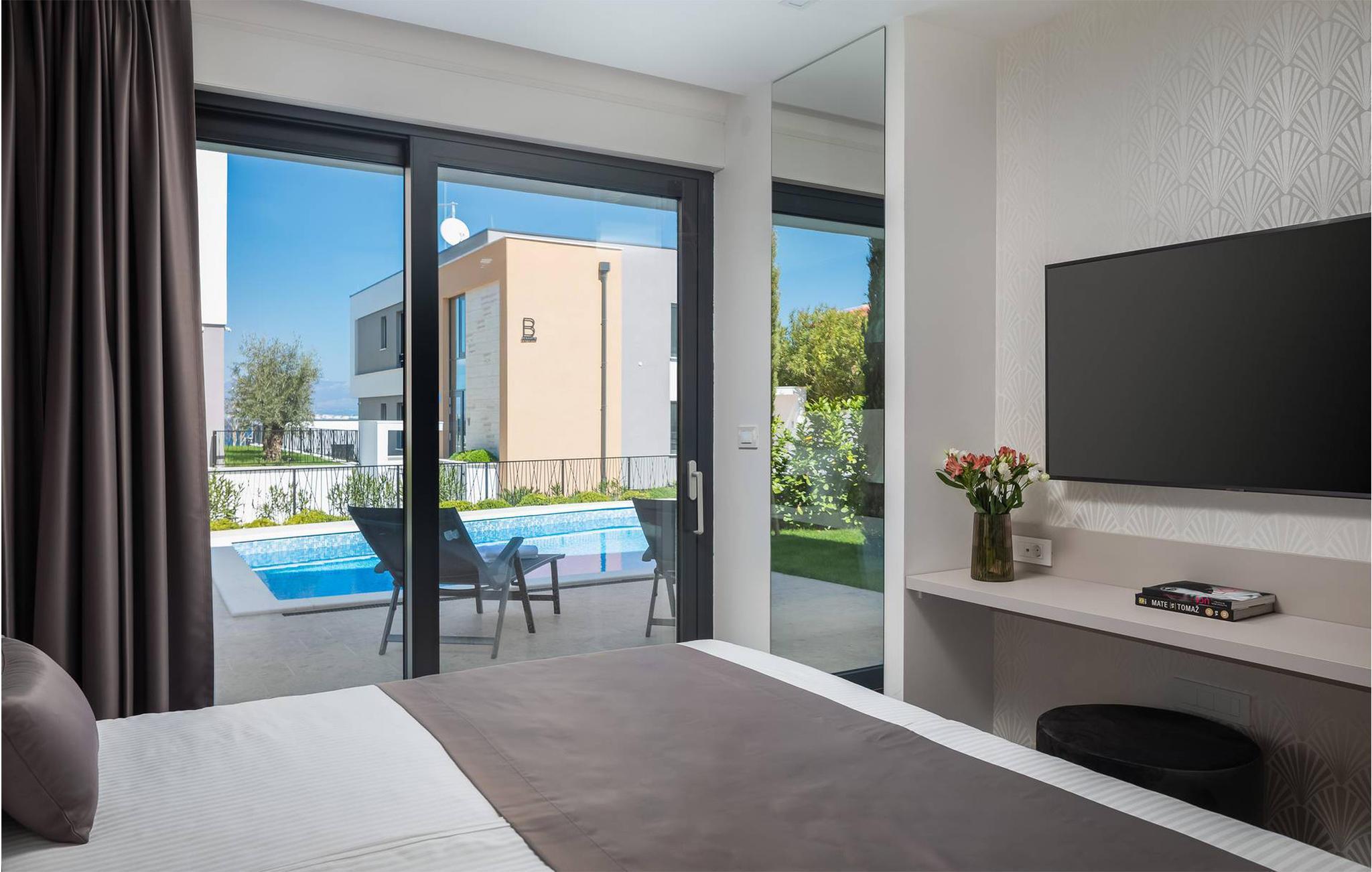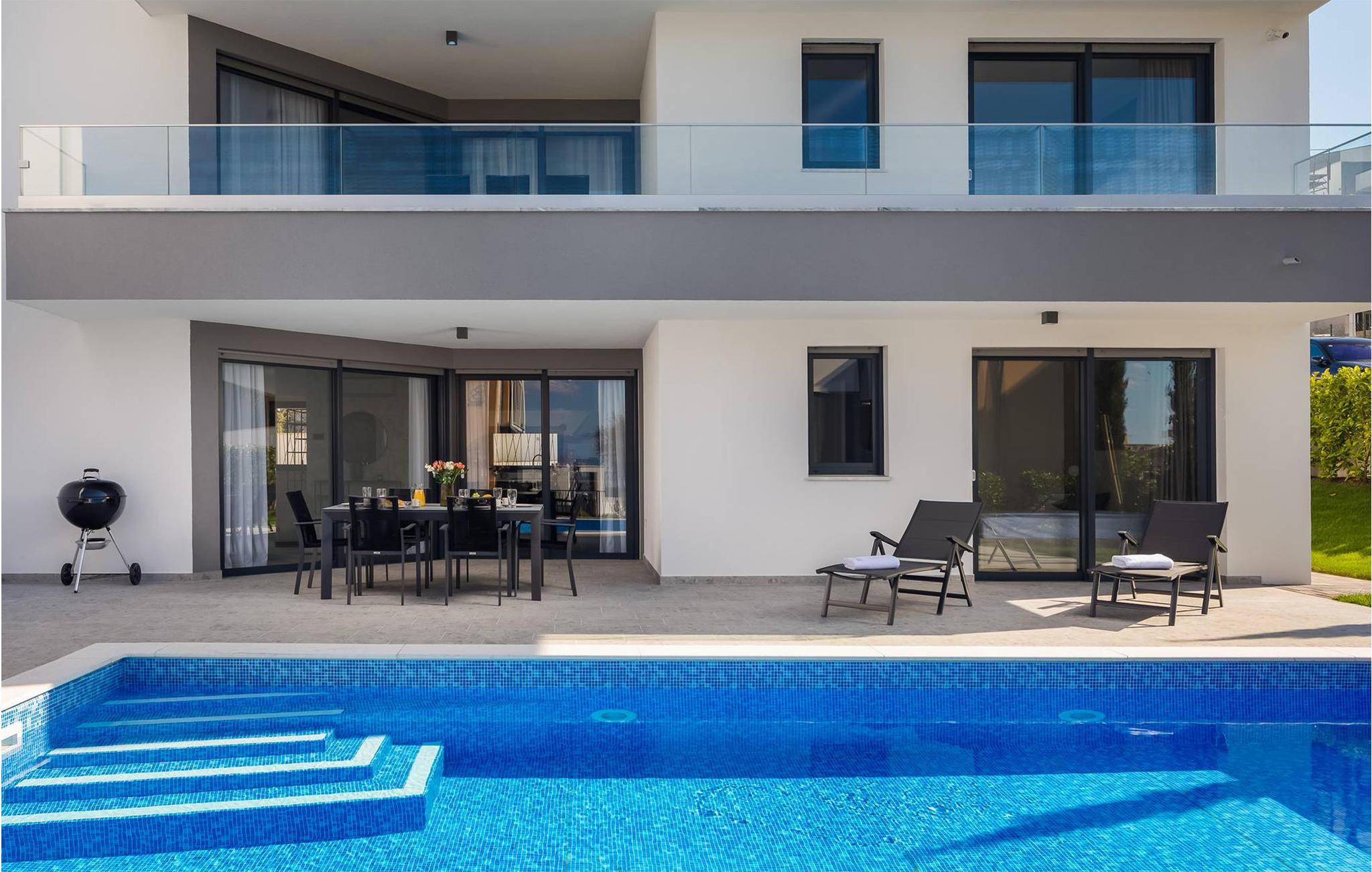 Udenfor kan I tilbringe I nyde ferie ved den private pool og slappe af med alt fra at bade, ligge i solen eller nyde panoramaudsigten til havet.