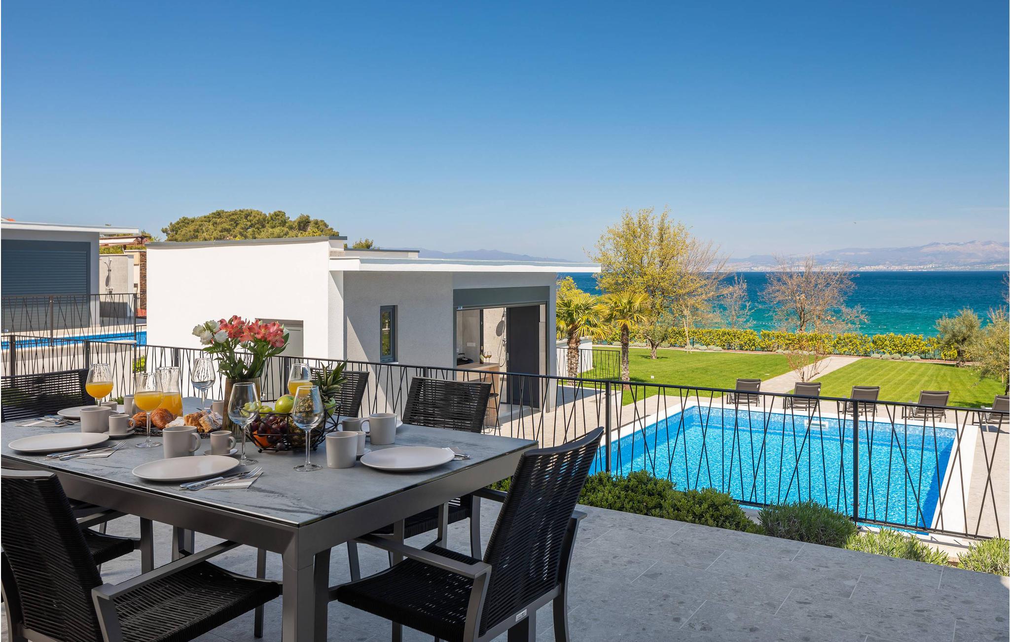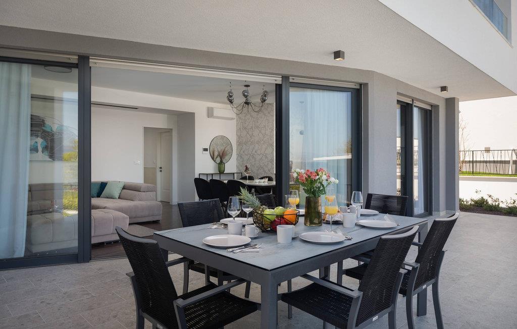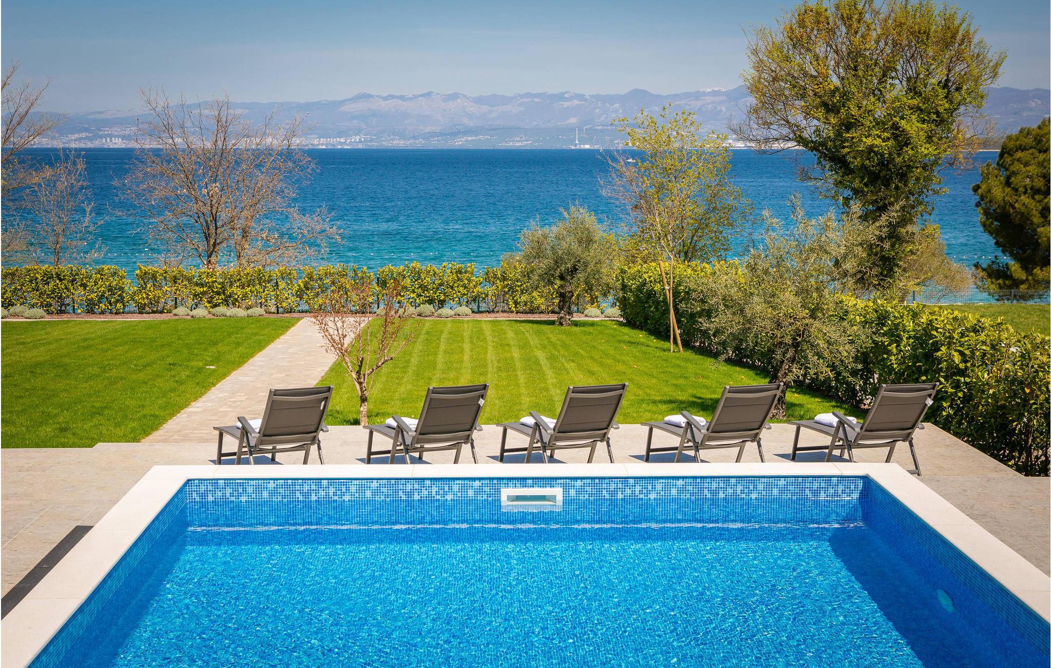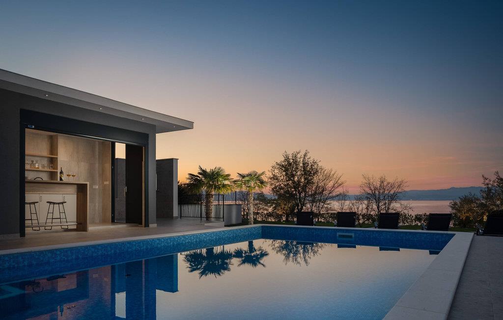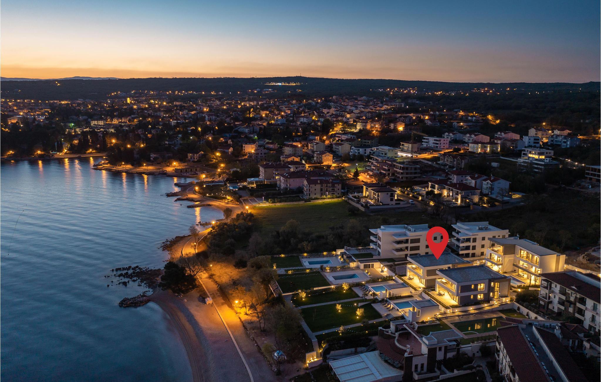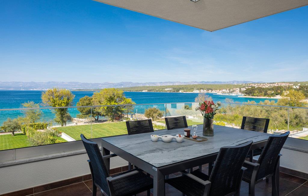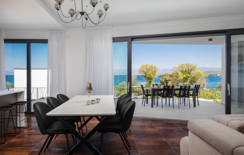 Det rummelige feriehus ligger kun 20 m fra stenstranden på øen Krk i byen Malinska og strækker sig over flere etager med plads i 6 soveværelser. Huset består af to identiske enheder i stueetagen og første sal, hvilket gør det ideelt til to familier eller en større gruppe gæster. Begge enheder har fuldt udstyrede, separate køkkener og stuer.