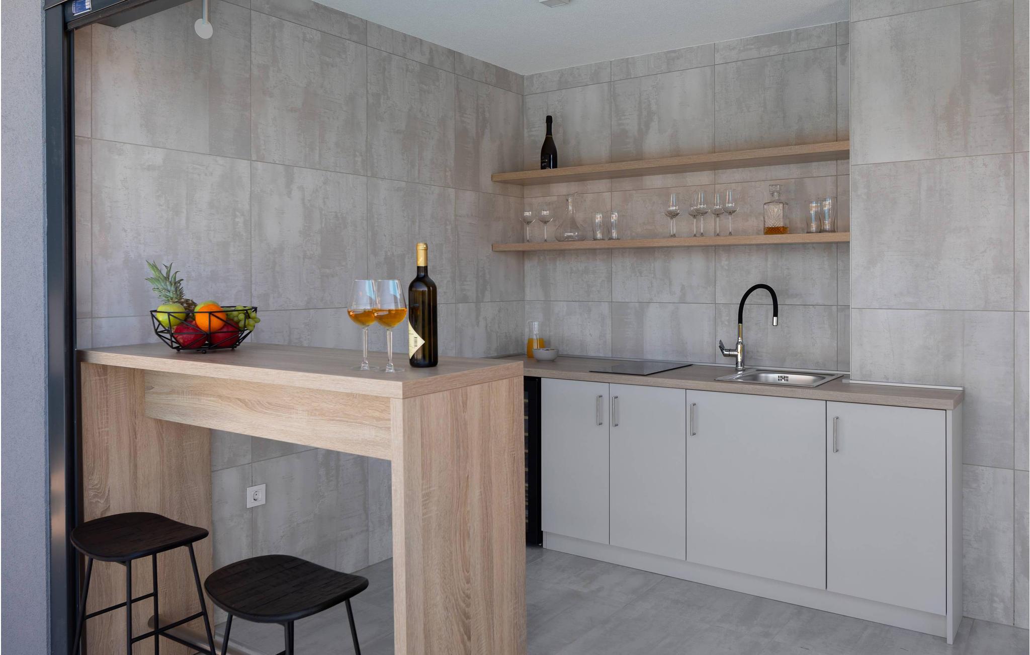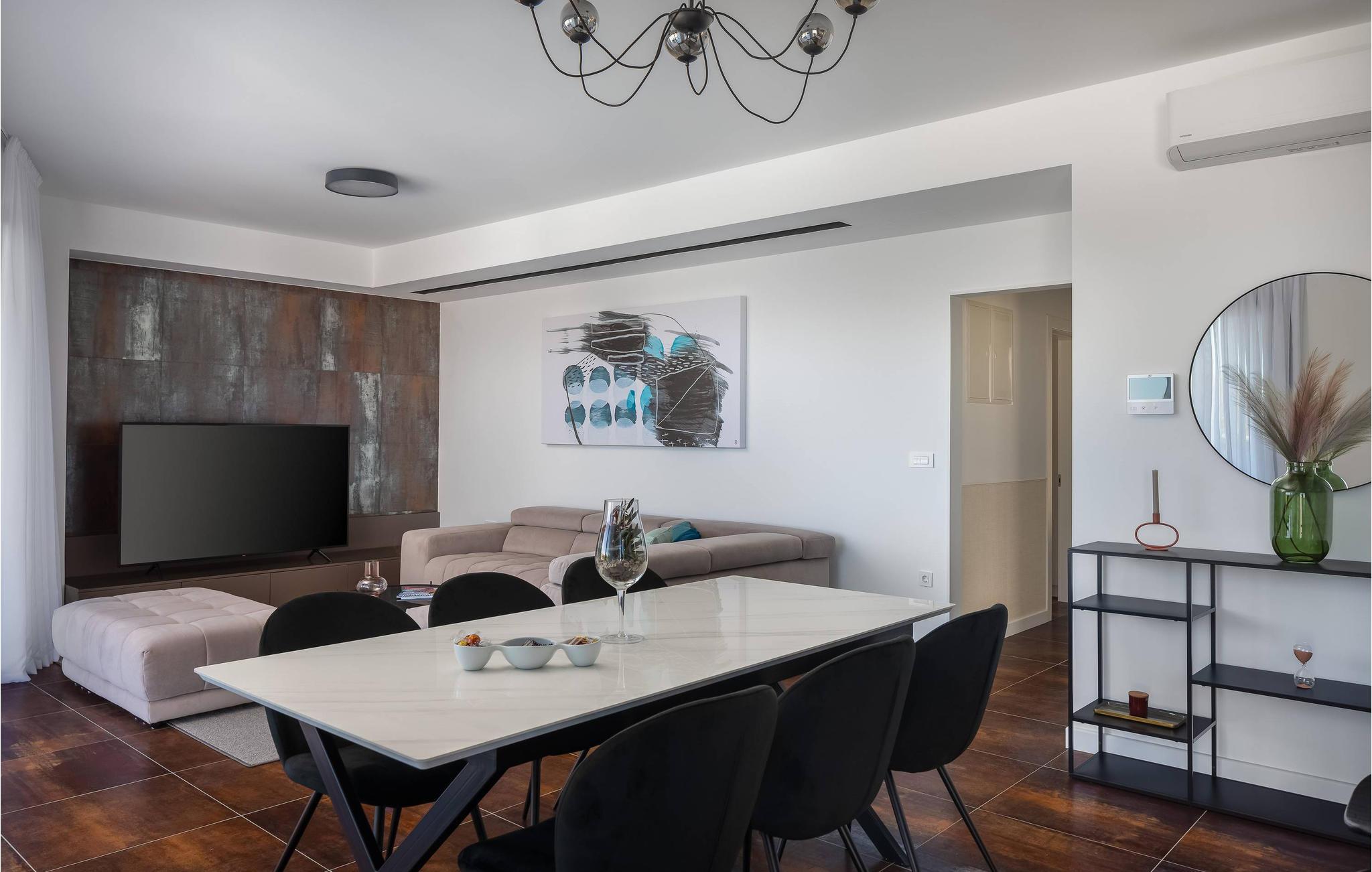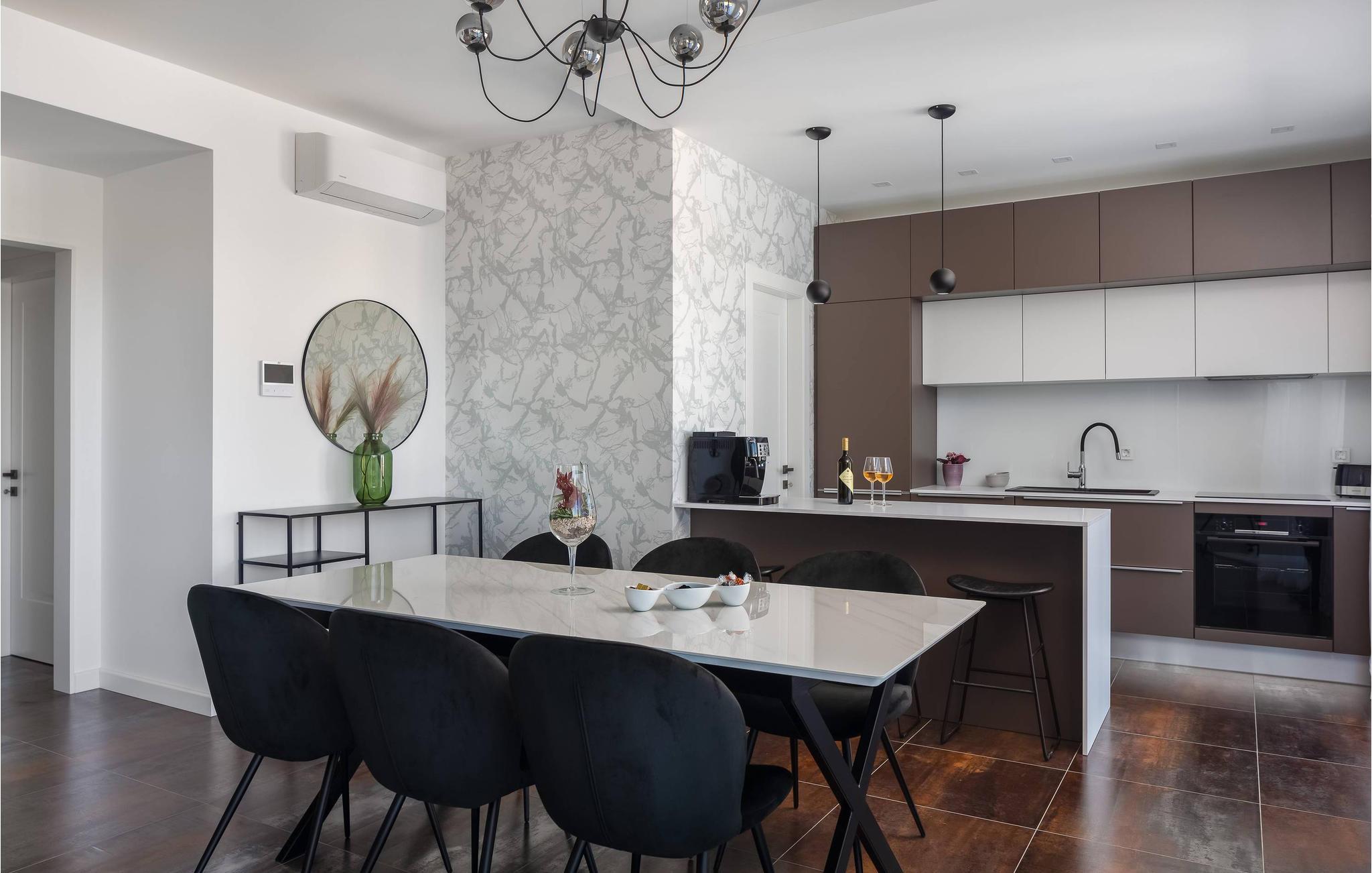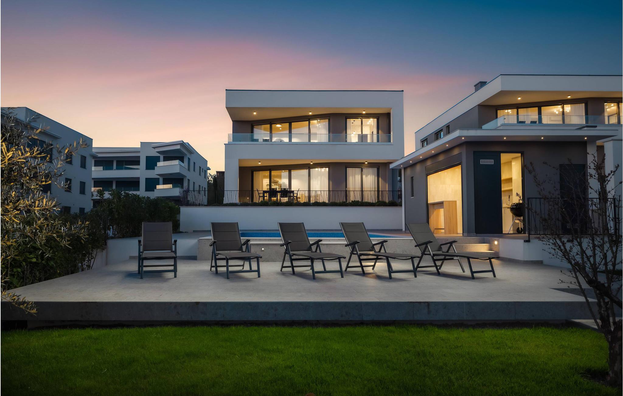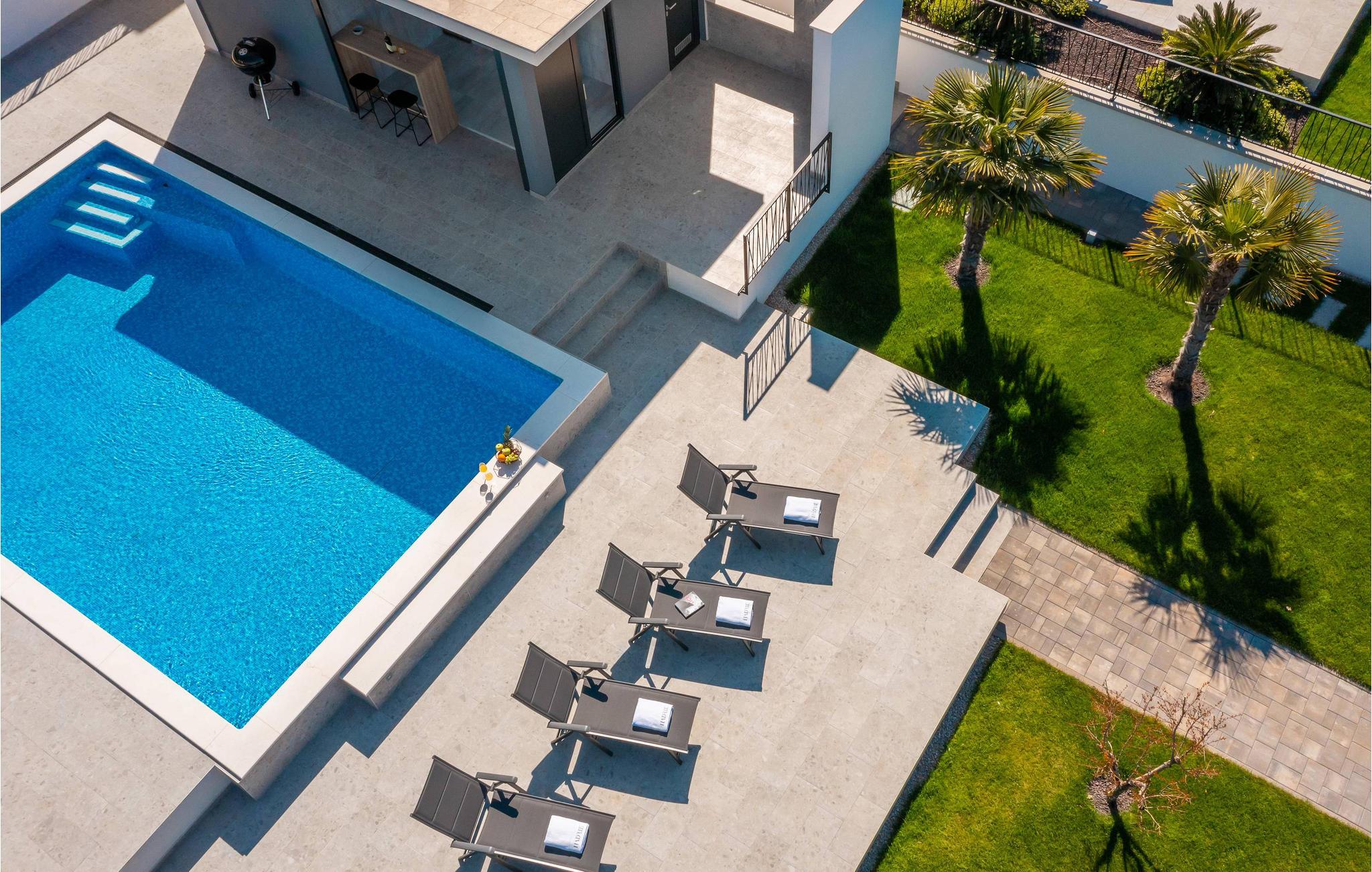 Det rummelige feriehus ligger kun 20 m fra stenstranden på øen Krk i byen Malinska og strækker sig over flere etager med plads i 6 soveværelser. Huset består af to identiske enheder i stueetagen og første sal, hvilket gør det ideelt til to familier eller en større gruppe gæster. Begge enheder har fuldt udstyrede, separate køkkener og stuer.