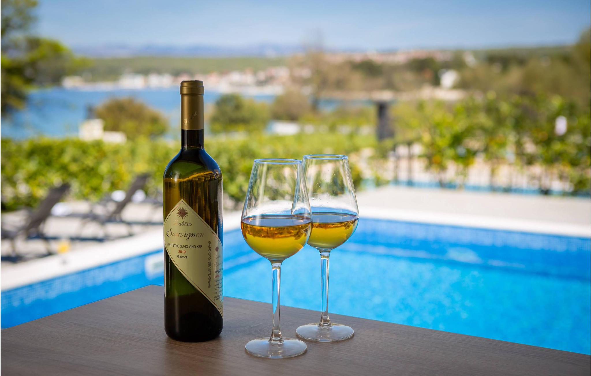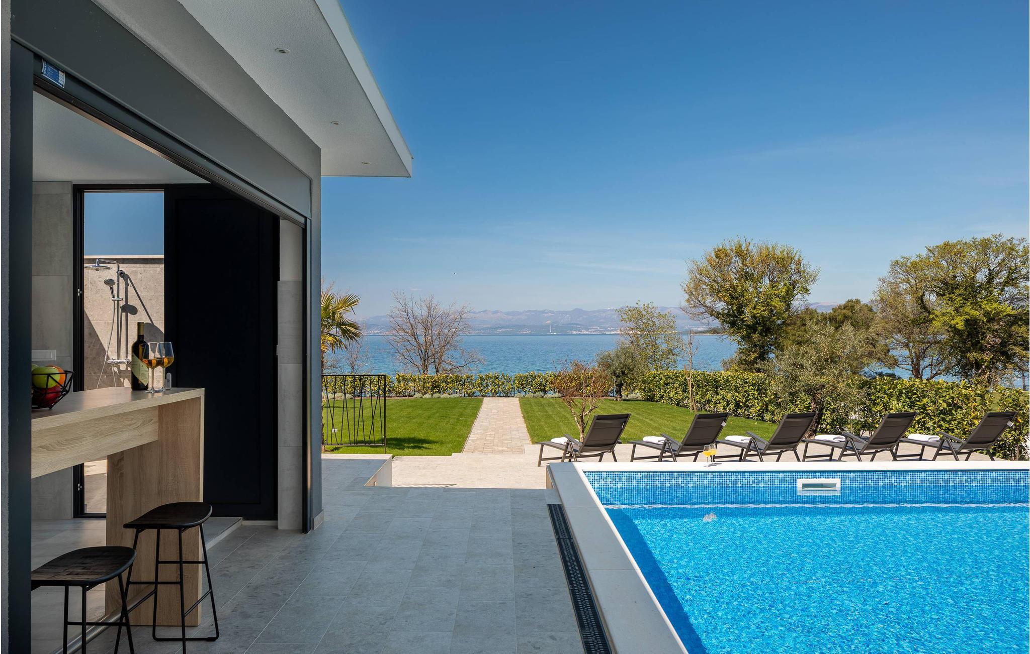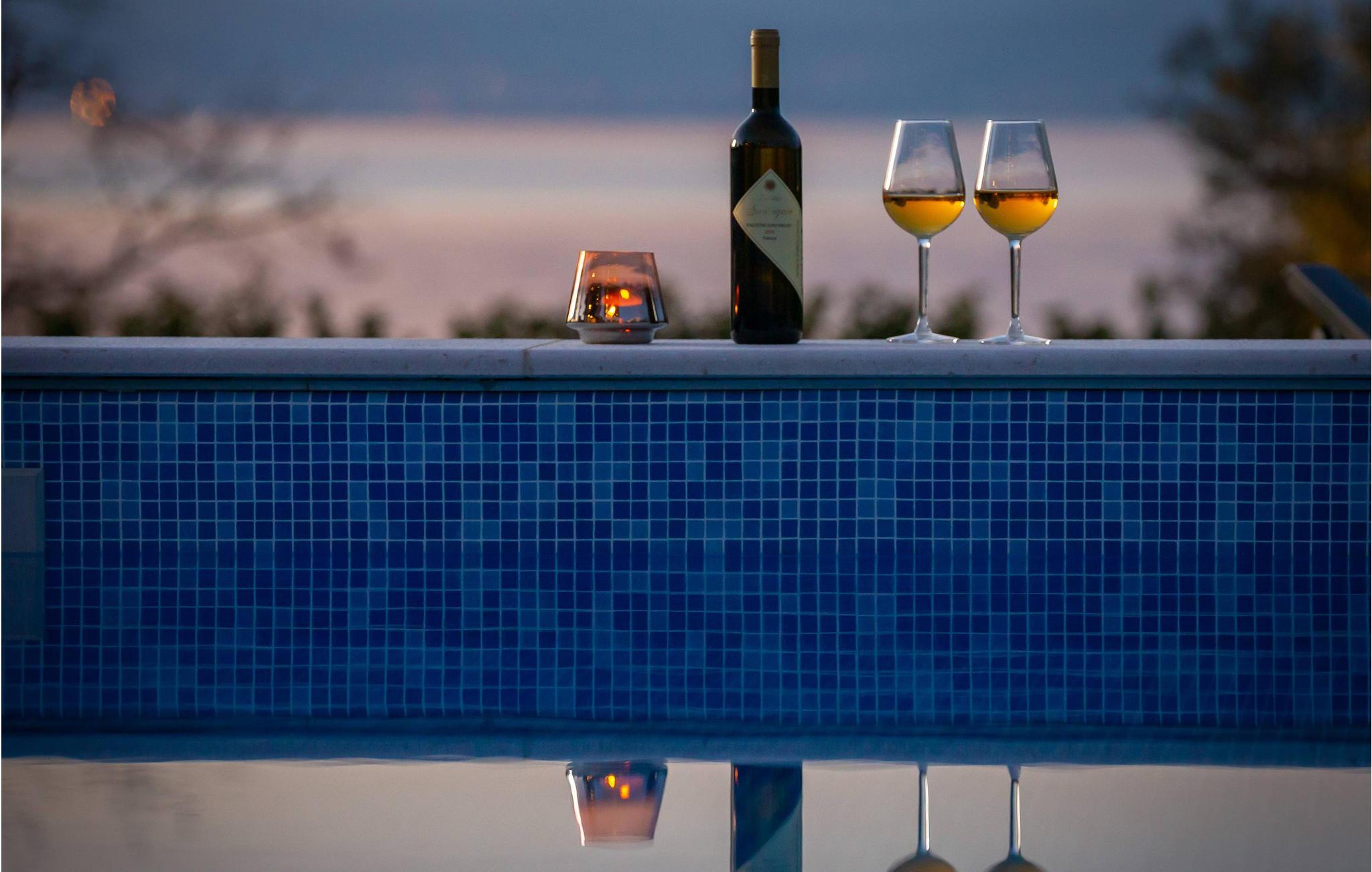 Ved poolen kan I tilbringe jeres ferie med badning eller solbadning og nyde panoramaudsigten over havet.