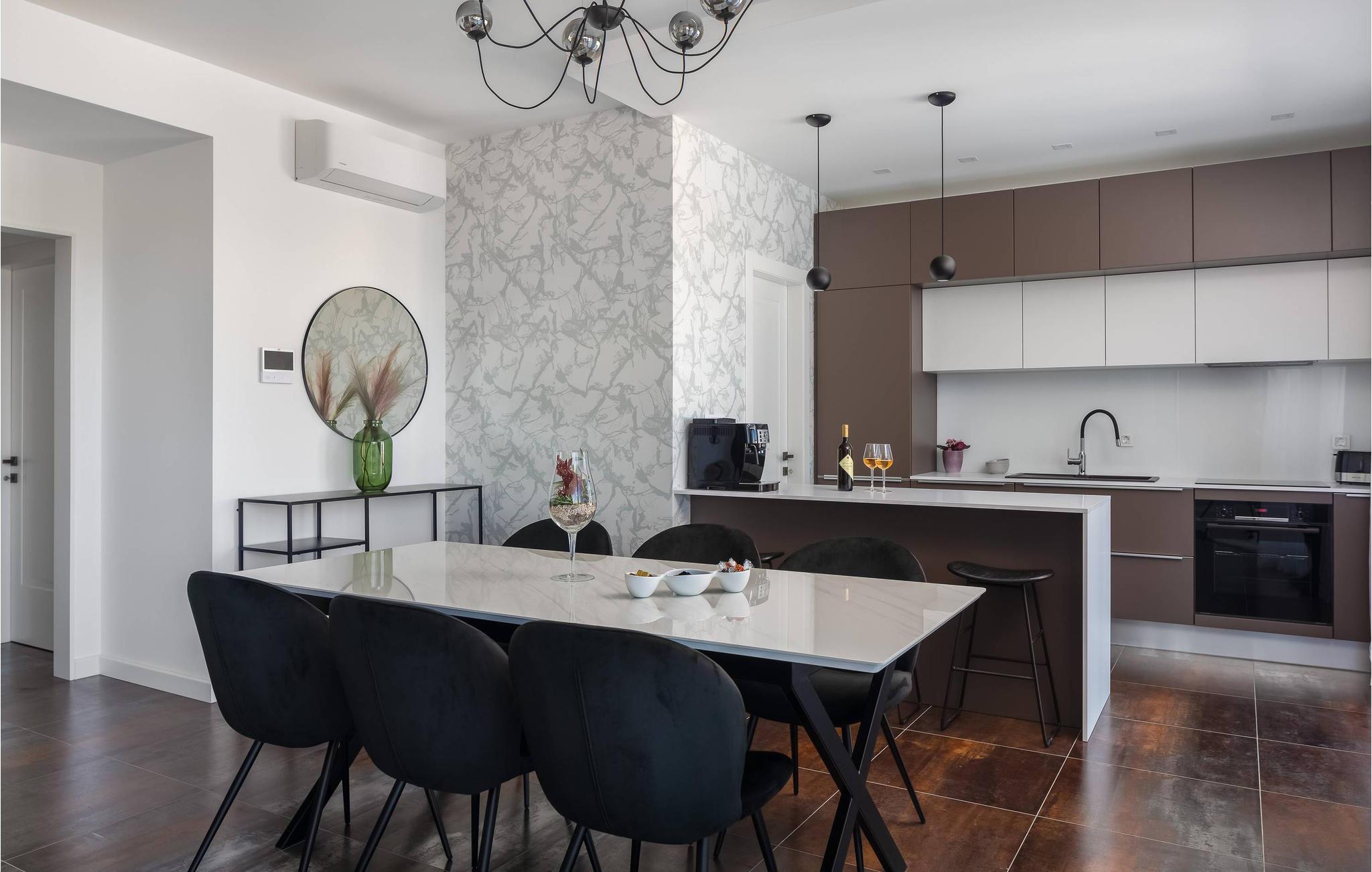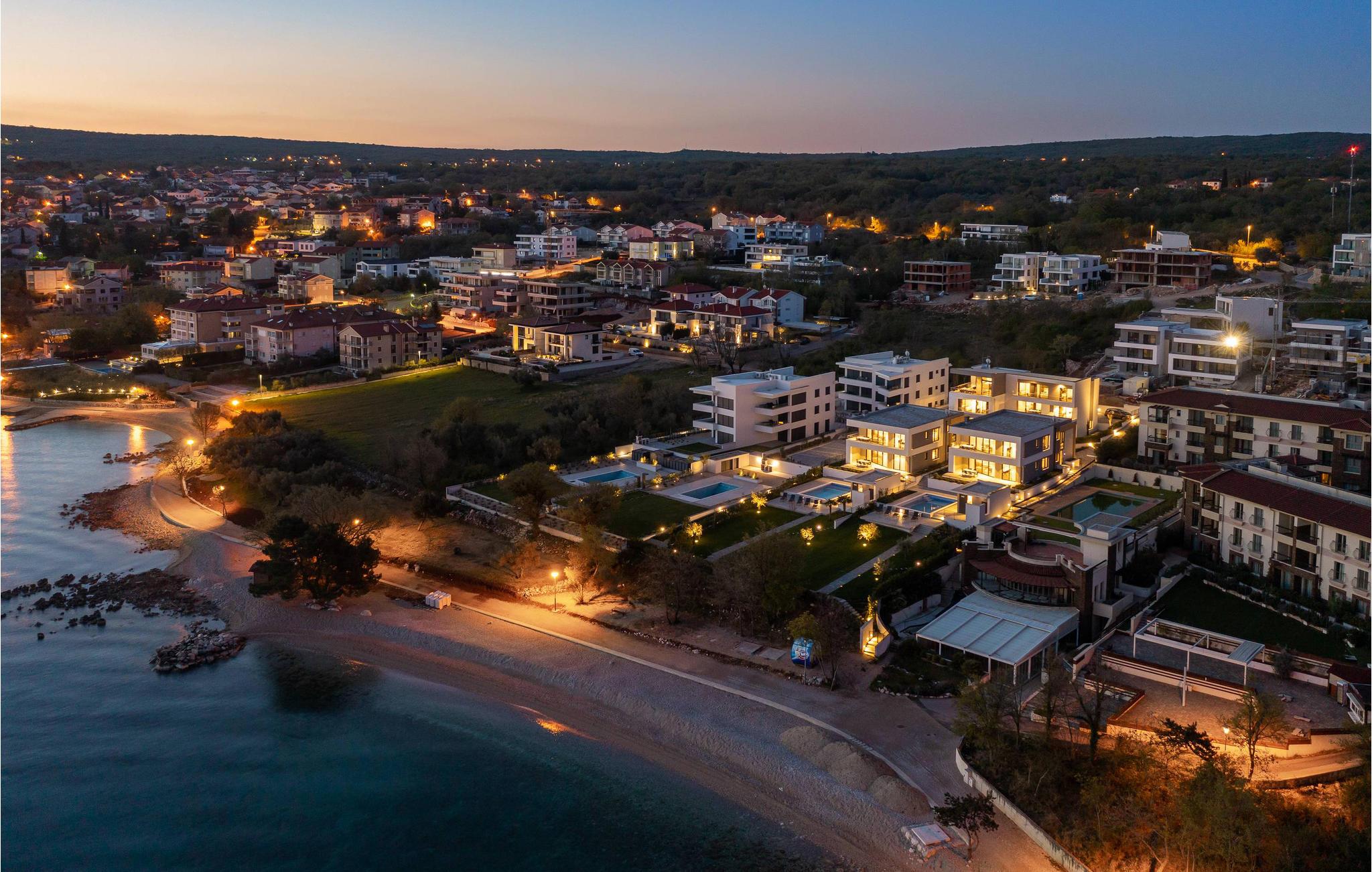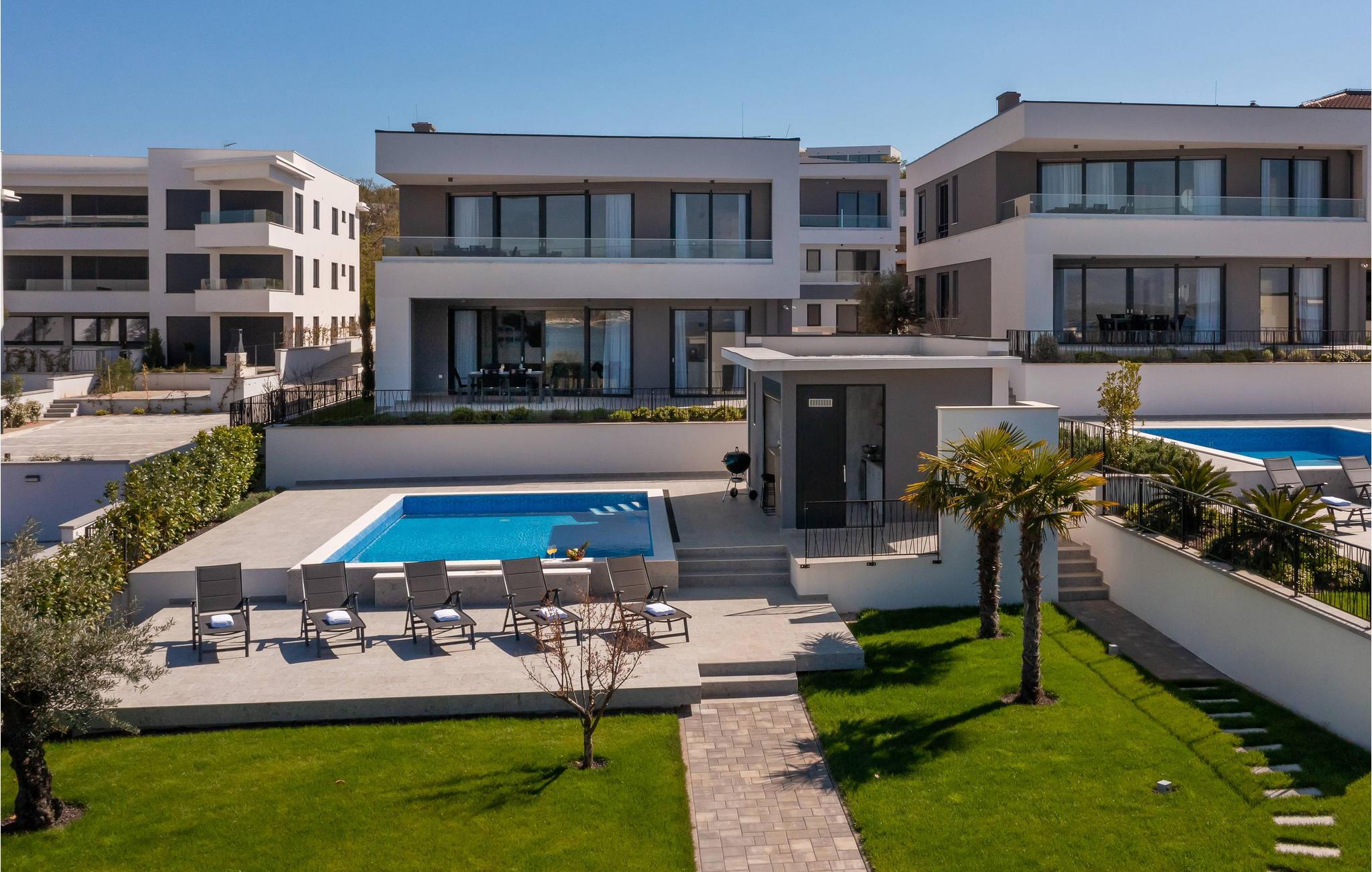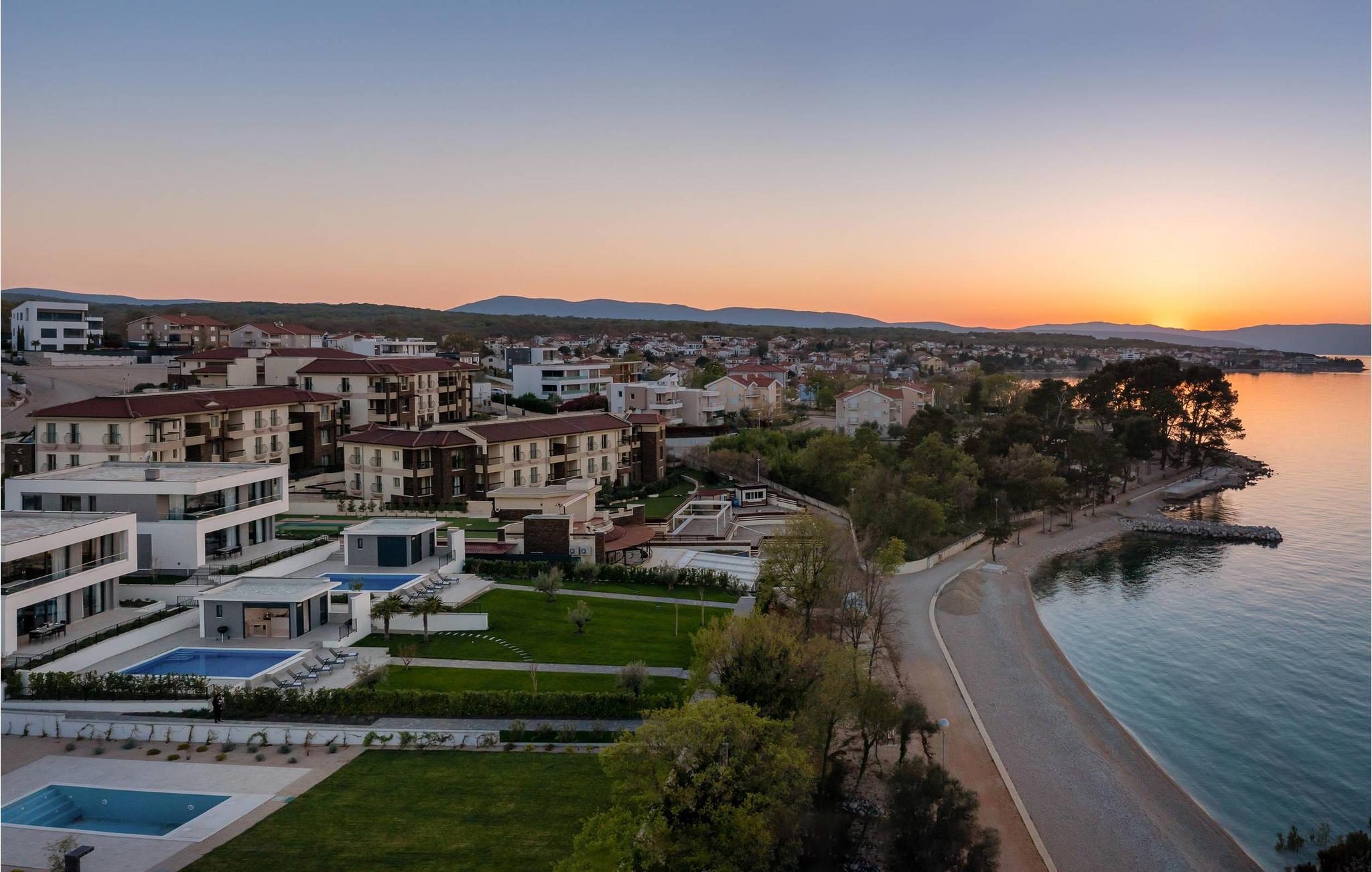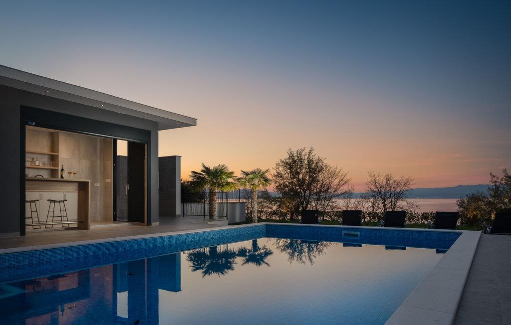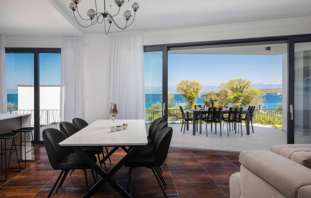 Det rummelige feriehus ligger kun 20 m fra stenstranden på øen Krk i byen Malinska og strækker sig over flere etager med plads i 6 soveværelser. Huset består af to identiske enheder i stueetagen og første sal, hvilket gør det ideelt til to familier eller en større gruppe gæster. Begge enheder har fuldt udstyrede, separate køkkener og stuer.