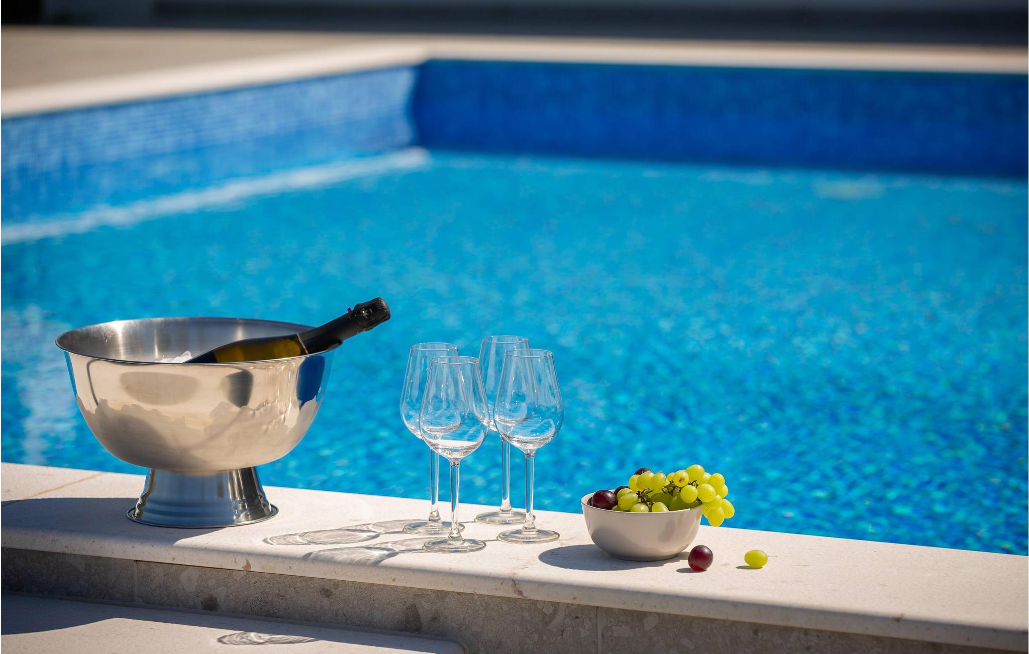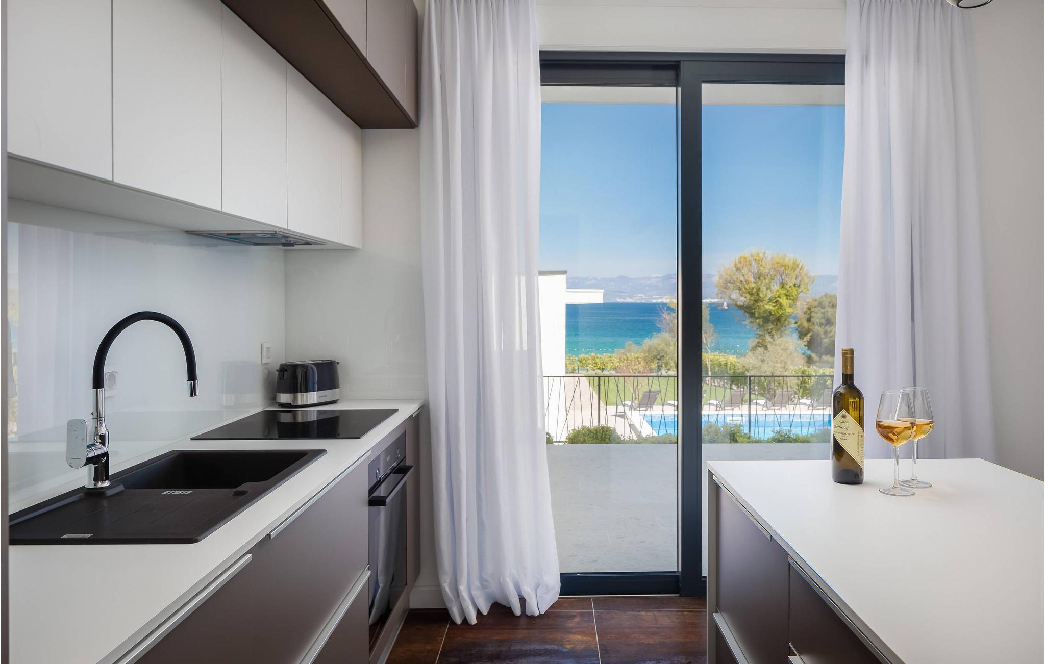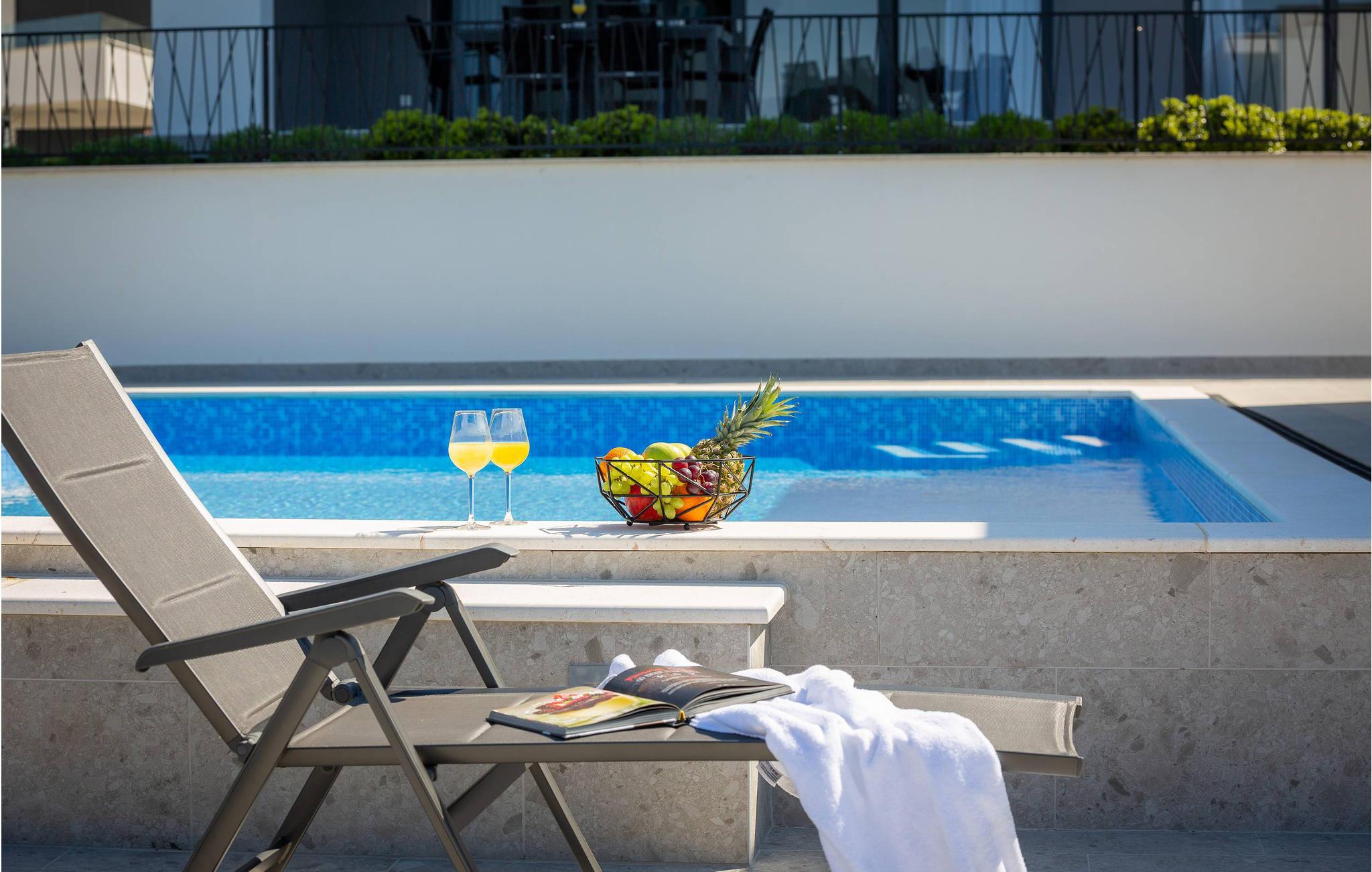 Ved poolen kan I tilbringe jeres ferie med badning eller solbadning og nyde panoramaudsigten over havet.
