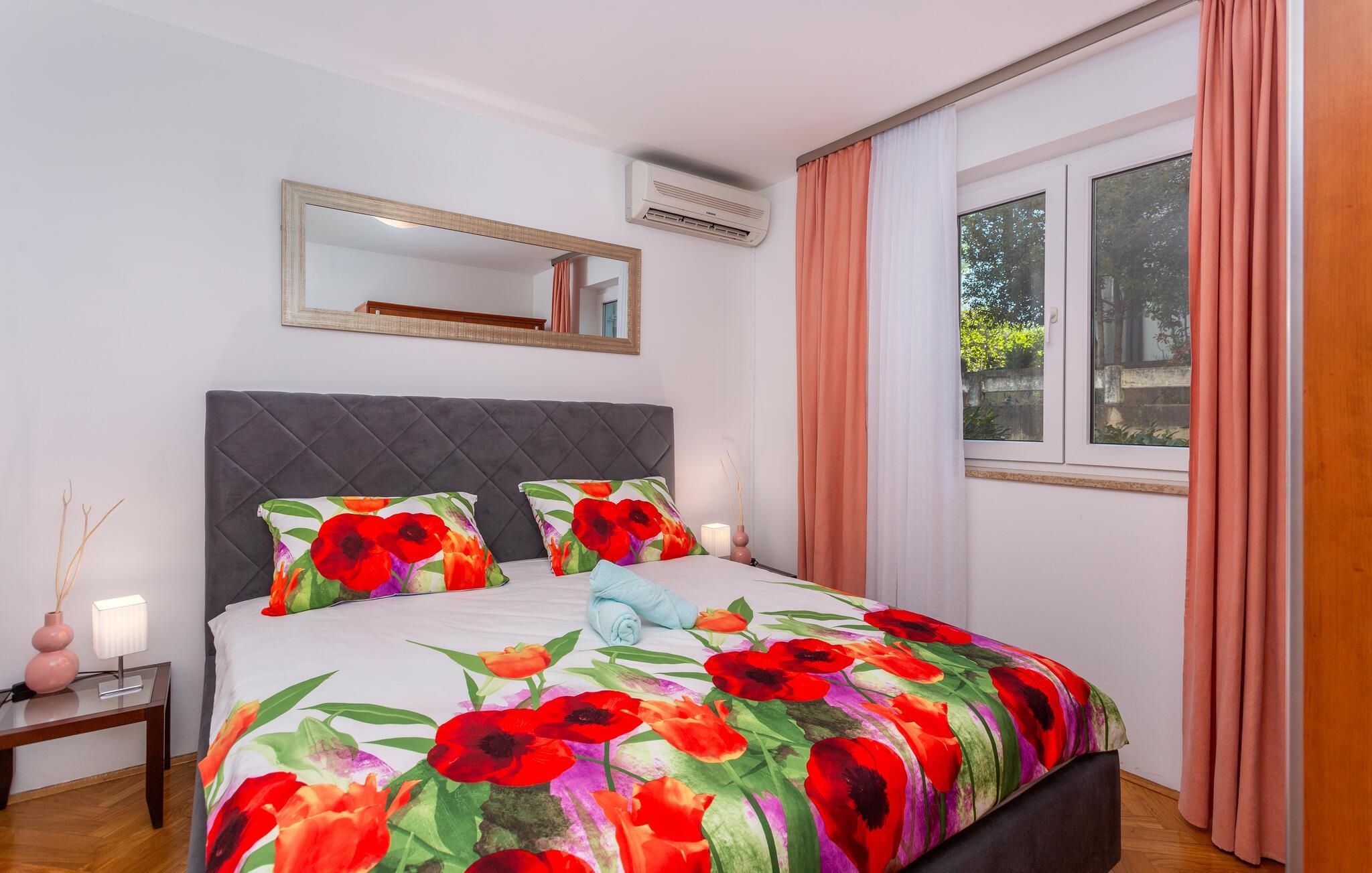 Lejligheden byder jer velkommen i stueetagen i et hus. Med sine hjemlige og tiltalende møbler er den det ideelle sted til en afslappende ferie når som helst på året. Takket være aircondition kan I forvente behagelige stuetemperaturer her selv om sommeren.