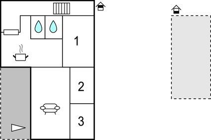 Opholdsstue 22m2 - 1 Soveplads. (Sofa, madras eller lignende).