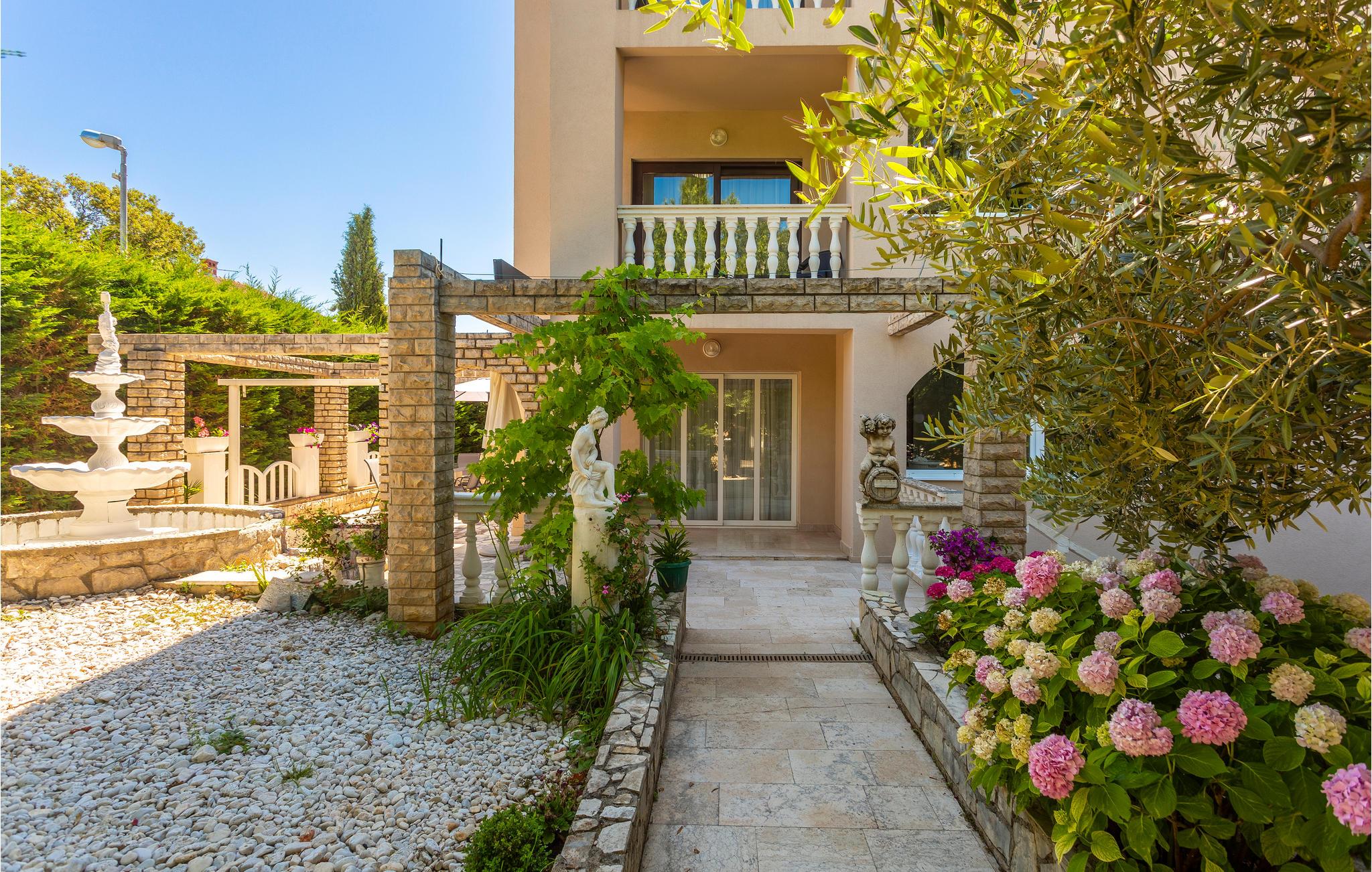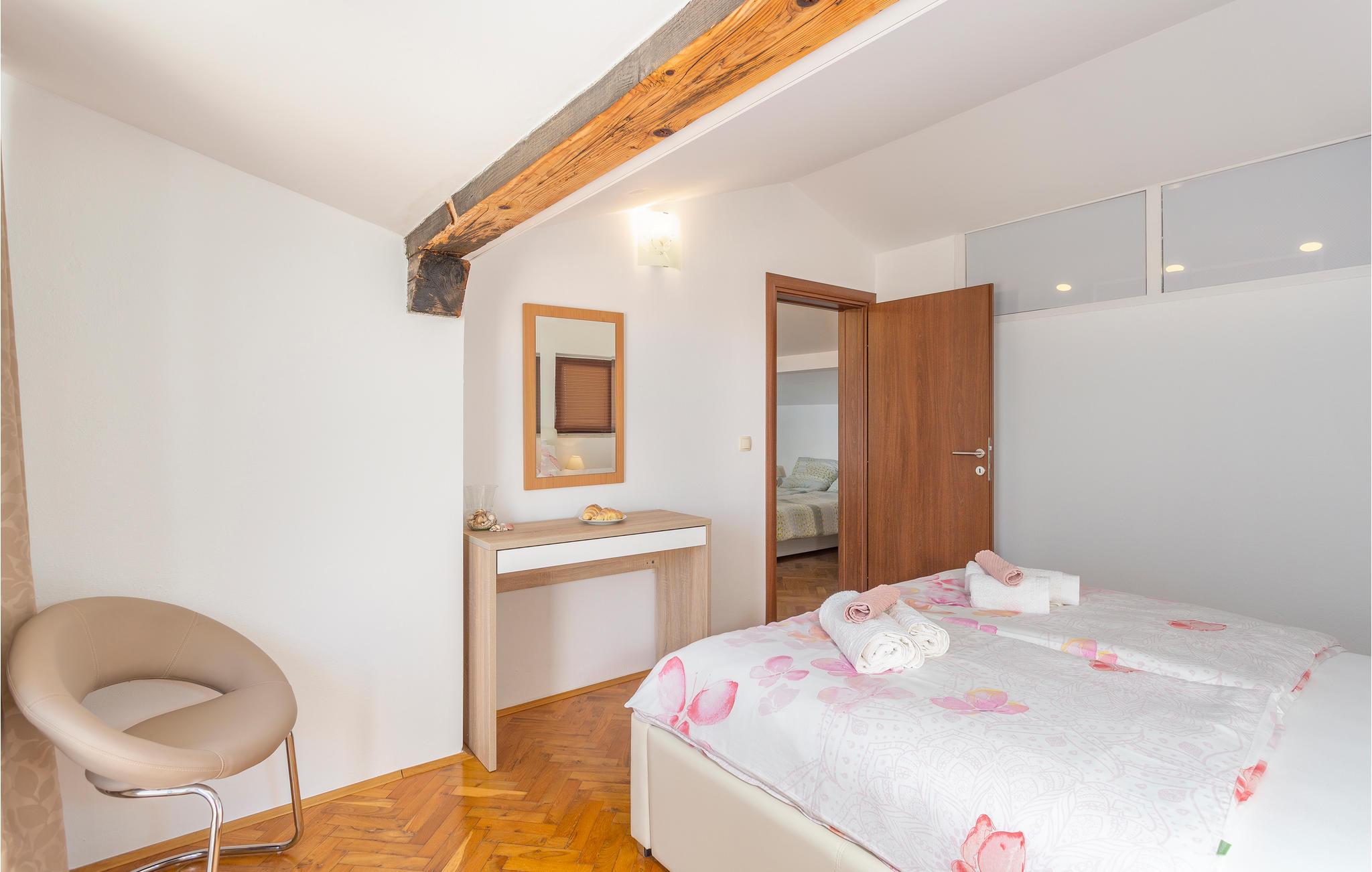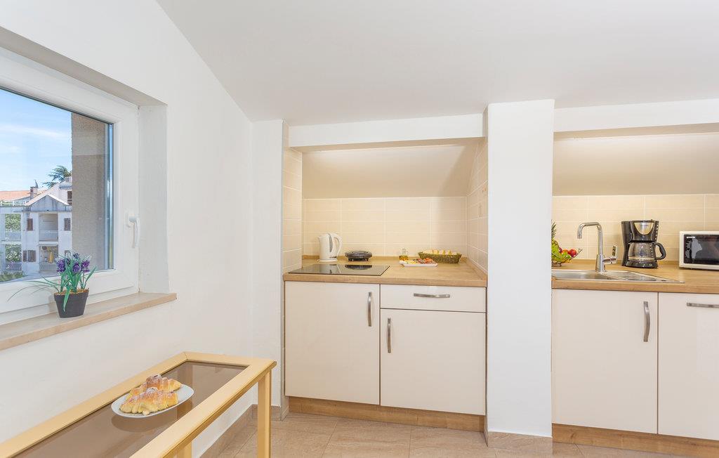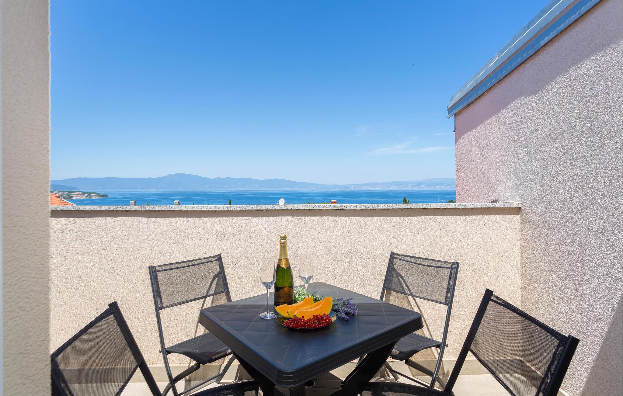 Dette skønne feriehus ligger i den populære turistby Malinska på øen Krk. Lejligheden er rummelig og særdeles komfortabel. Nyd adgangen til den private terrasse, hvor I kan nippe til morgenkaffen eller slappe af med et glas vin om aftenen. Fællesgården er beplantet med middelhavsvegetation og indbyder til lange aftener og måltider lavet på fællesgrillen.