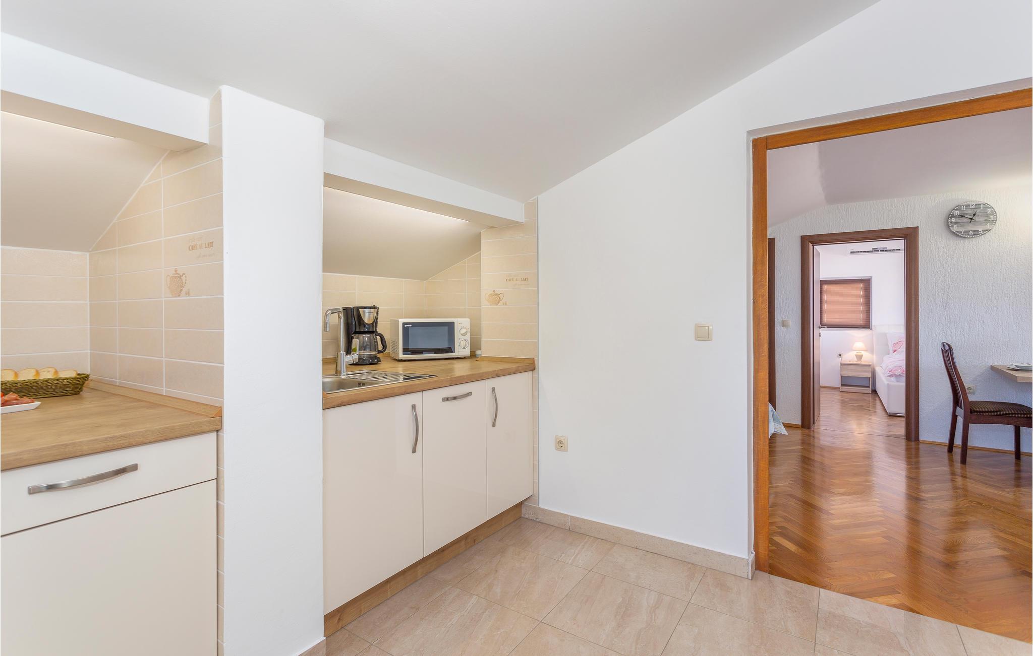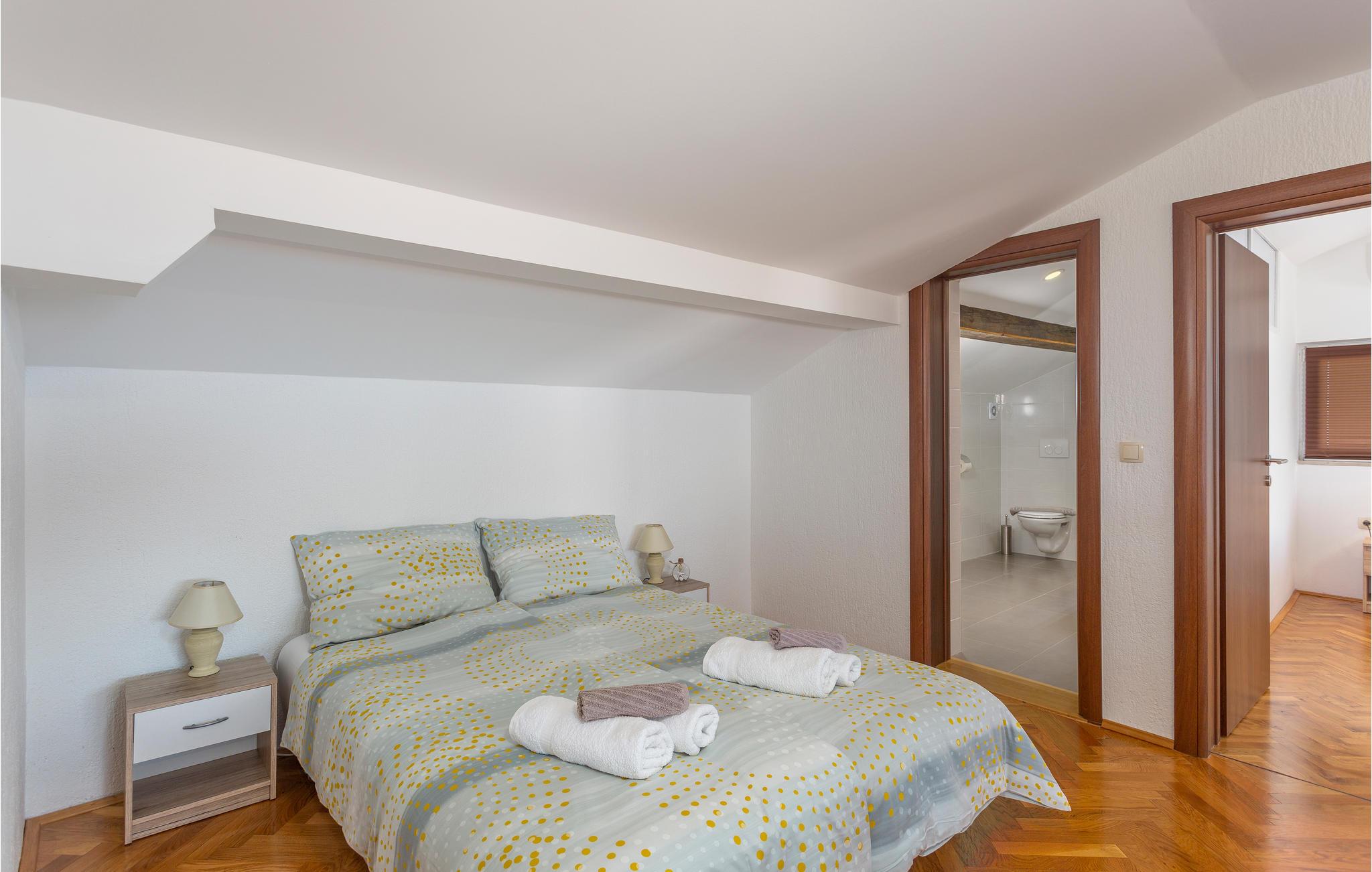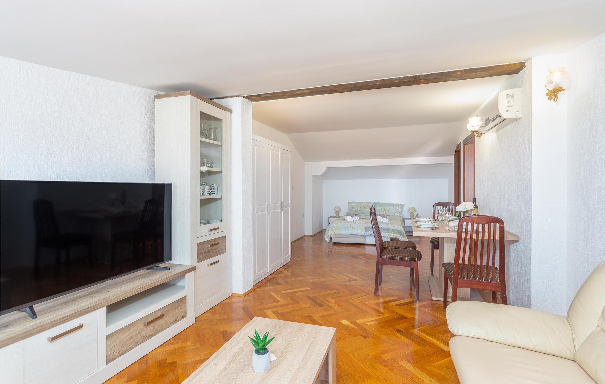 Dette skønne feriehus ligger i den populære turistby Malinska på øen Krk. Lejligheden er rummelig og særdeles komfortabel. Nyd adgangen til den private terrasse, hvor I kan nippe til morgenkaffen eller slappe af med et glas vin om aftenen. Fællesgården er beplantet med middelhavsvegetation og indbyder til lange aftener og måltider lavet på fællesgrillen.