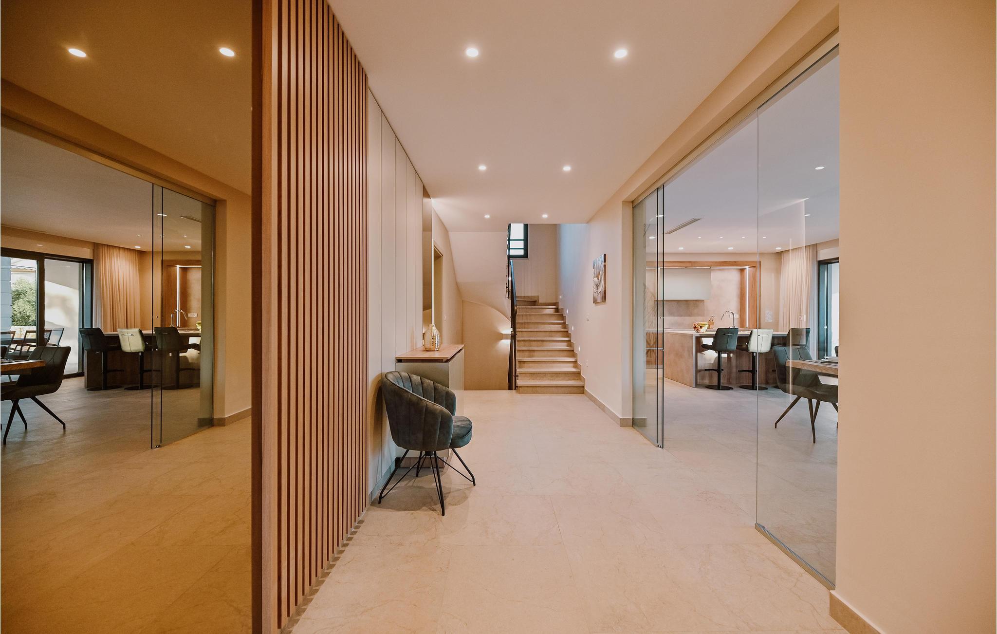 Huset er attraktivt og moderne indrettet med flotte løsninger, så her får I gode rammer om de rolige stunder, hvor I ikke er på farten. En vidunderlig udsigt til landskabet og havet fuldender den æstetiske oplevelse. Efter en frisk dukkert nede på stranden, kan I få varmen i en af husets to saunaer, som er henholdsvis infrarød og finsk sauna. Snup et spil bordfodbold eller bordtennis, hvis I trænger til at bevæge jer oven på en lækker middag på terrassen. Senere kan I lave hjemmebiograf og se en god film på skærmen, som har en projektor tilknyttet.