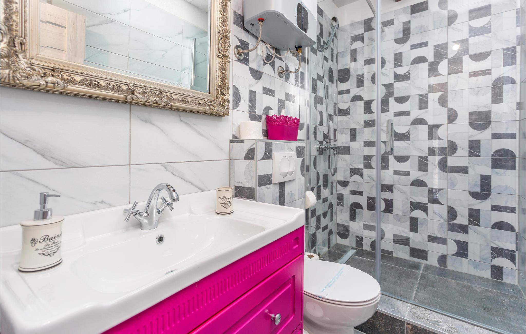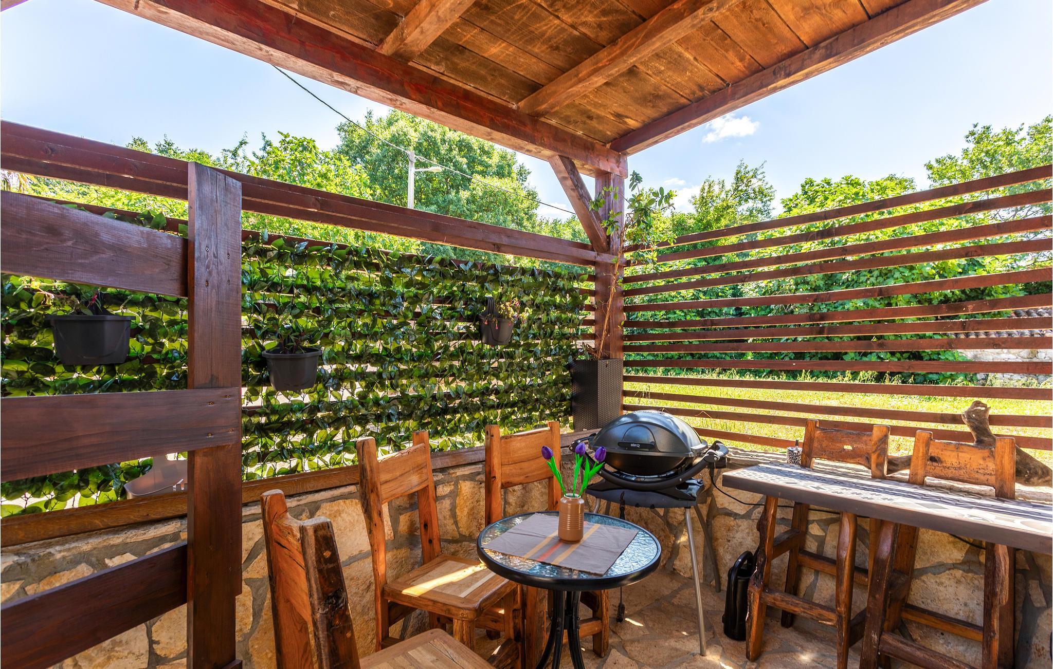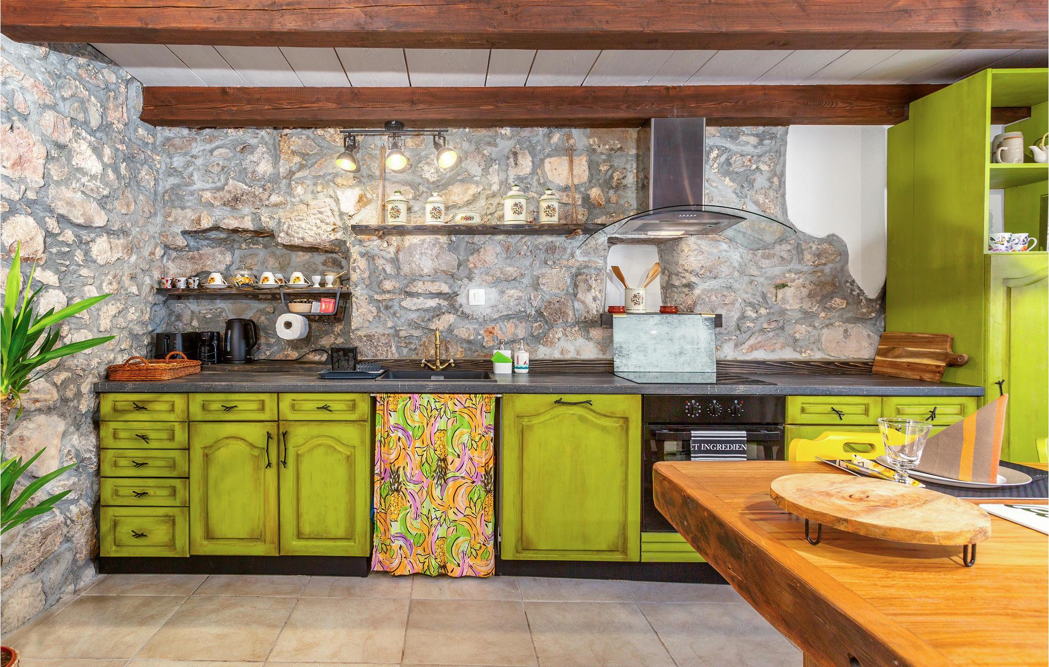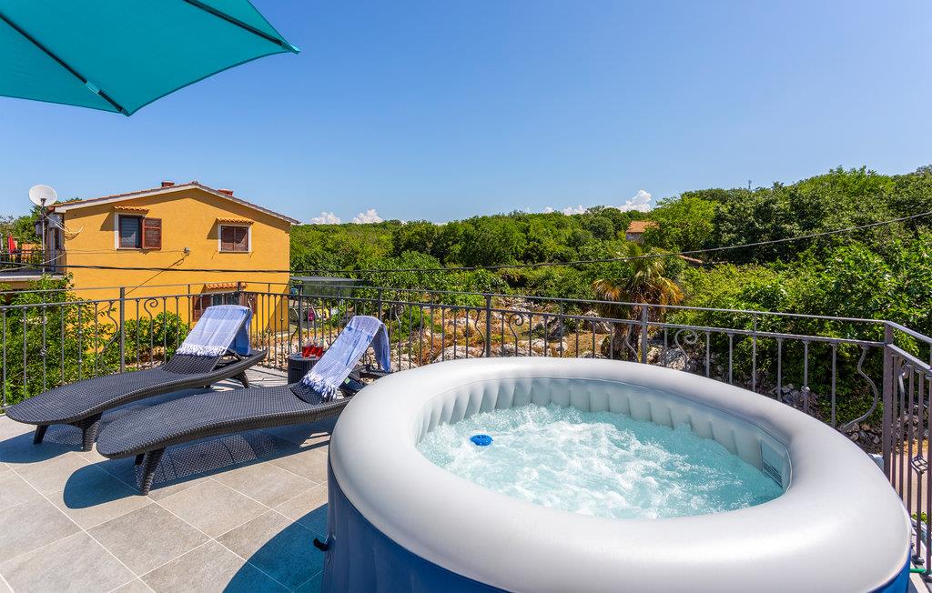 Nyd en fantastisk familieferie i dette rustikke og autentiske feriehus i den rolige by Bajcici. Dette hyggelige feriehus med sten- og træelementer byder velkommen med en smuk udsigt over Kvarnerbugten. Her kan du slappe af og slappe af i en tiltalende, lokal atmosfære. Der er også to terrasser. På den kan du nyde en delvis udsigt over havet og de varierede omgivelser med en kop kaffe. Du kan også slappe af i spabadet og din yndlingsbog. Den nederste terrasse er indhegnet, og der er en grill, som du kan bruge til dine aftensmåltider. Besøg byen Krk, for i sommermånederne er talrige kunstnergrupper gæster her, og der er mange arrangementer. Besøg andre maleriske byer på øen, såsom Vrbnik, Baška, Malinska og Punat, som venter på dig med alle mulige attraktioner. Du kan også opdage de omkringliggende øer Rab, Cres og Lošinj, som kan nås dagligt med udflugtsbåde. Øen Košljun er meget attraktiv og ligger i bugten Puntarska Draga. Her finder du blandt andre kulturelle og historiske værdier et kloster med et arkæologisk museum og et bibliotek med imponerende historiske bøger. Kom til øen Krk og glæd dig til en uforglemmelig ferie!