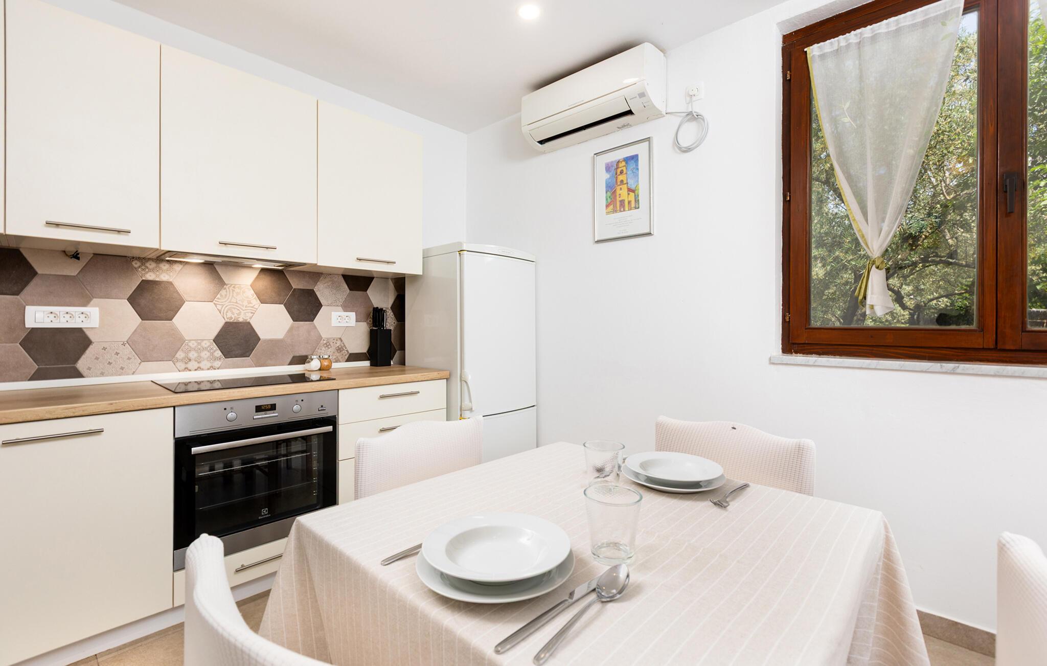 I kan spadsere gennem olivenlunden, der omgiver huset, inden I går den korte tur til havet, hvor I kan nyde det klare vand på stenstranden. Malinska er ikke bare en vidunderlig badeby med afsondrede bugter og vidunderlige strande. Den charmerende kystby byder også på en havn med restauranter og en lang promenade, der er ideel til gåture.