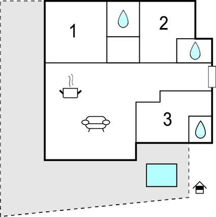Badeværelse 3m2 (nr. 1) - WC. Varmt og koldt vand. Bruser
