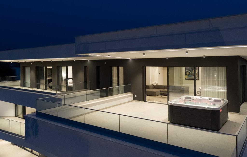 Udenfor er terrassen et vidunderligt sted at nyde solen i fulde drag. Her kan I bare dase i en liggestol eller koble helt af i jeres eget spa-bad.