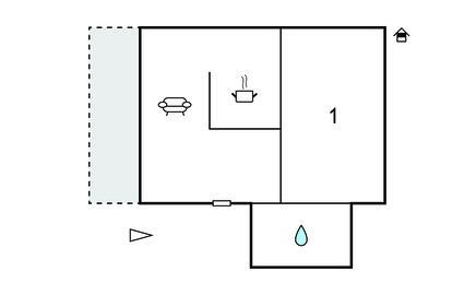 Opholdsstue/køkken 17m2 - 1 Soveplads. (Sofa, madras eller lignende).