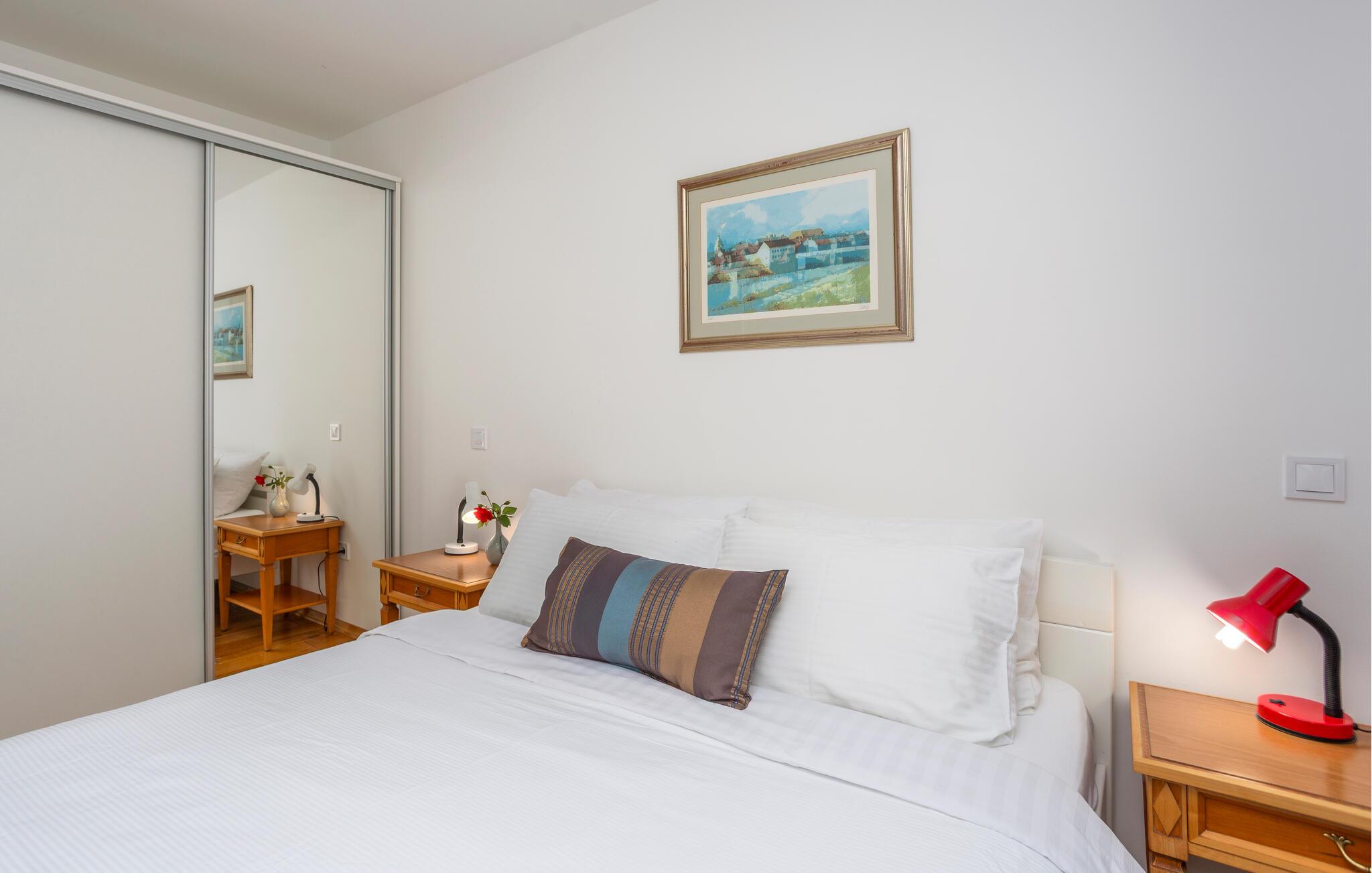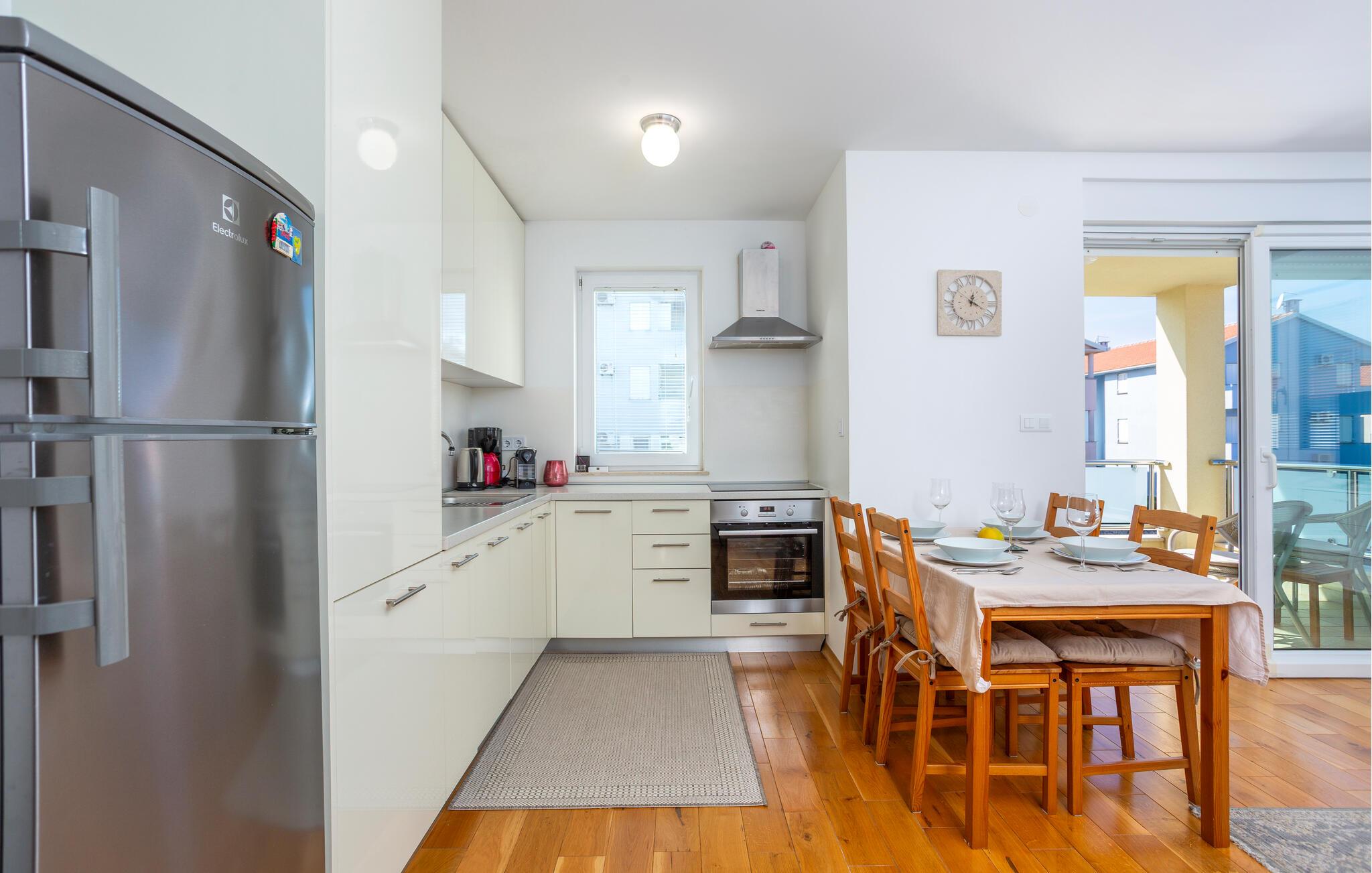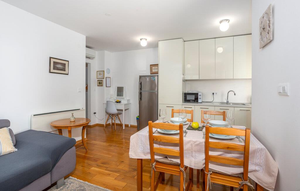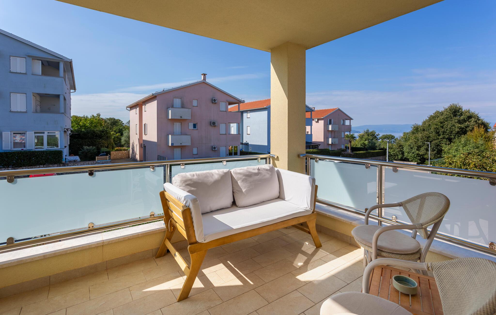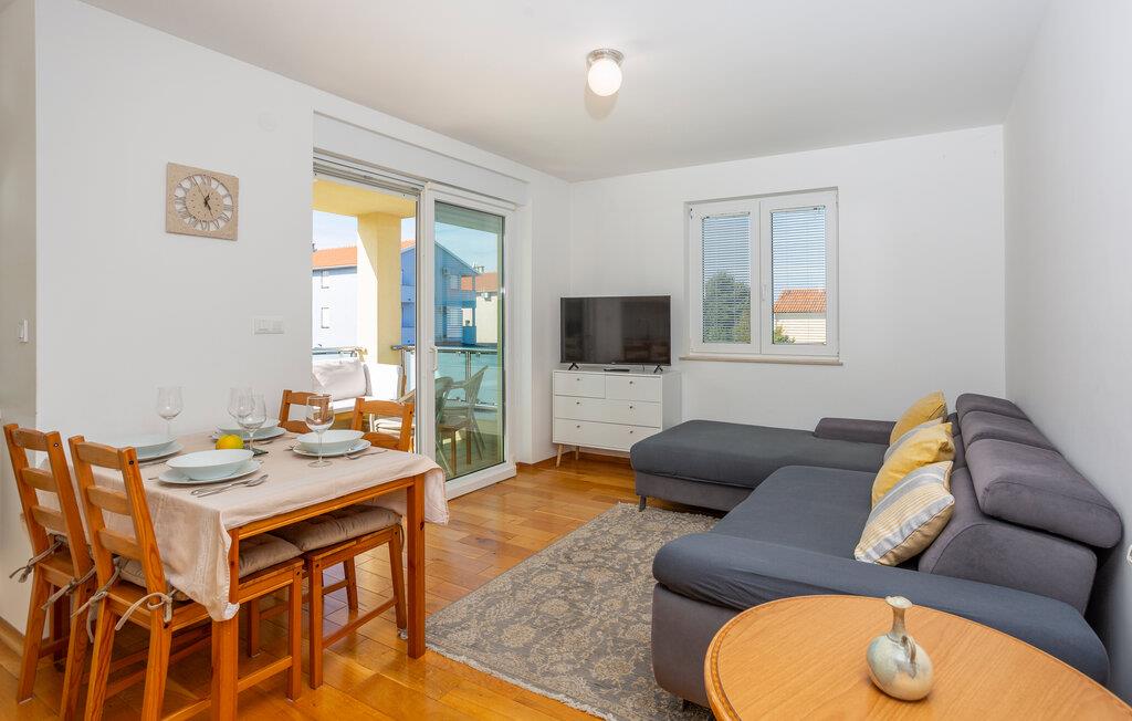 Tilbring en afslappende ferie i denne ferielejlighed beliggende på en ø nær stranden. Denne indbydende lejlighed byder jer velkommen til en afslappende flugt fra hverdagen. Lyse værelser, smukke parketgulve og et sofaområde med udsigt til naturen skaber en hyggelig atmosfære. Stream jeres yndlingsserier, lyt til musik, eller hør en interessant podcast. Tilbered lækre måltider i køkkenet og nyd et glas vin. Sæt jer i den komfortable sofa på terrassen om morgenen og nyd jeres første kaffe her. Nyd morgenmaden i fred og ro, og fordyb jer derefter i en god bog eller lav planer for den næste dag. Om aftenen inviterer terrassen jer til at reflektere over jeres oplevelser med en lille snack. Tag en kort gåtur til havet og nyd afslappende timer på de idylliske strande i Malinska. Slentr gennem den charmerende bymidte med dens små butikker, caféer og restauranter. Udforsk det omkringliggende område på en cykeltur eller vandretur langs den maleriske kyst. Prøv friskfanget fisk og andre specialiteter fra øen Krk i regionens konobas.