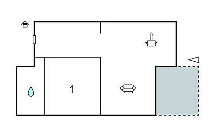 Opholdsstue/køkken 22m2 - 1 Soveplads. (Sofa, madras eller lignende).
