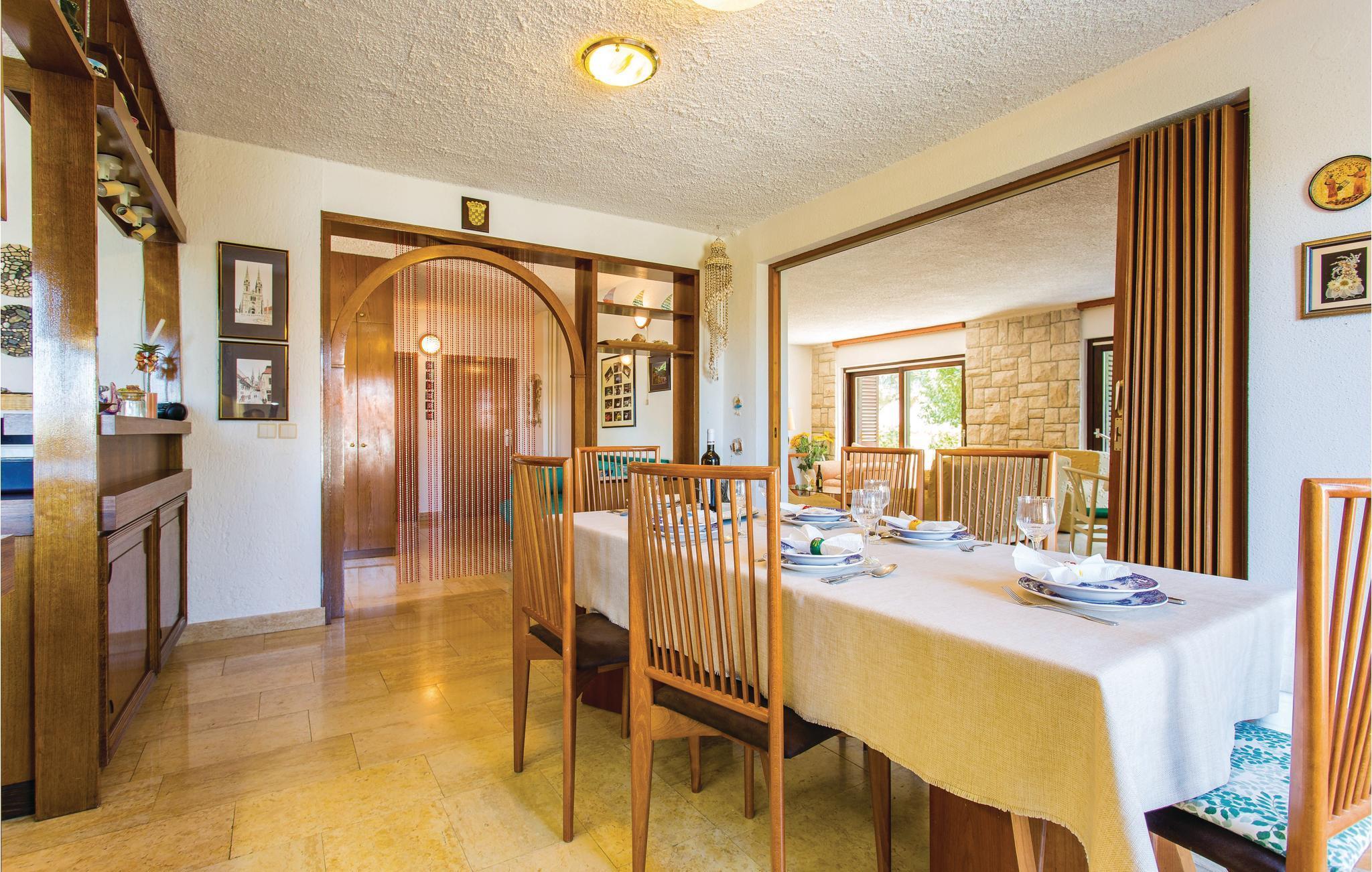 I den populære ferieby Malinska ligger dette feriehus, omgivet af en dejlig have. Det er ideelt til familier. Med overdækket terrasse og badebassin. Stueetagen har en rummelig dagligstue. I overetagen ligger soveværelserne og en lille dagligstue med udgang til den store terrasse. Herfra har I en skøn udsigt til havet. Bag huset ligger en gade. Men den overdådige, grønne have er imellem, og værelserne vender mod havet. Huset ligger i nærheden af byens centrum. I kan gå i vandet på de tre offentlige strande eller i de ensomme bugter. En mængde kulturelle arrangementer med folklore og folkefester sørger for underholdning. Ved siden af den lange og smukke promenade er der forskellige sportsanlæg.
