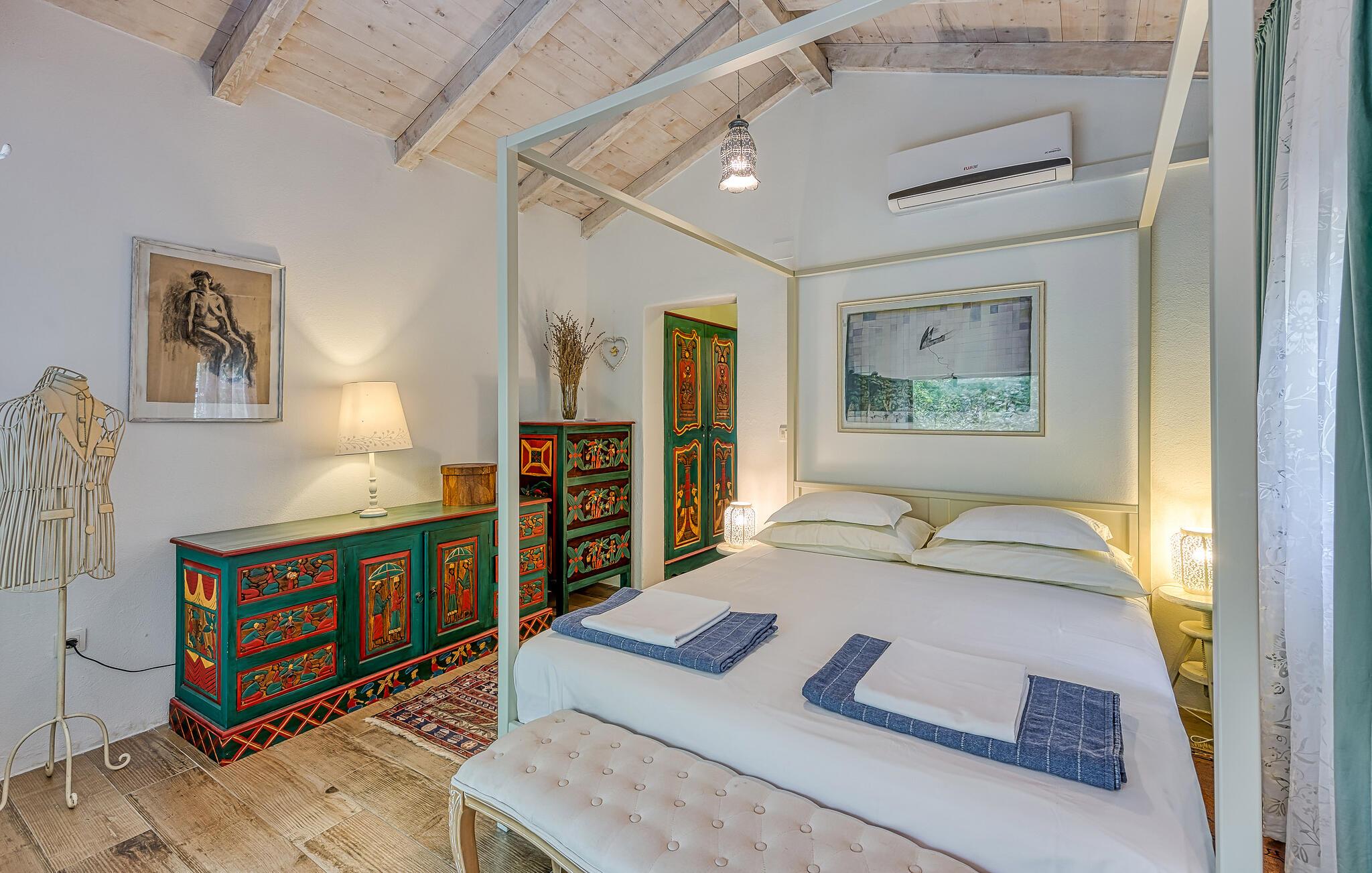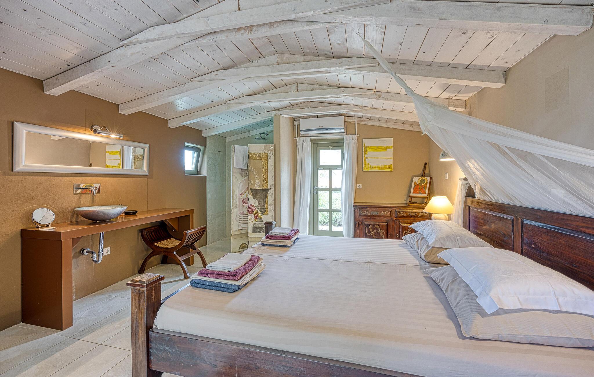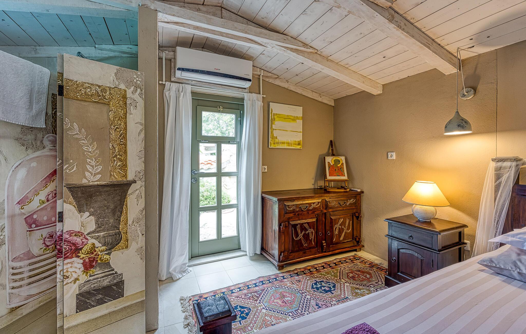 Hovedhuset har et stort åbent køkken med opholdsstue, og et soveværelse med badeværelse. Annekset er kun ti skridt væk og består af et soveværelse og et tilstødende badeværelse. Der er også en udendørs pool til en forfriskende dukkert om sommeren.