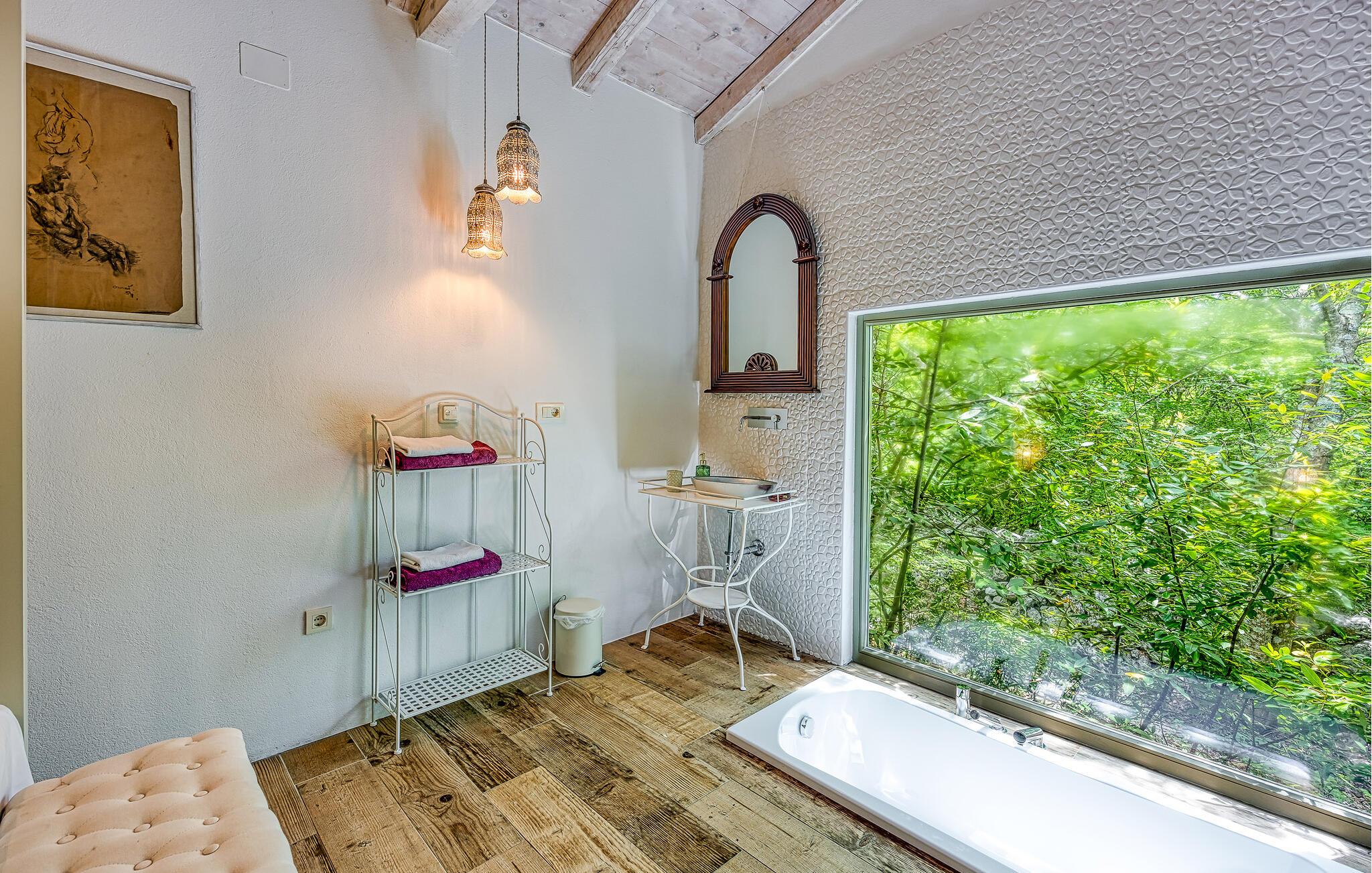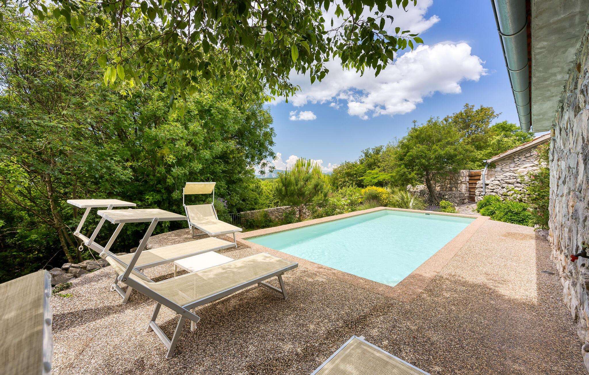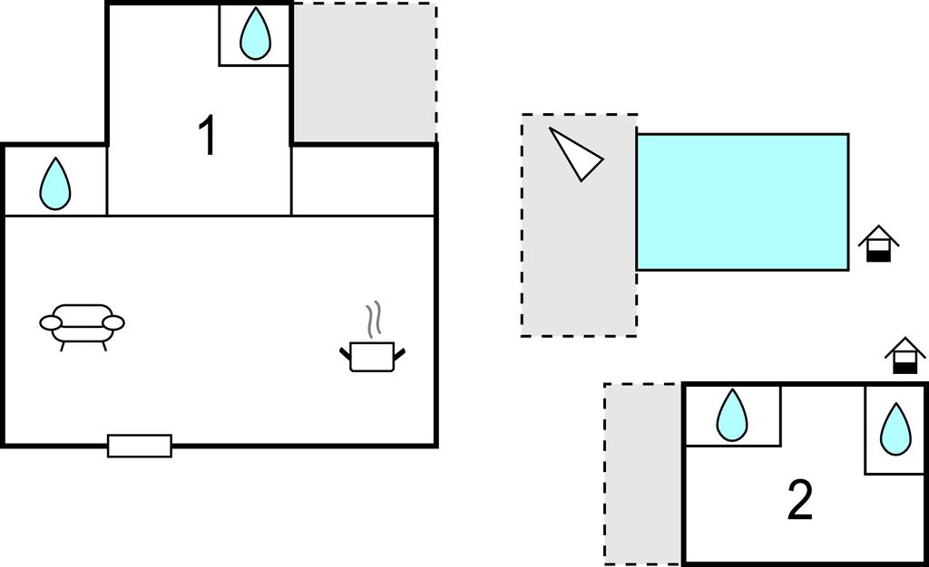 Hovedhuset har et stort åbent køkken med opholdsstue, og et soveværelse med badeværelse. Annekset er kun ti skridt væk og består af et soveværelse og et tilstødende badeværelse. Der er også en udendørs pool til en forfriskende dukkert om sommeren.