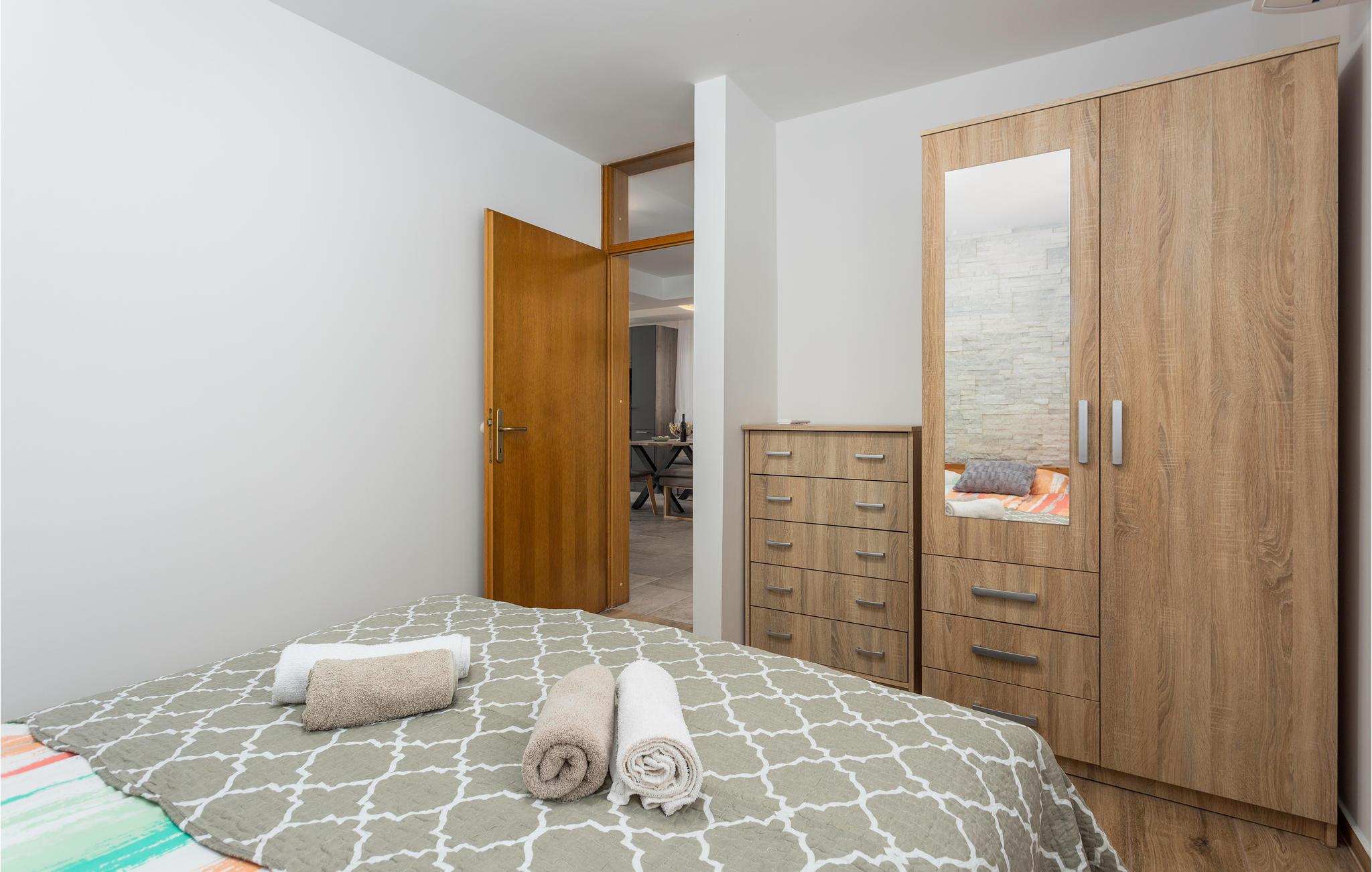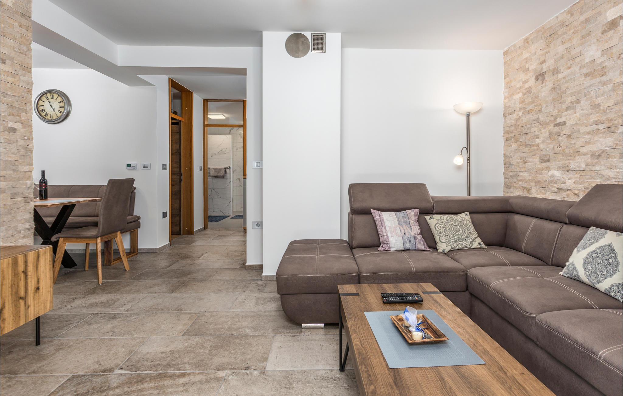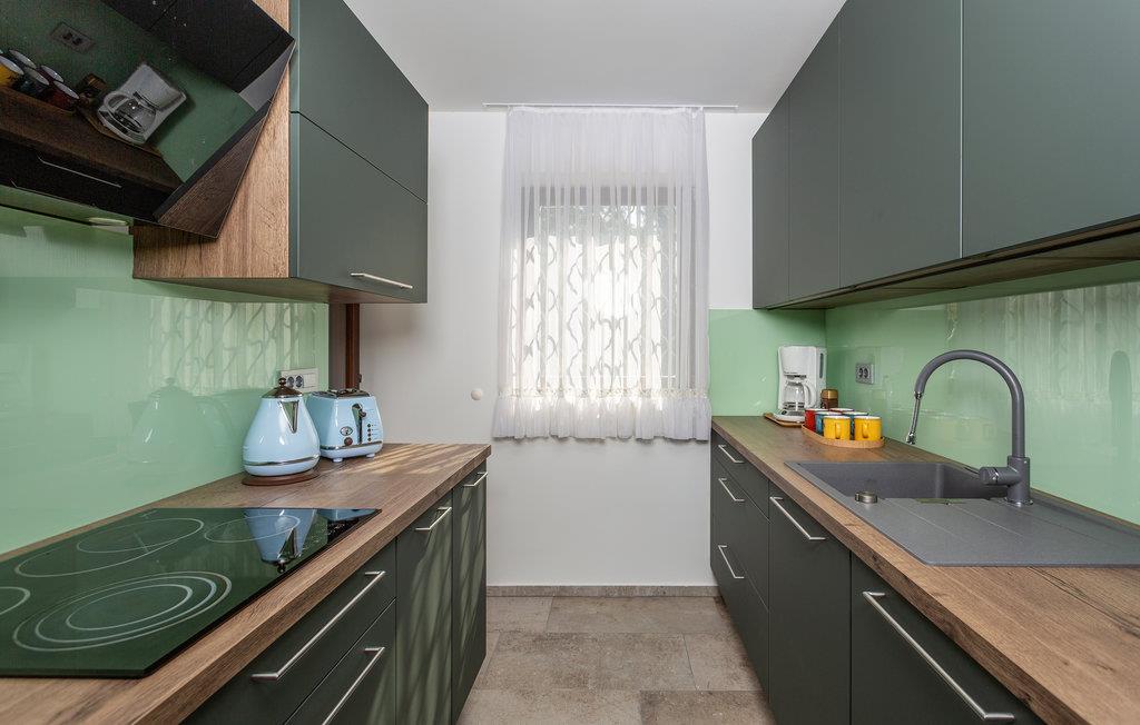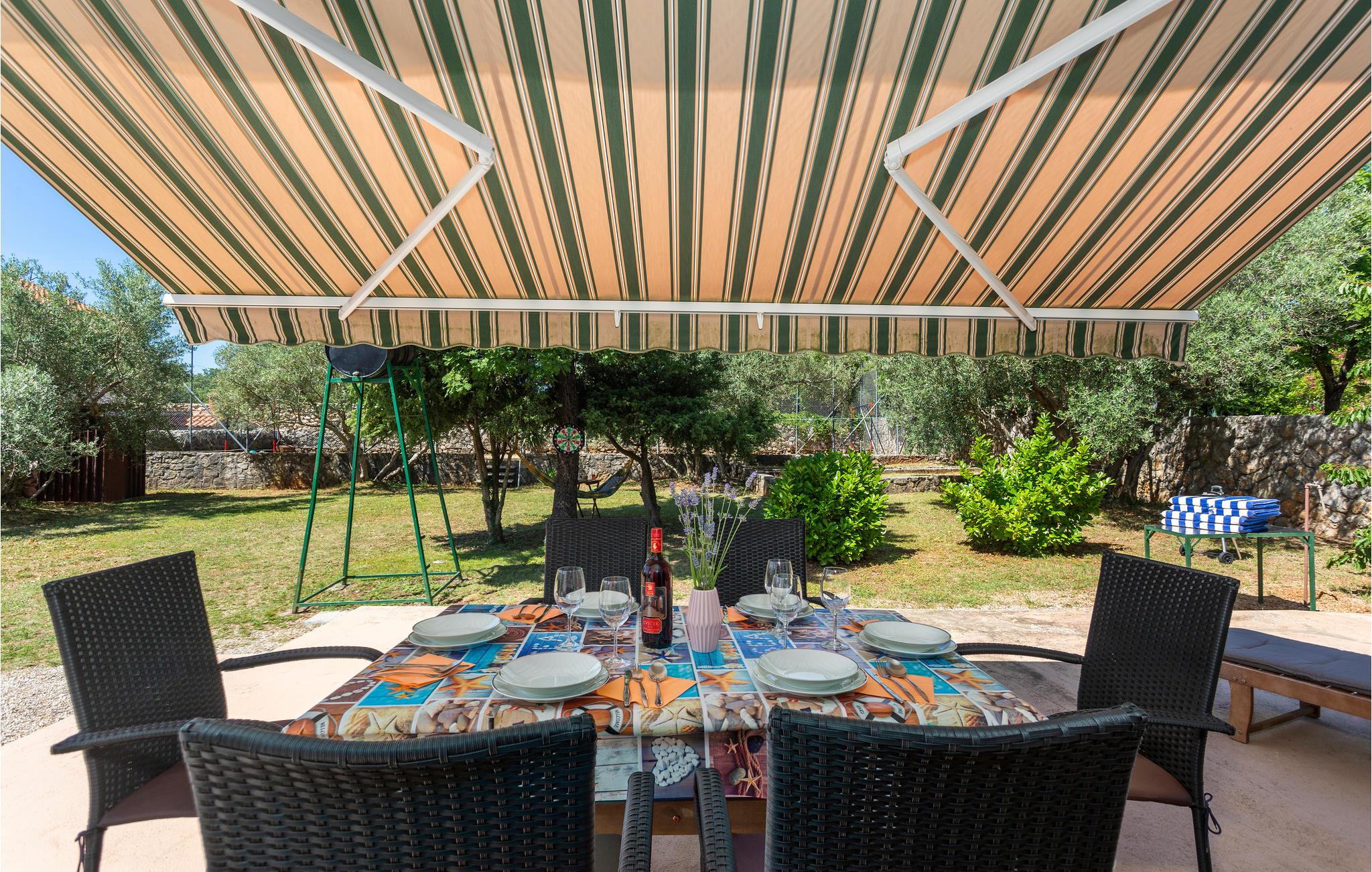Dette romantiske feriehus ligger i den lille by Muraj og er den perfekte by til en ferie uden stress. Nyd livet i den store have der er frodigt grøn og har en multi-sportsplads med sand og basketkurv, samt med mulighed for at spille bowling og badminton. Interiøret er indbydende og praktisk. Fra den rummelige stue er der udgang til den store terrasse. Her kan børnene tumle sig og spille bold på plænerne, ligesom her står en grill til nem og lækker madlavning. Hold en aktiv ferie med vandre- og cykelture, wakeboarding og ture i gocard og lær øen Krks fantastiske historie at kende.