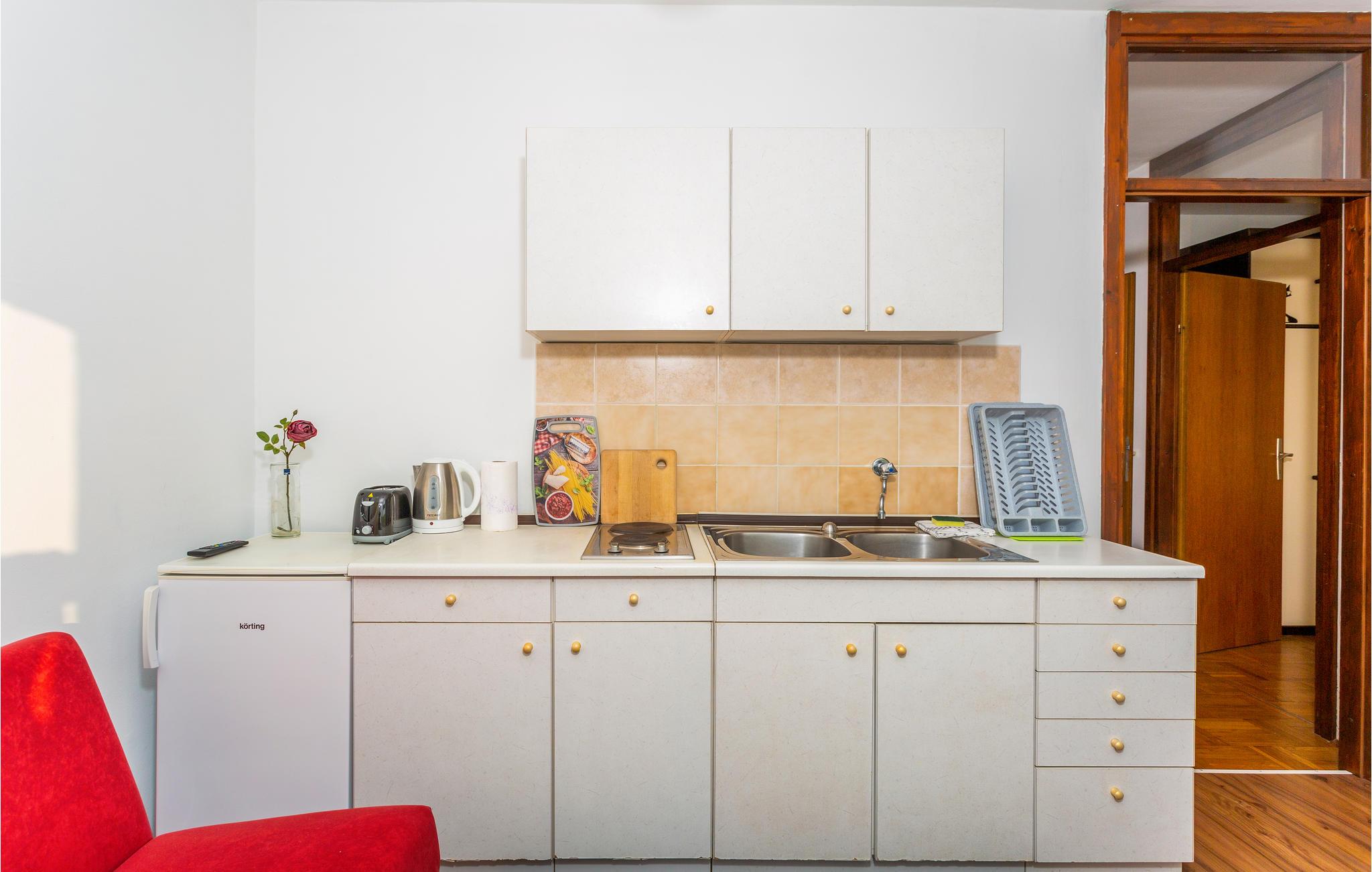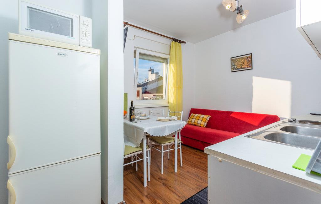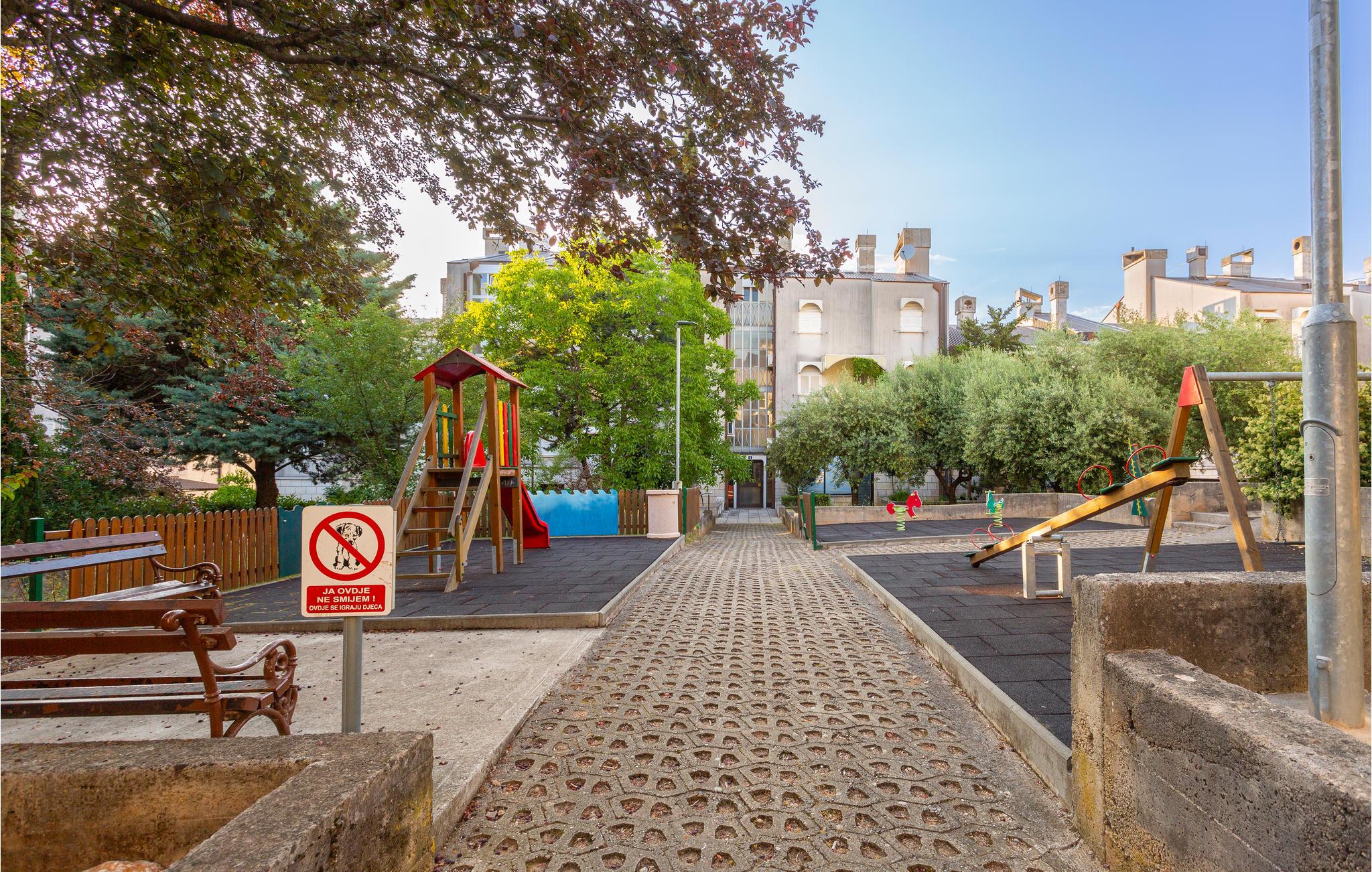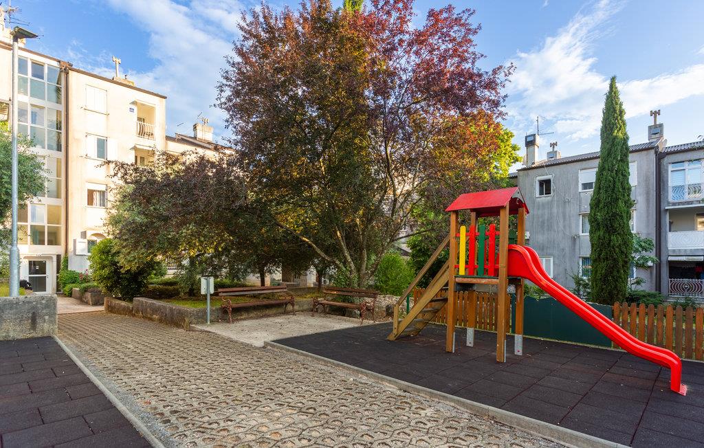 Velkommen til denne praktiske lejlighed i Njivice. Kom her med jeres elskede eller jeres lille familie og tilbring en ubekymret ferie i denne kompakte lejlighed. Lejligheden er udstyret med alt hvad I behøver for at have det godt og slappe af. Slap af på jeres tagterrasse om aftenen, nyd et glas vin og se ud over øens tage og landskab. Der er også en stor legeplads for børn, hvor jeres barn kan blive venner med nabobørnene. Gå til stenstranden få hundrede meter væk og nyd havet. Udforsk denne øs kulturarv og oplev aktive ferier, wakeboarding i Punta, gokart i Krk eller vandre- og cykelstier. Oplev smukke strande og besøg Vrbnik og den lille ø Kosljun. Besøg vinkældrene og smag traditionelle retter i en af de mange restauranter på øen. Tilbring en vidunderlig ferie på Krk!