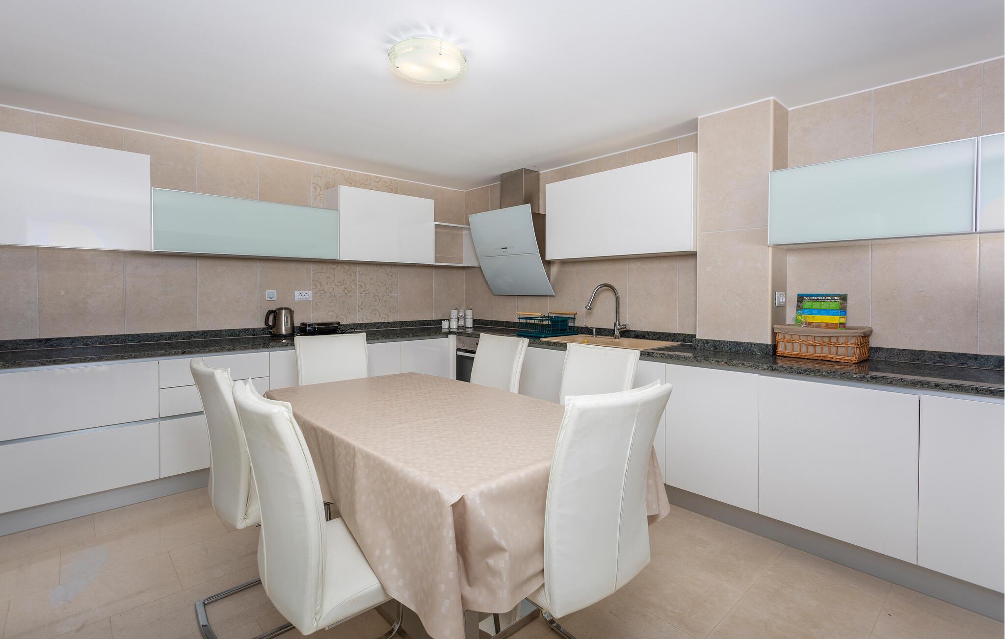 I bor kun få skridt fra den lækre strand i Njivice i et smukt område på Krk, som har gratis broforbindelse til fastlandet. Alle faciliteter er i nærheden i centrum af byen, hvor I kan shoppe jer gennem butikkerne, booke bord på restauranterne og slentre langs promenaderne. Der er tennisbaner tæt på og mulighed for at leje en tur på hesteryg, hvilket er en fantastisk måde at opleve naturen på. Snør vandrestøvlerne og begiv jer ud af de mange vandrestier, prøv hav-zipline i Punat og det festlige natteliv med klubber og restauranter.