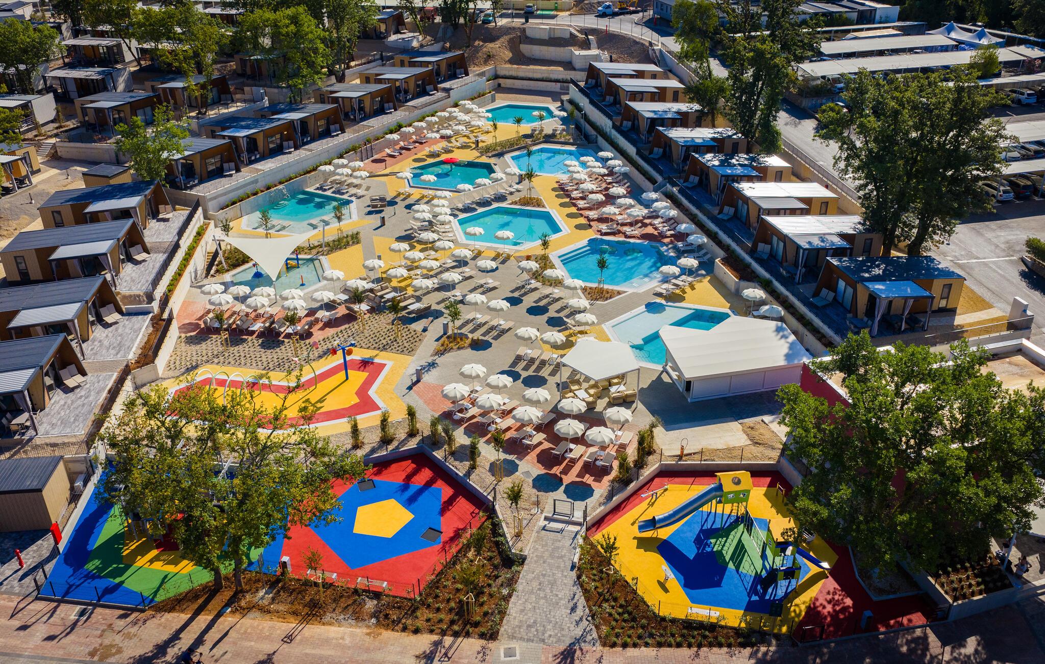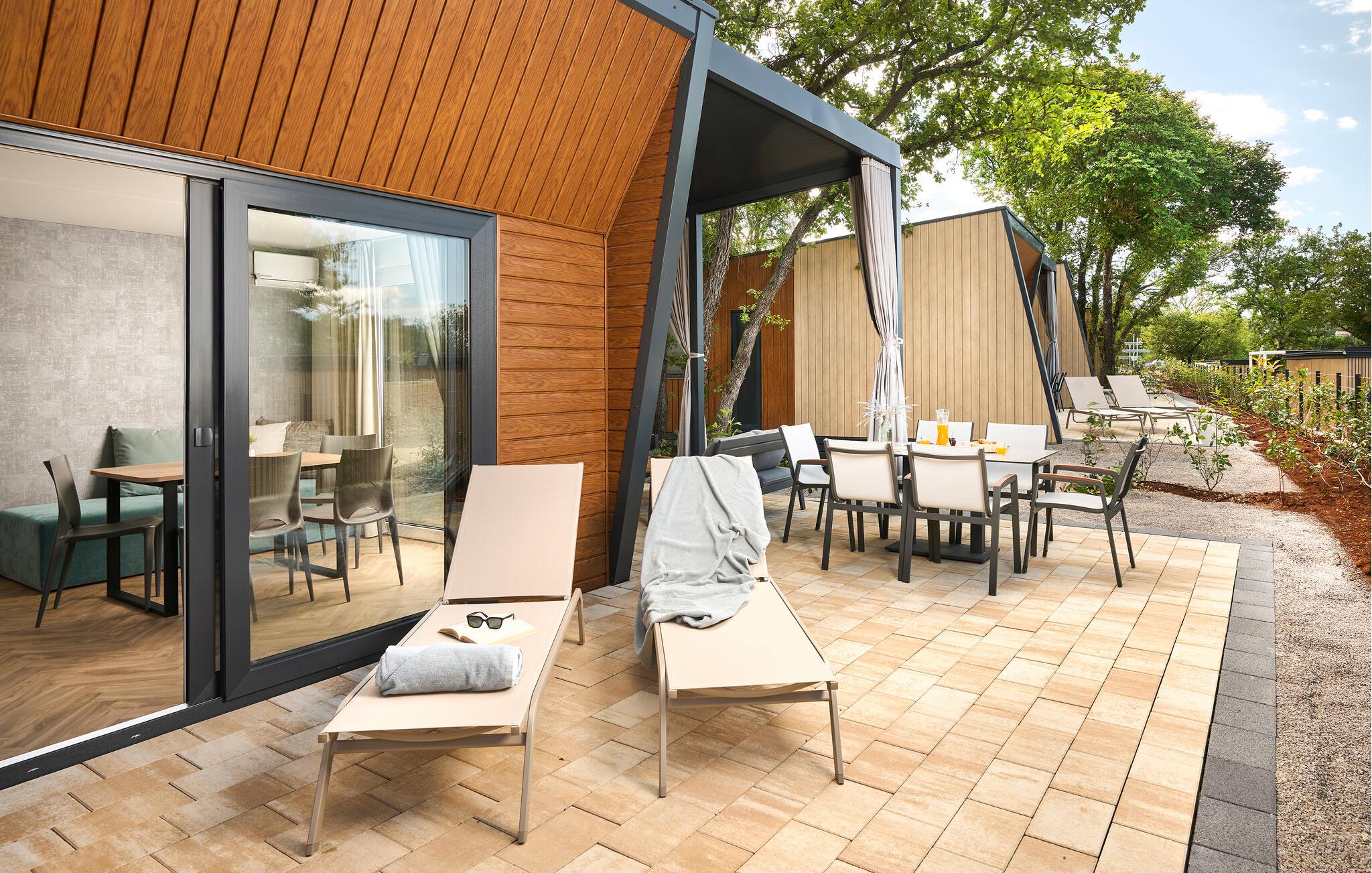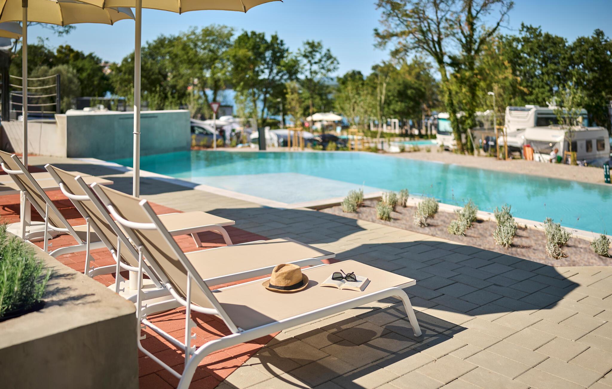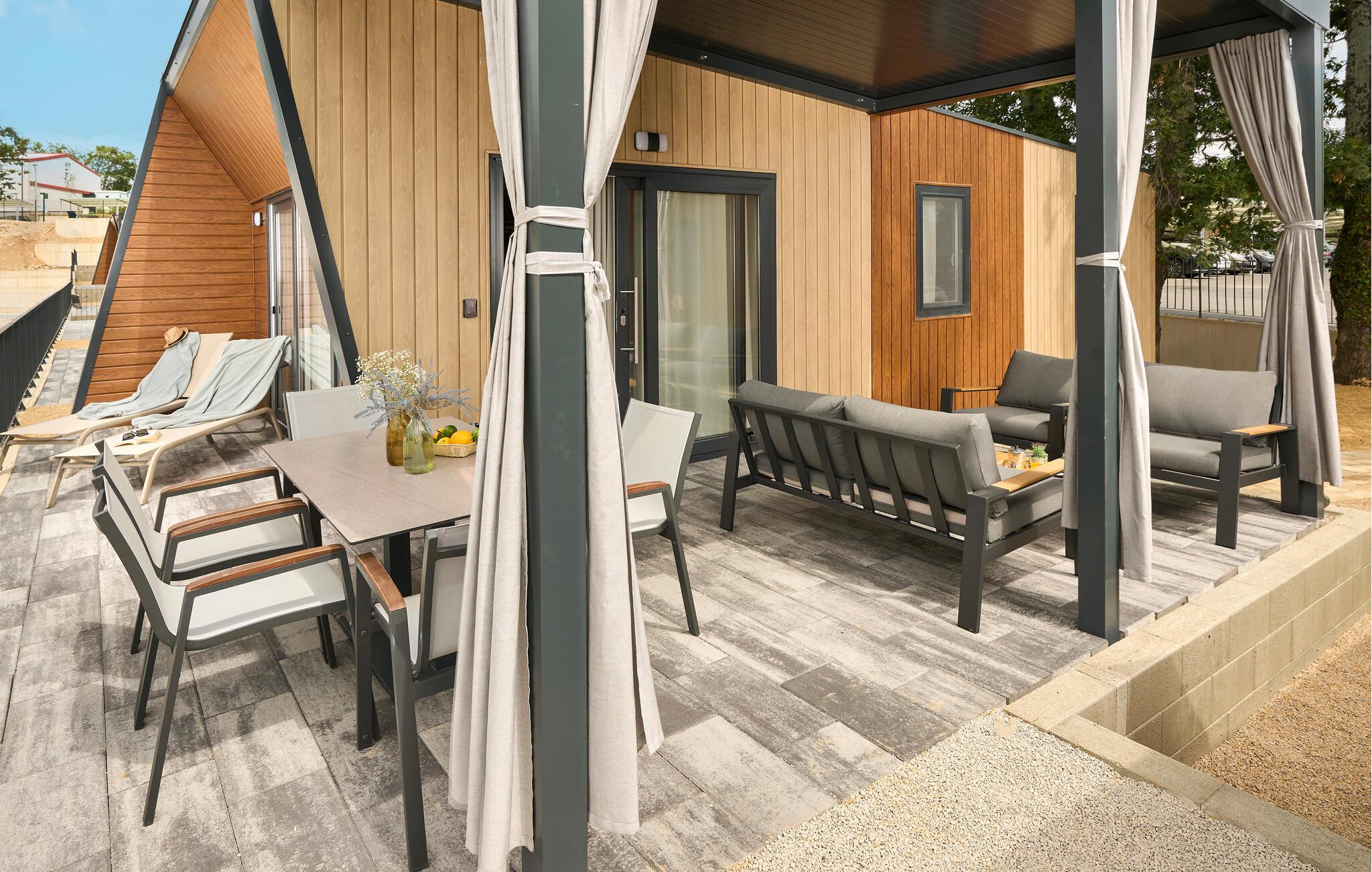 Den store terrasse lægger op til masser af tid udendørs – uanset om I læser, snakker eller nyder en rolig aften med et glas vin. Tag en dukkert i den fælles pool og slap derefter af på en liggestol. Spil en runde minigolf eller se børnene lege og klatre på legepladsen.
