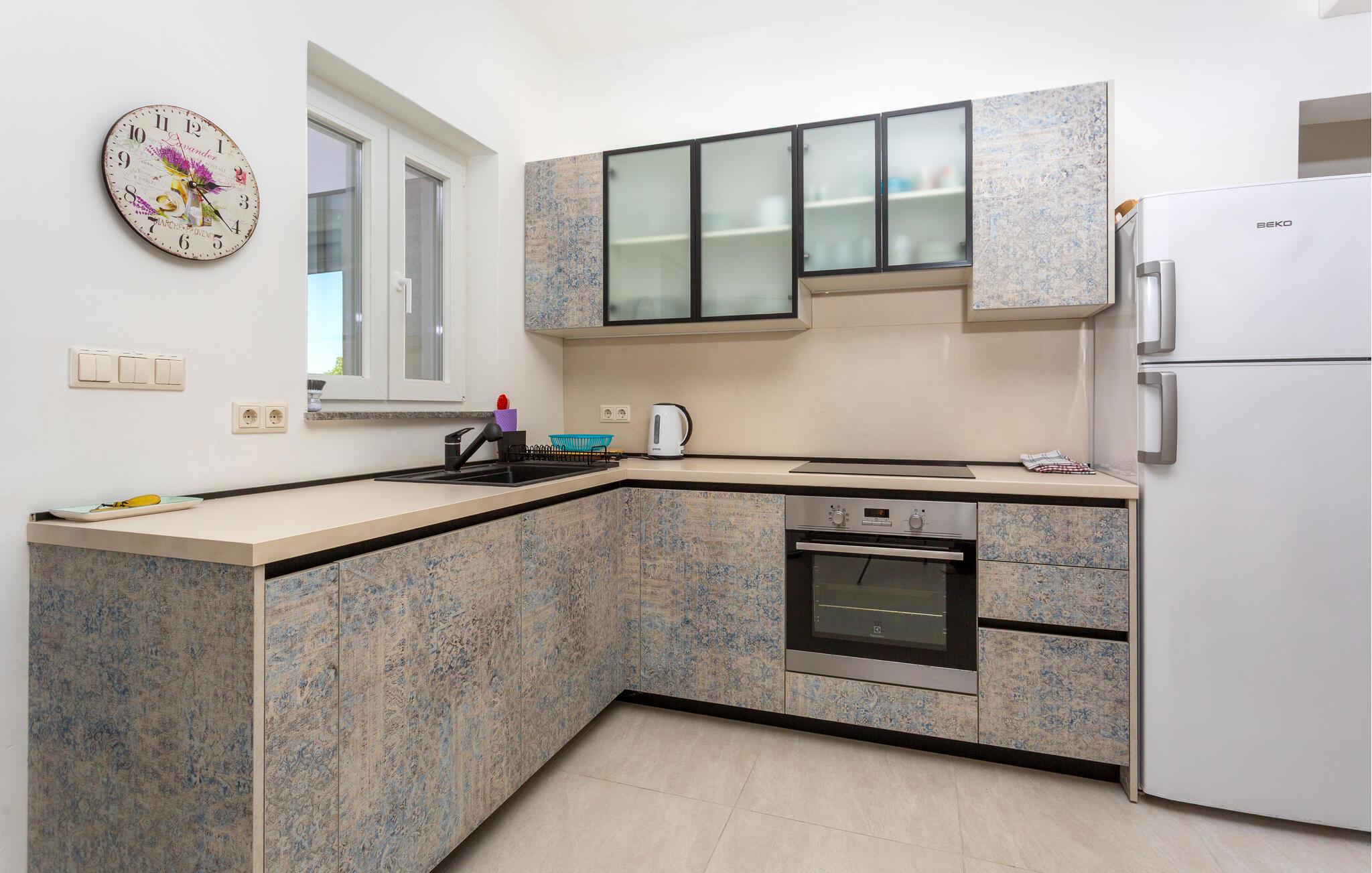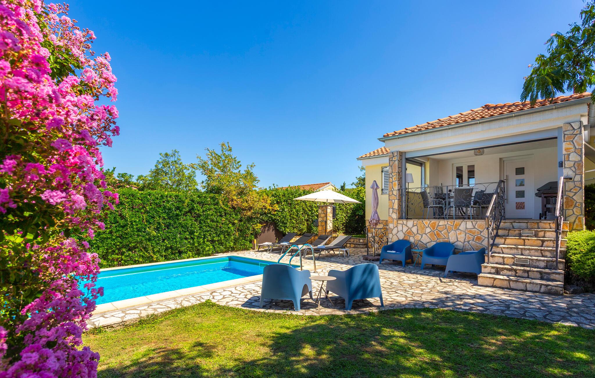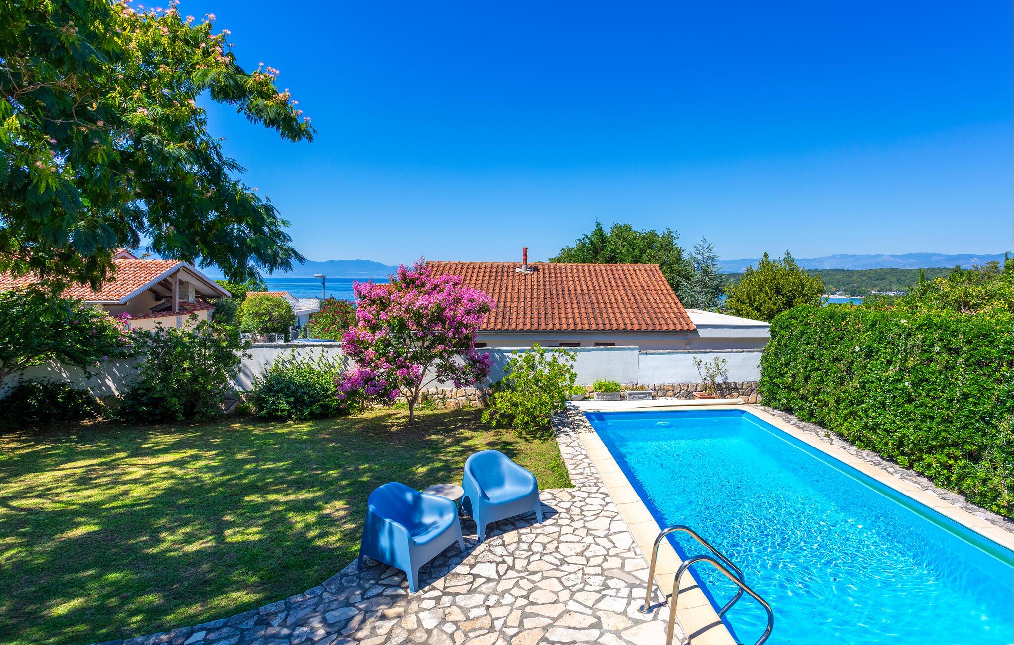 Dette flotte feriehus ligger i den lille fiskerby Njivice. Det er det ideelle valg for en familie på ferie, der vil nyde en varm atmosfære. Lyst og luftigt indrettet med nye, komfortable møbler i varme toner, det giver et afslappende og behageligt ophold. En smuk swimmingpool på varme sommerdage giver en dejlig afkøling. Hvis du foretrækker at svømme i havet, så besøg de smukke strande kun få minutter væk. Øen Krk, også kaldet Den Gyldne Ø, er den største og mest besøgte ø i Kroatien. De mest populære destinationer er byerne Krk, Malinska, Punat, Baska, hvor der er smukke strande. Den største kroatiske ø Krk har meget at tilbyde i sommermånederne med et rigt kulturliv og underholdning for alle aldre. Byen Krk er hjemsted for mange historiske steder, der fortæller om en begivenhedsrig historie. Tag hertil hvis I drømmer om at opleve en masse under jeres ferie. De smukke øer i Kroatien har i lang tid været populære feriedestinationer for turister.
