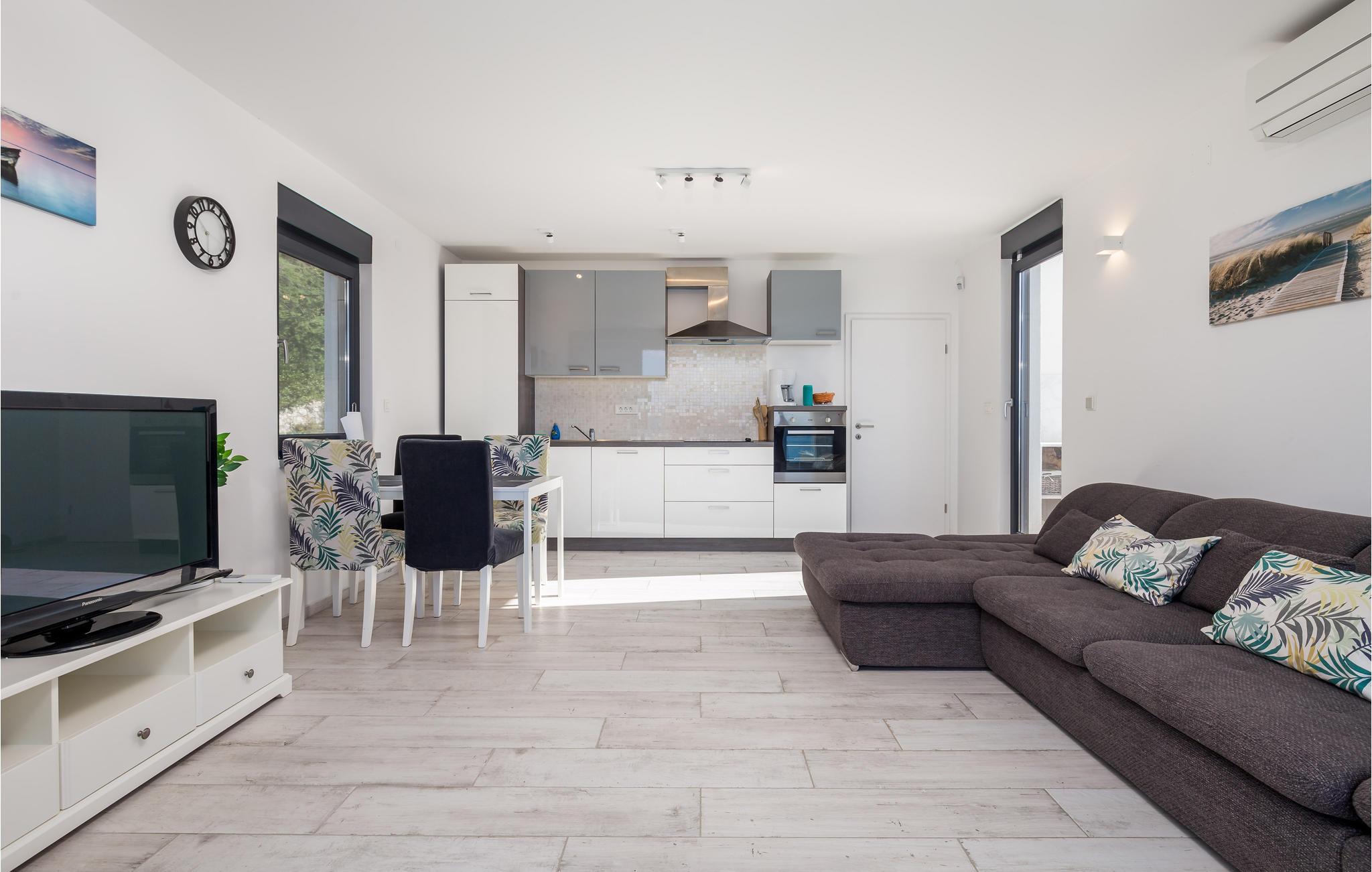 Denne skønne ferielejlighed ligger i Omišalj på øen Krk og vil fortrylle jer med sin moderne møblering og måske allermest sin betagende udsigt over det solbeskinne hav. Feriedomicilet har et praktisk køkken og en stue, to soveværelser og et badeværelse. Slap af på den rummelige terrasse eller balkonen med en god bog og nyd de lange lune aftner med god lokal vin i glassene. Gå ture gennem Omišalj ad de snoede brostensbelagte stræder. Besøg lapidariet, med sin lille udstilling af stenmonumenter og smag det traditionsrige lokale køkken i en af de mange restauranter og taverner.