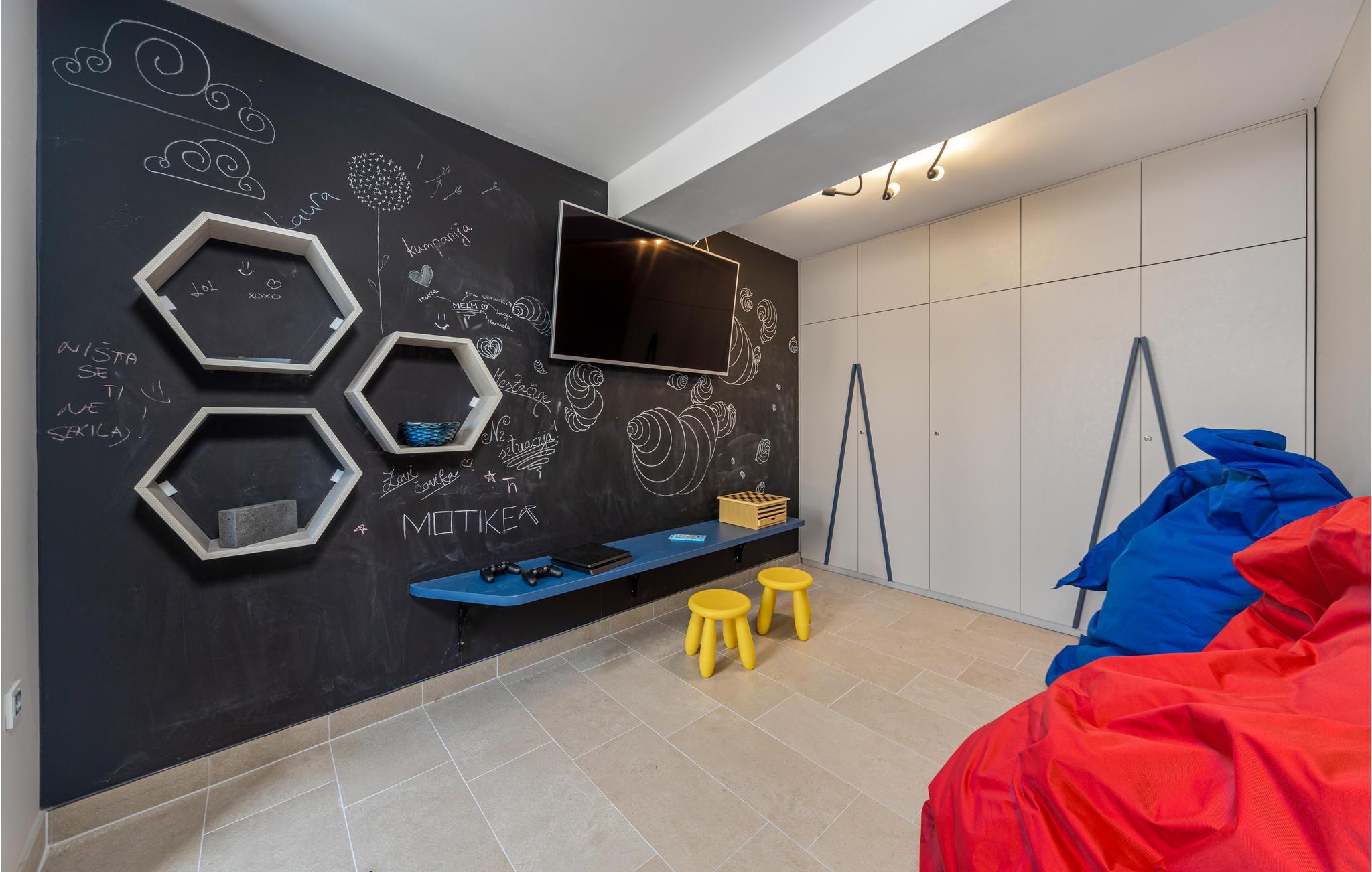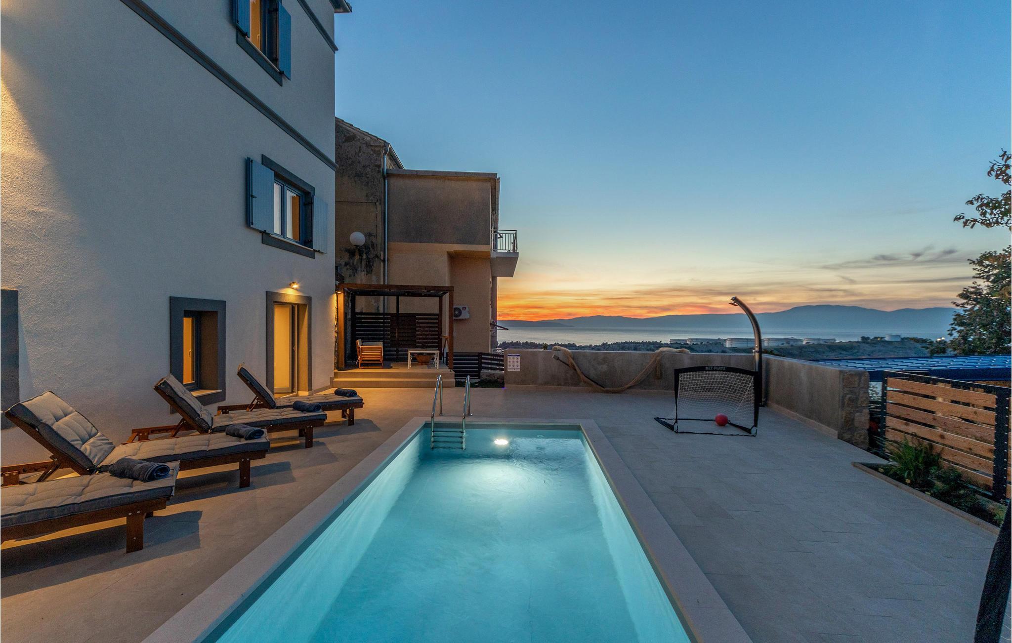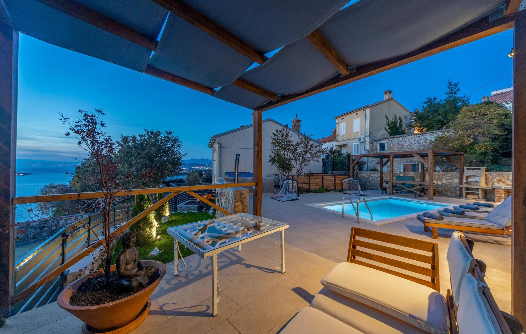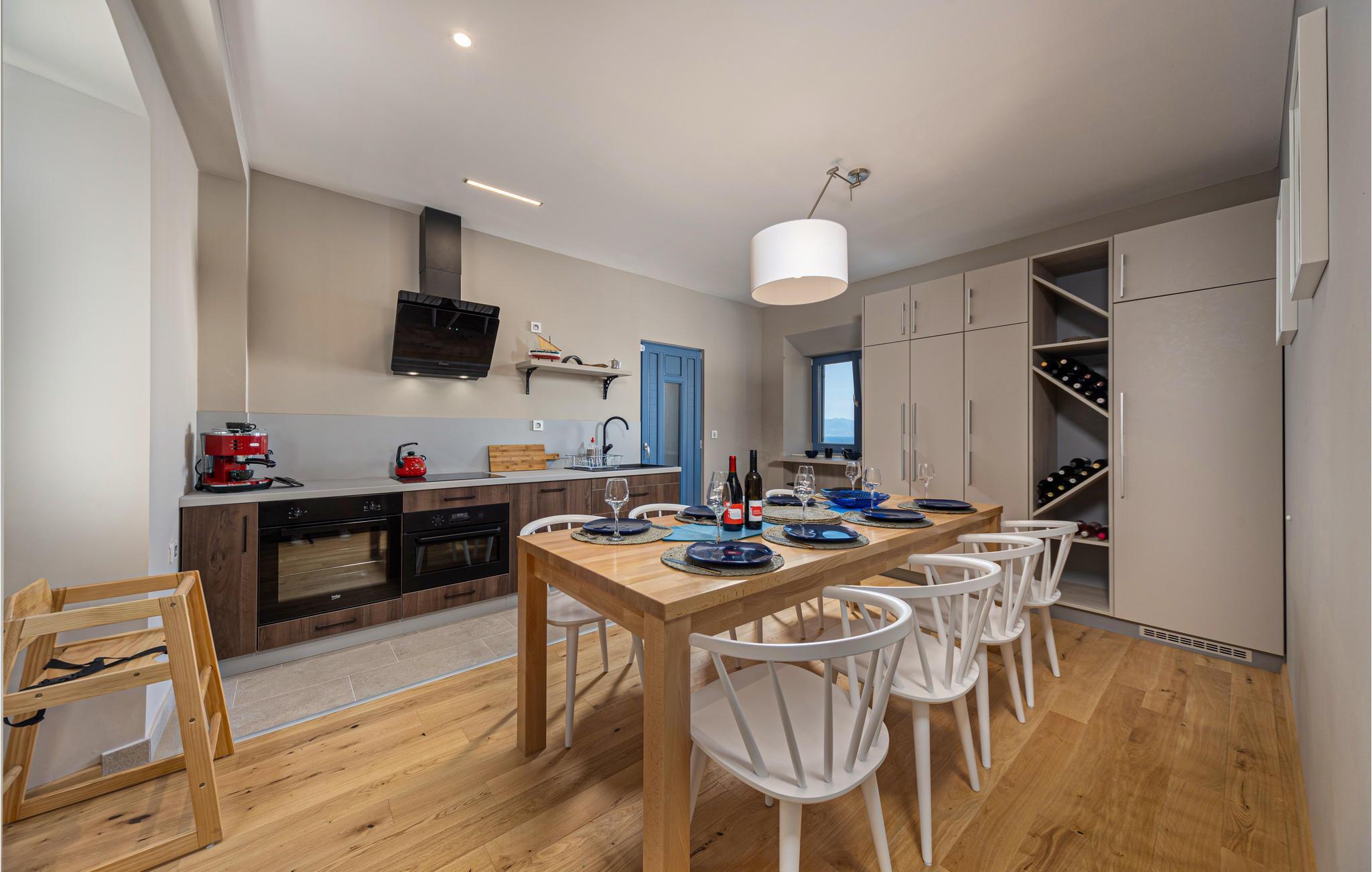 Dette moderne feriehus ligger i udkanten af ??den gamle bydel i Omisalj i en rolig, høj beliggenhed med en smuk udsigt.