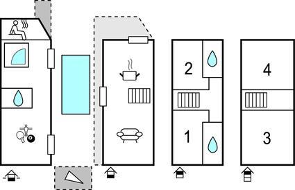 På bagsiden af ??den indhegnede ejendom er der solstole af høj kvalitet til solbadning og afslapning omkring den udendørs pool, en overdækket pavillon med et multifunktionelt legebord til børn og voksne. Her venter jeg mange gode grillaftener og behagelige timer udendørs.