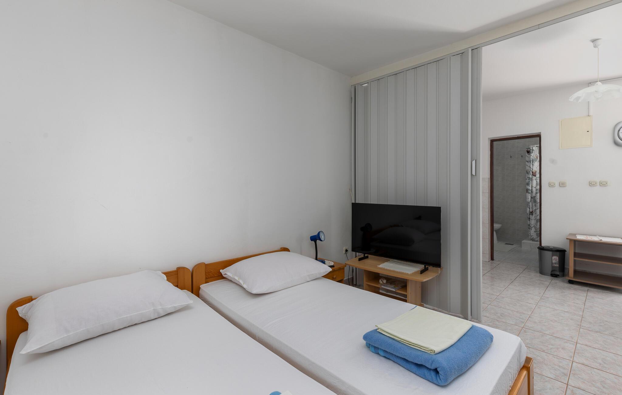 Velkommen til jeres funktionelle og komfortable ferielejlighed med havudsigt. Huset rummer flere ferieboliger og ligger lige ved siden af stranden. Indenfor vil I opleve en hyggelig stemning, hvor I kan slappe af og nyde jeres ferie. Lejligheden er fuldt udstyret med alt, hvad I behøver for en solrig ferie i Kroatien. Hvis I rejser med flere familier, kan I afhængigt af tilgængelighed leje flere lejligheder samtidig.