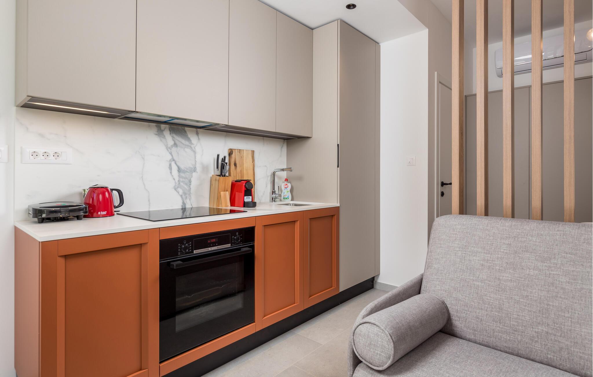 Træd ud på balkonen eller i jeres private have, og nyd solbadning på liggestolene. Den opvarmede pool i fælleshaven tilbyder ekstra forfriskning og mulighed for at møde de andre gæster i huset.