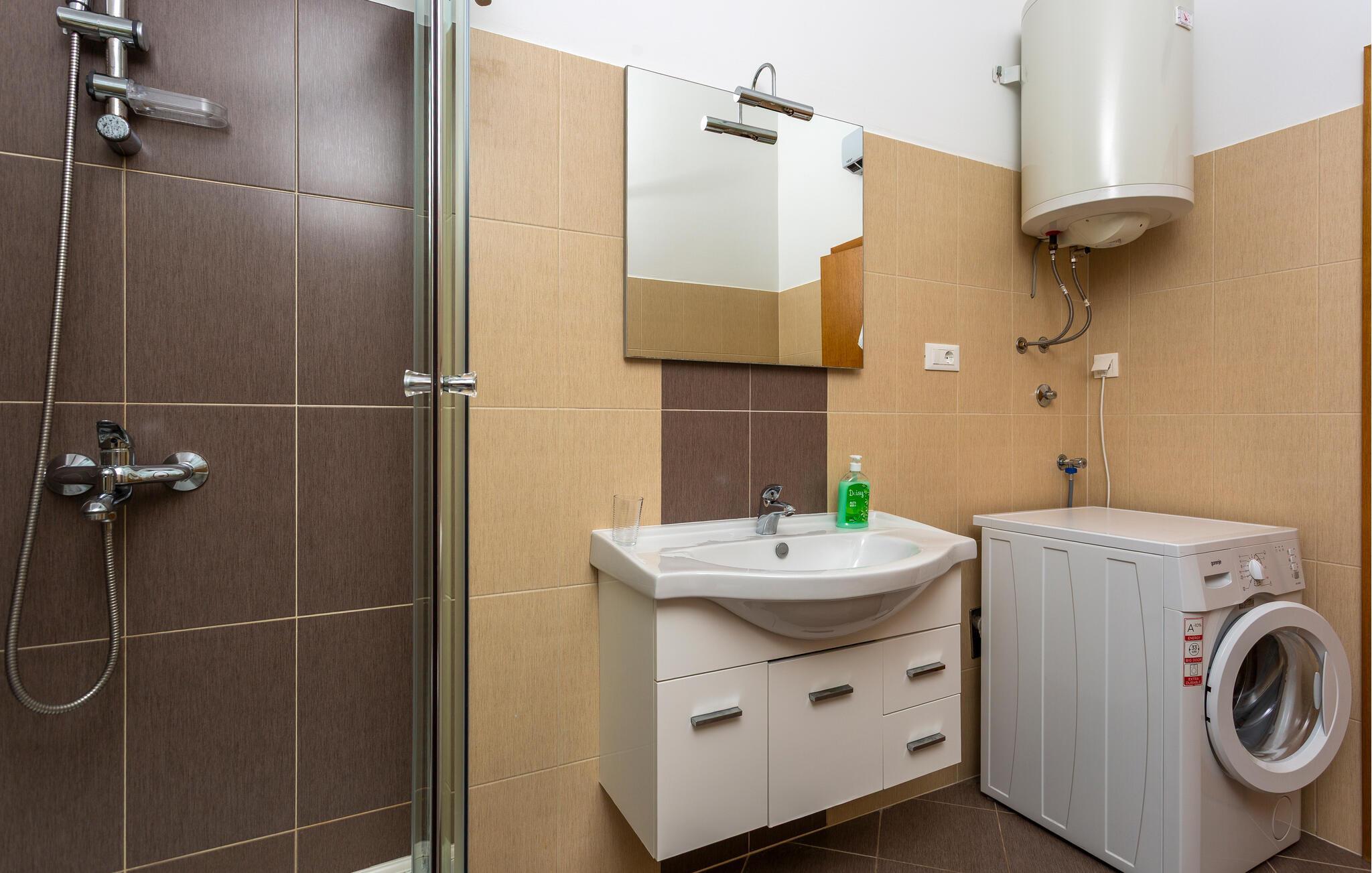 Denne lyse og stilfuldt indrettede ferielejlighed lægger op til at tage en afslappende pause ikke langt fra den fortryllende Adriaterhavskyst. Tilbered lækre retter i det moderne køkken og tag plads ved det elegante spisebord. Find jer godt til rette i sofaen med en spændende bog eller hel jer familien med en hyggelig spilleaften.