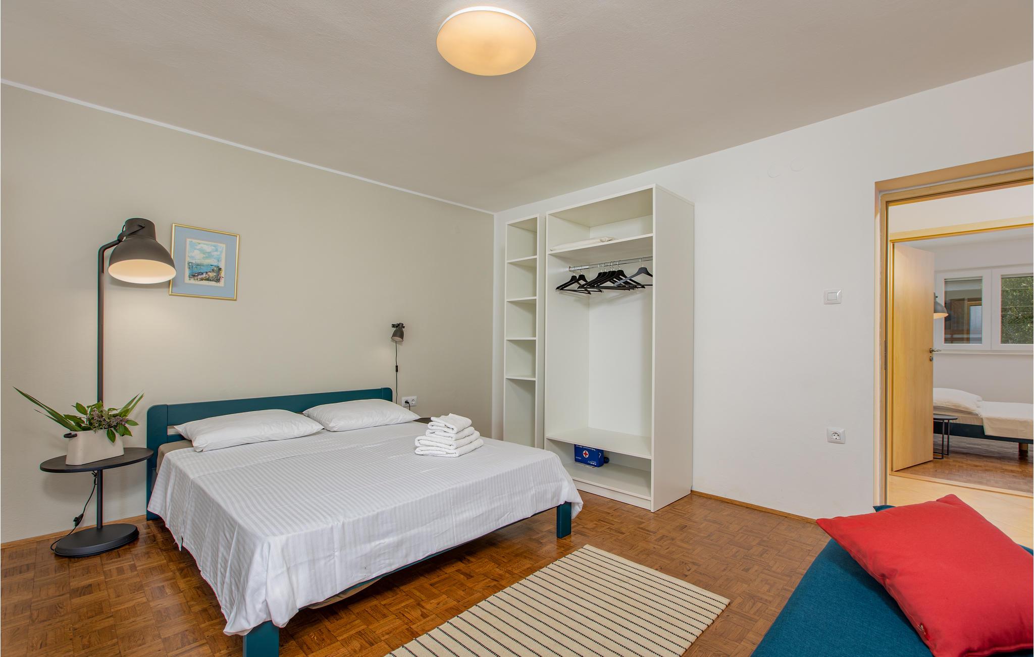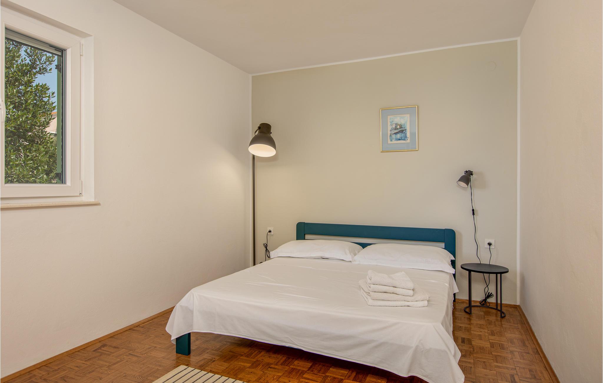 Denne komfortabelt indrettede ferielejlighed ligger i et hus, omgivet af en smuk og velholdt grund. Huset ligger i det hyggelige Omisalj. I den dejlige blomsterrige have, står der en grill til rådighed. Her kan I tilberede lækre fiskeretter og nyde de lange aftener. Øen Krk er især kendt for sit lammekød og olivenolie. Hvis I kunne tænke jer, at tage af sted på en dagstur, anbefaler vi at I besøger den lille ø Kosljun. To parkeringspladser ligger på det ikke indhegnede stykke af ejerens grund.