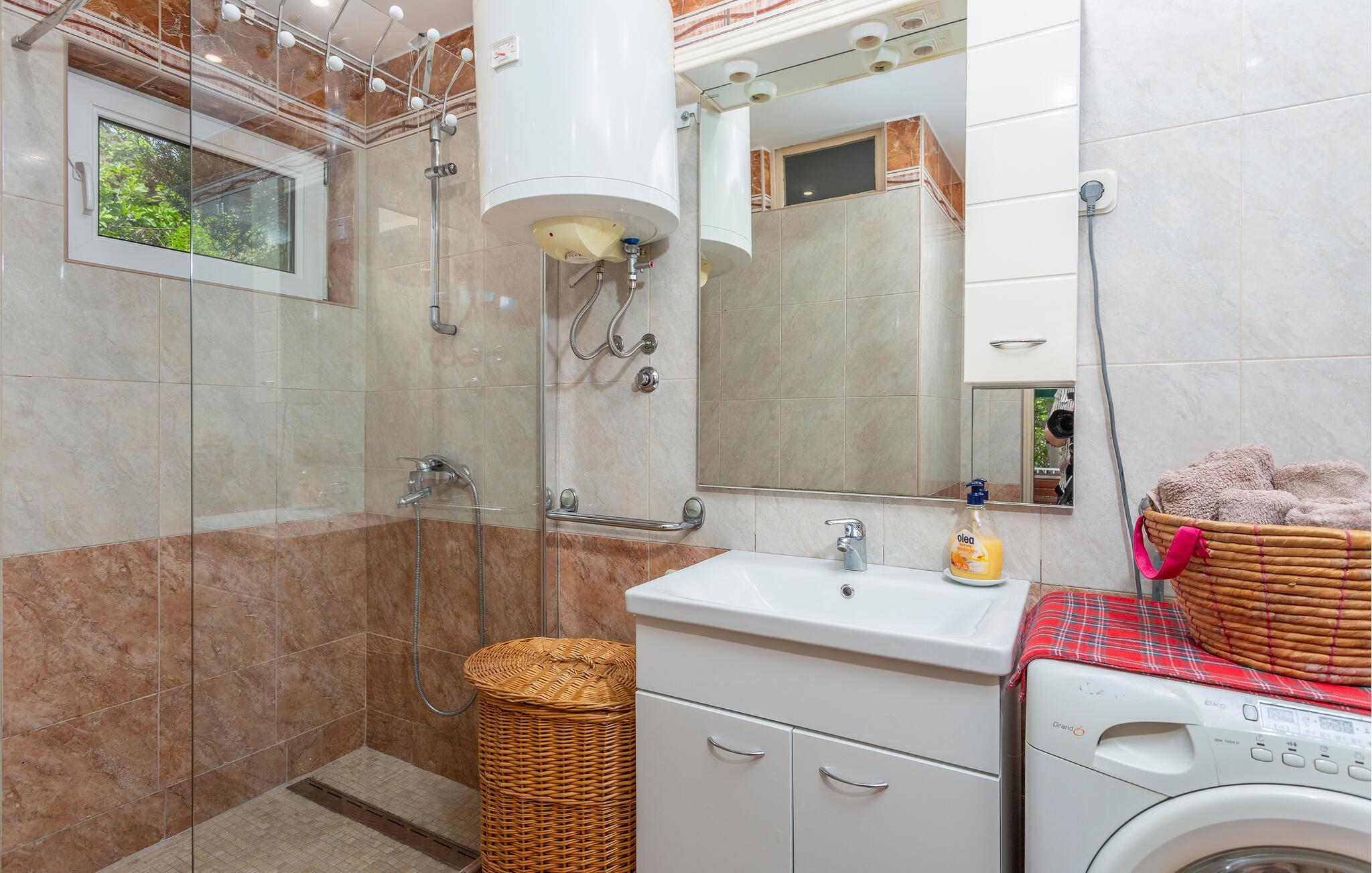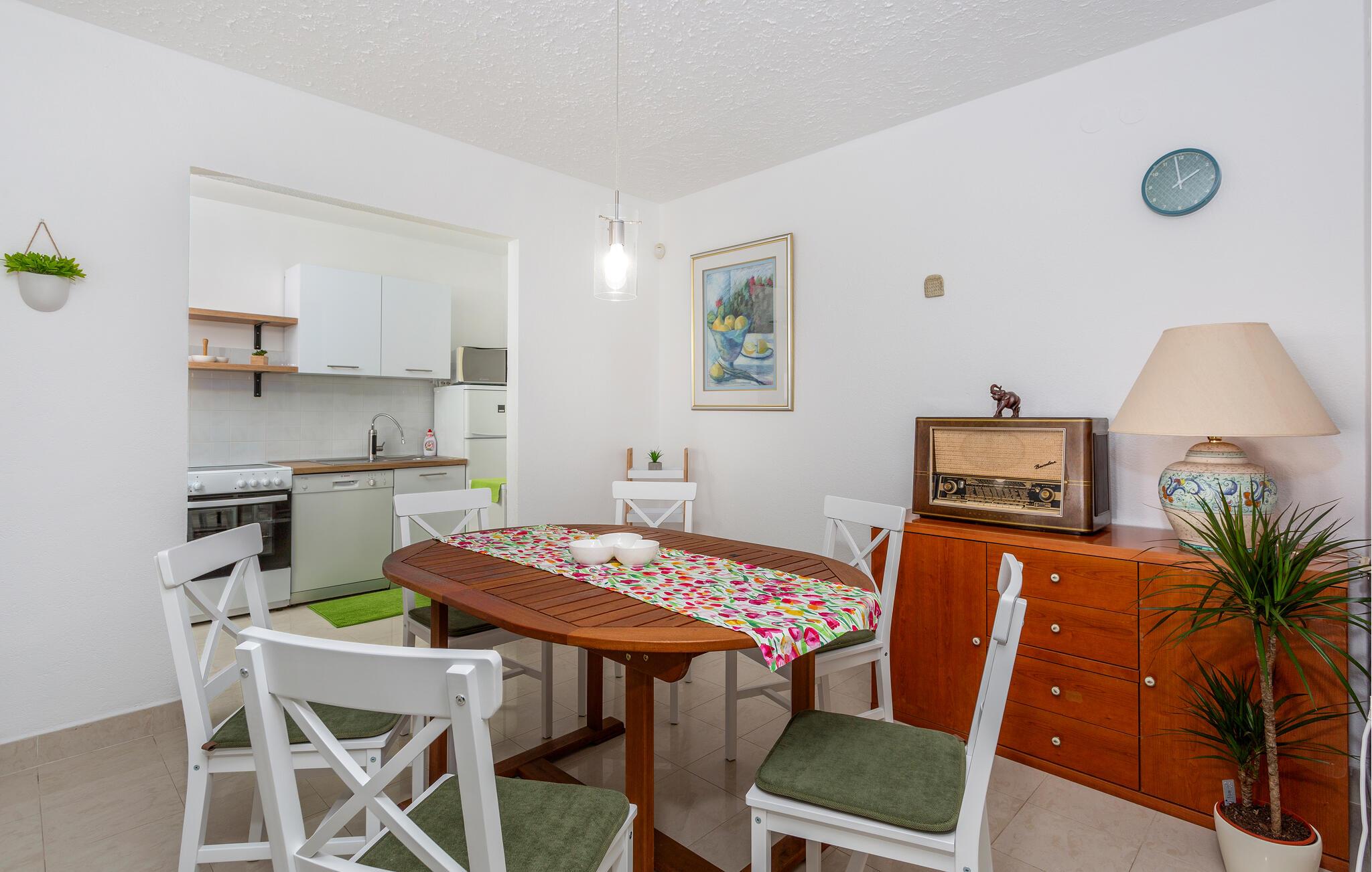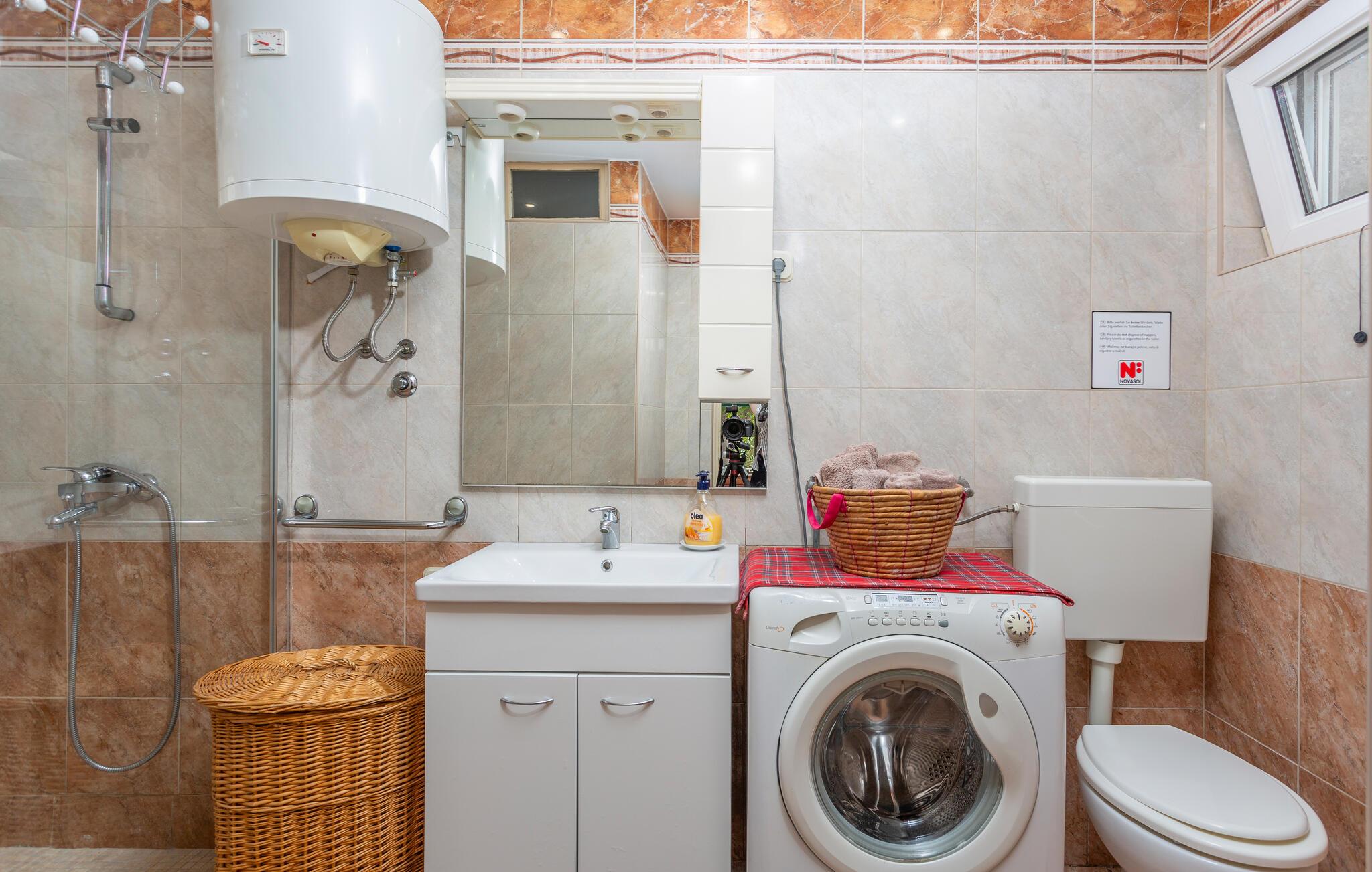 Hold jeres familieferie i dette dejlige feriehus. Det er komfortabelt indrettet og vil opfylde jeres forventninger fuldkommen. Foran huset ligger terrassen med grill og en romantisk have. Bliv begejstret af den herlige udsigt over havet. Kør også til de omkringliggende små byer på øen Krk, og smag den fremragende kroatiske mad og områdets vine. Lær øen Krks rige kulturarv at kende, og sørg for sjov og afveksling i jeres ferie med kartbanen i Krk, wakeboarding i Punta, på cykelstier, med ridning og jetskiløb. Ferieboligen ligger i den gamle by og kan kun nås til fods. Der er parkeringsplads i nærheden.