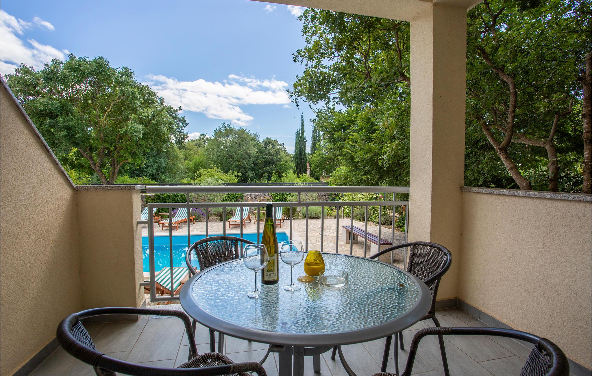 Begynd dagen med en morgenkaffe på den overdækkede terrasse, som er helt jeres egen. Strandene ligger tæt på, og der er kulturtilbud i Krk, mens den lille by Vrbnik har gode spisesteder. Øen har i det hele taget meget at byde på, lige fra smuk natur til gode oplevelser.