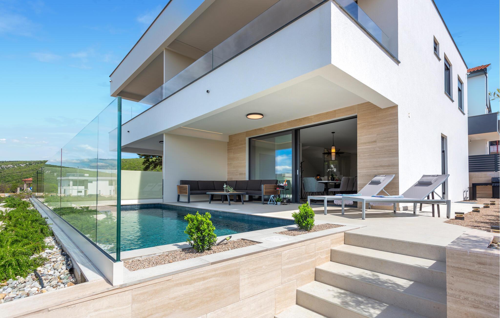 Tag den udvidede familie under armen og rejs til den gyldne ø, Krk, hvor der venter jer denne vaskeægte drømmebolig med en smuk, panoramisk beliggenhed. Alt, ude som inde, emmer af kvalitet og komfort over hele linjen. Indretningen er stilsikkert udført med sans for detaljen og i moderne materialer, der giver det indre et elegant præg og gør det nemt at slappe af med det samme, I ankommer. Kræs om livretterne i det veludstyrede køkken, nyd den fantastiske udsigt og sved godt igennem i saunaen, inden I runder aftenen af med snacks og en god film i den rummelige sofa.