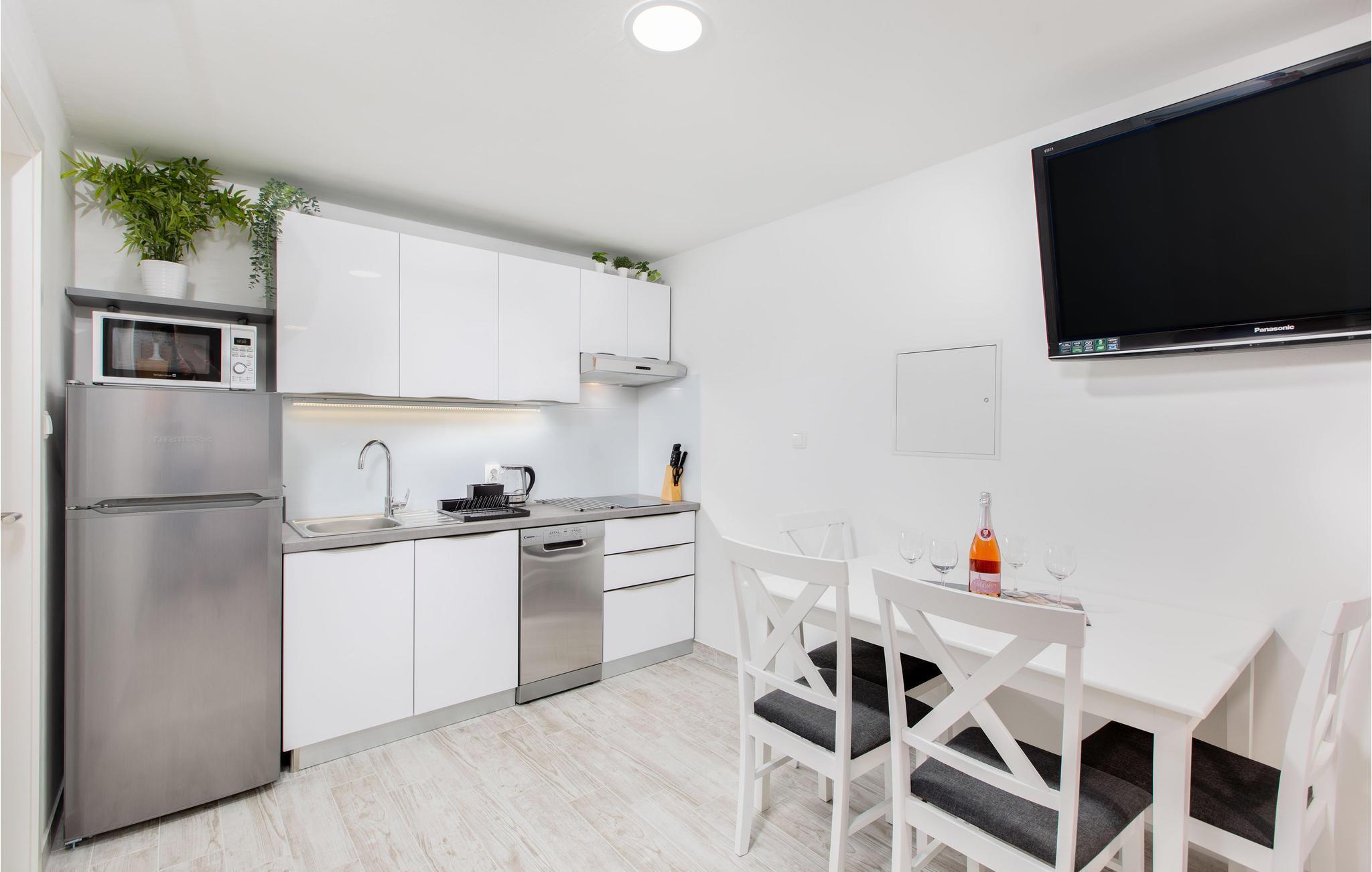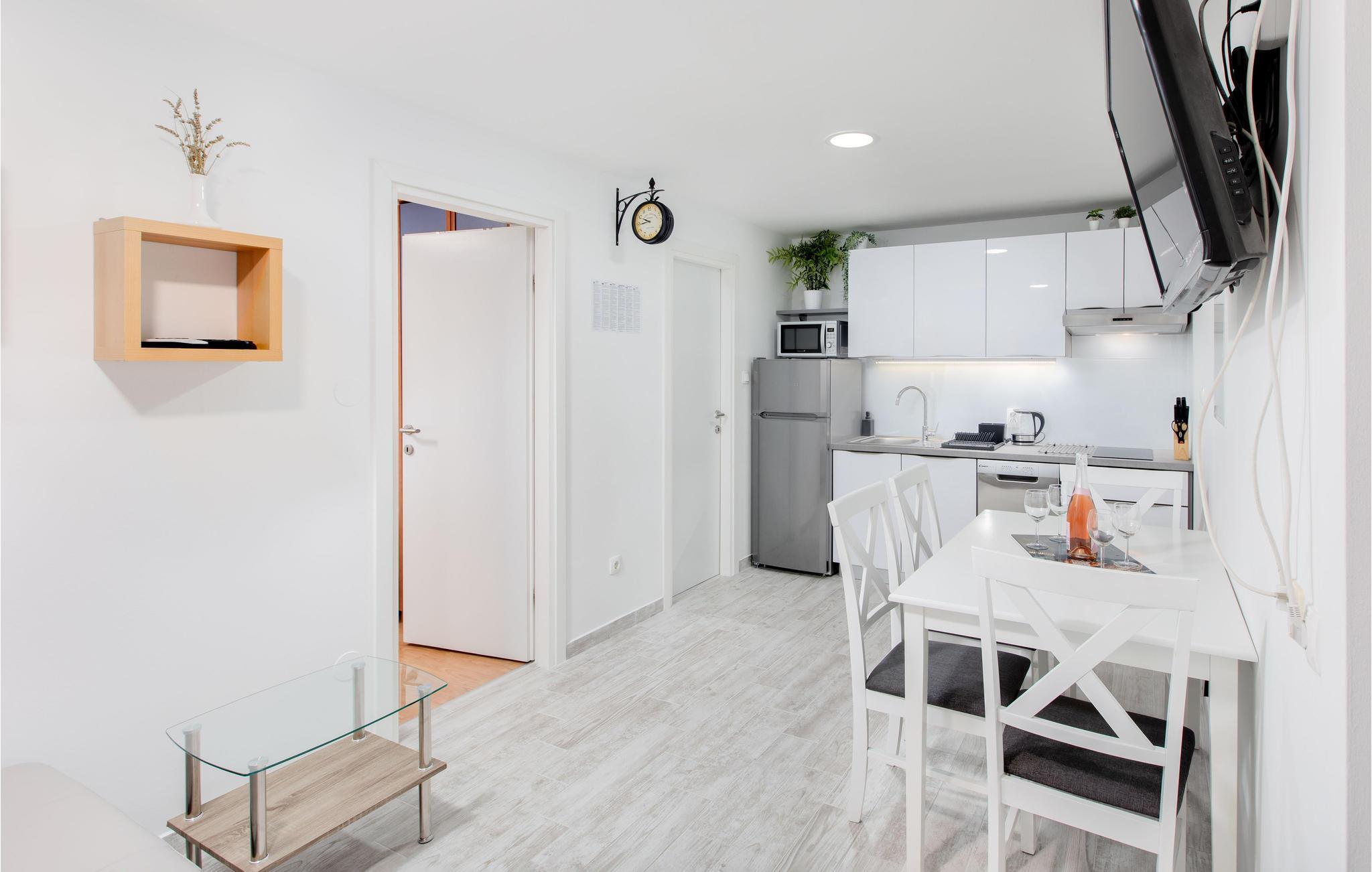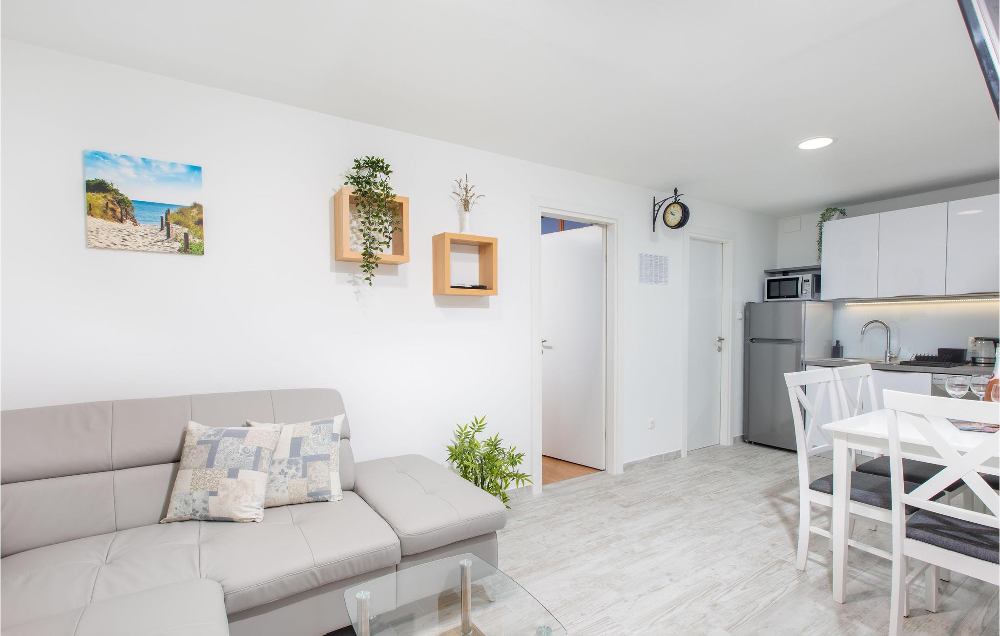 Denne moderne indrettede ferielejlighed ligger i stueplan i en privat ejendom. Kiesstranden Puntarska vala ligger ikke langt fra lejligheden, ligesom den ved Stara Baska, der ligger ca. otte km væk og tæller med bland Adriaterhavets skønneste strande. De mange strande og parker, den smukke natur, havnen Marina Punta, de mange muligheder for at dyrke vandsport, de skønne traditionsrige retter i taverner og restauranter, sammen med det rige kulturelle tilbud, nærheden til øen Košljun – det hele er med til at gøre Punat til et meget populært turistmål.