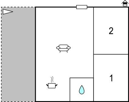 Opholdsstue/køkken - 1 Soveplads. (Sofa, madras eller lignende).