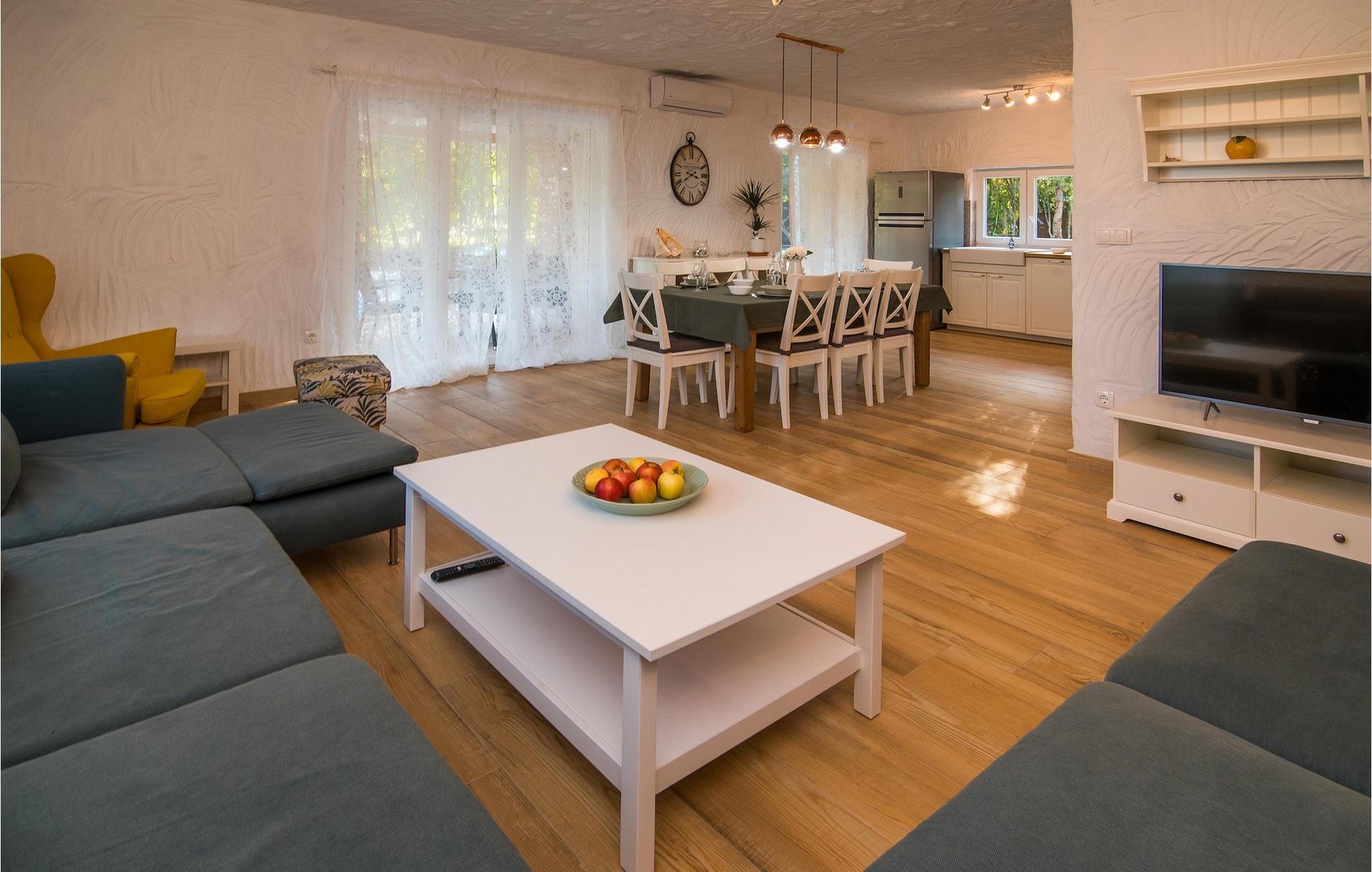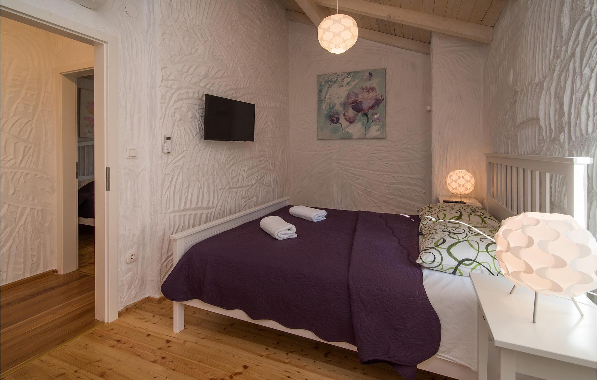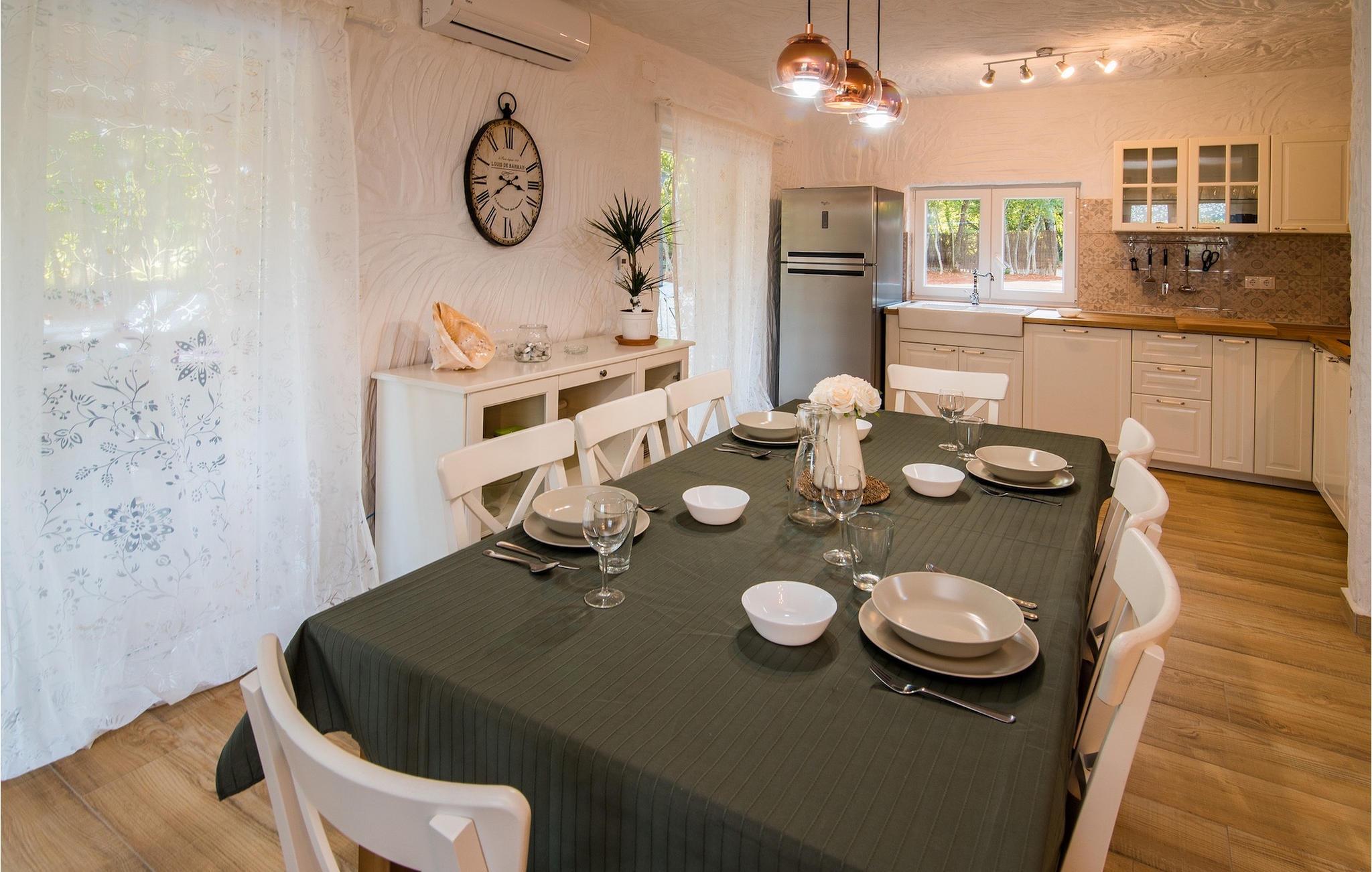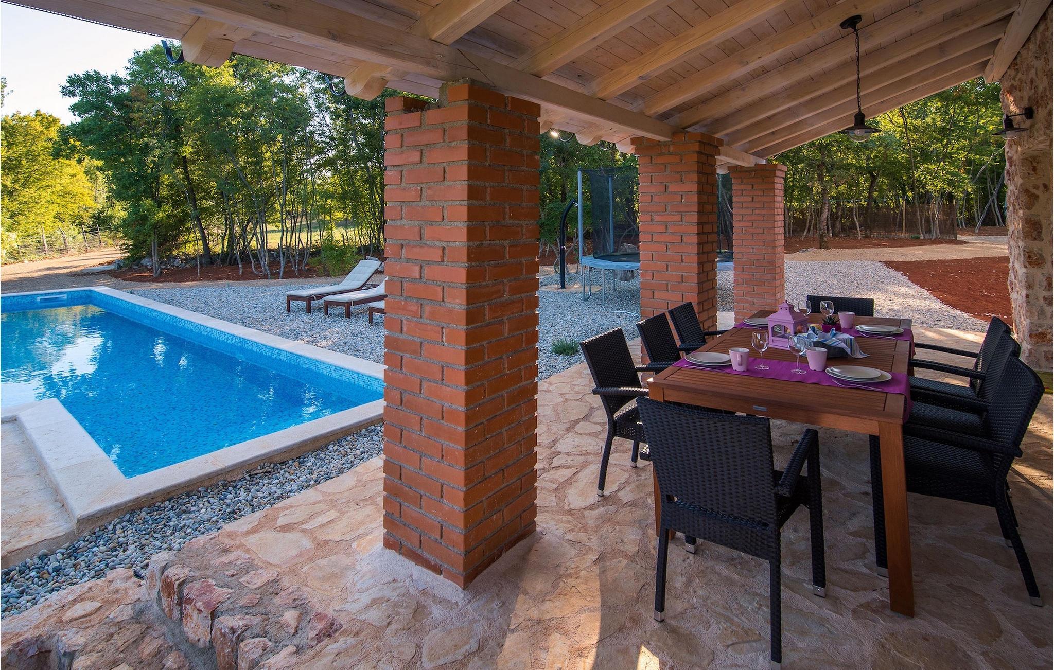 Villa Junona ist eine großartige Wahl für diejenigen, die einen entspannenden, ländlichen Charme erleben möchten, aber dennoch in der Nähe von atemberaubenden Stränden und lebhaften Badeorten sein möchten. Diese charmante Steinvilla befindet sich auf der wunderschönen Insel Krk und bietet Platz für bis zu 8 Personen. Das Erdgeschoss umfasst ein unglaublich komfortables Wohnzimmer, ein Esszimmer, eine Küche und ein Badezimmer. Im ersten Stock befinden sich 3 komfortable Schlafzimmer, von denen eines über ein eigenes Badezimmer verfügt. Es ist von einem umzäunten Garten umgeben, in dem Sie ein gutes Buch auf den Sonnenliegen oder im privaten Pool genießen können, der an warmen Tagen unwiderstehlich sein wird. Während Sie leckere Mahlzeiten auf dem Holzkohlegrill zubereiten, können Kinder sich beim Trampolinspringen vergnügen.Villa Junona befindet sich auf der wunderschönen Insel Krk in der Kvarner Bucht, die als eines der attraktivsten und schönsten Reiseziele der Adria gilt. Gute Verbindung mit dem Festland, ein ausgezeichnetes touristisches Angebot, verschiedene Strände mit kleinen Buchten, wunderschöne Natur und verschiedene Möglichkeiten für Spaß und Entspannung machen Krk zu einem der interessantesten touristischen Ziele an der Adria. Die Villa befindet sich in einer kleinen Gemeinde Risika, das nur 3km vom Strand Sv. Marak entfernt ist. Es gibt auch einen Flughafen auf der Insel, 25 km von der Villa entfernt. Einige der Besonderheiten der Insel sind, dass sie etwa 1400 Arten von Pflanzen und Hunderte Kilometern von Wander- und Radwegen hat. Obwohl Krk die nördlichste Insel im Mittelmeer ist, herrscht auf der Insel ein mildes mediterranes Klima. Die Insel Krk bietet viele natürliche und kulturelle Attraktionen.