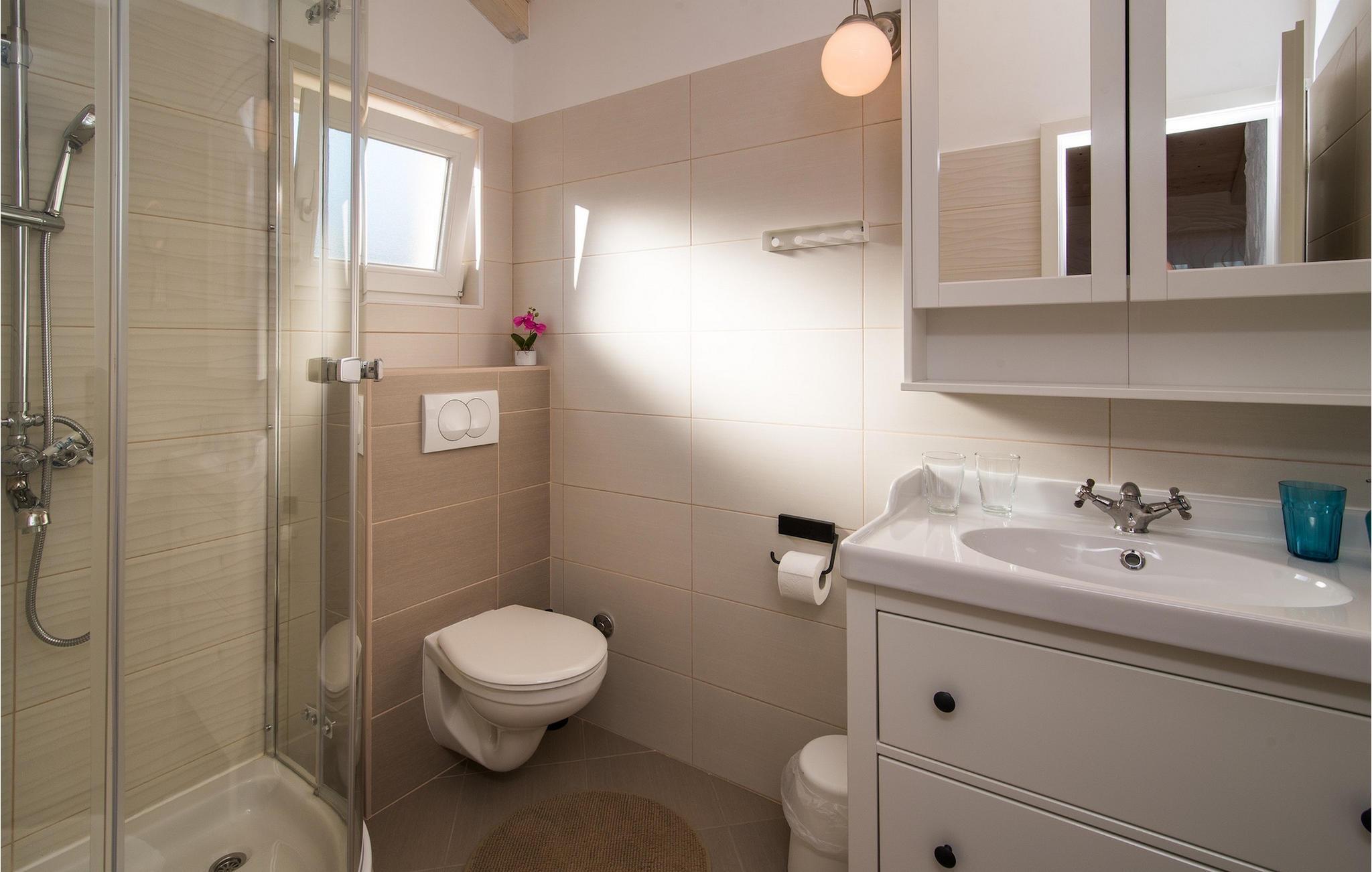 Badezimmer (nr. 2) - WC. Warmes und kaltes Wasser. Dusche