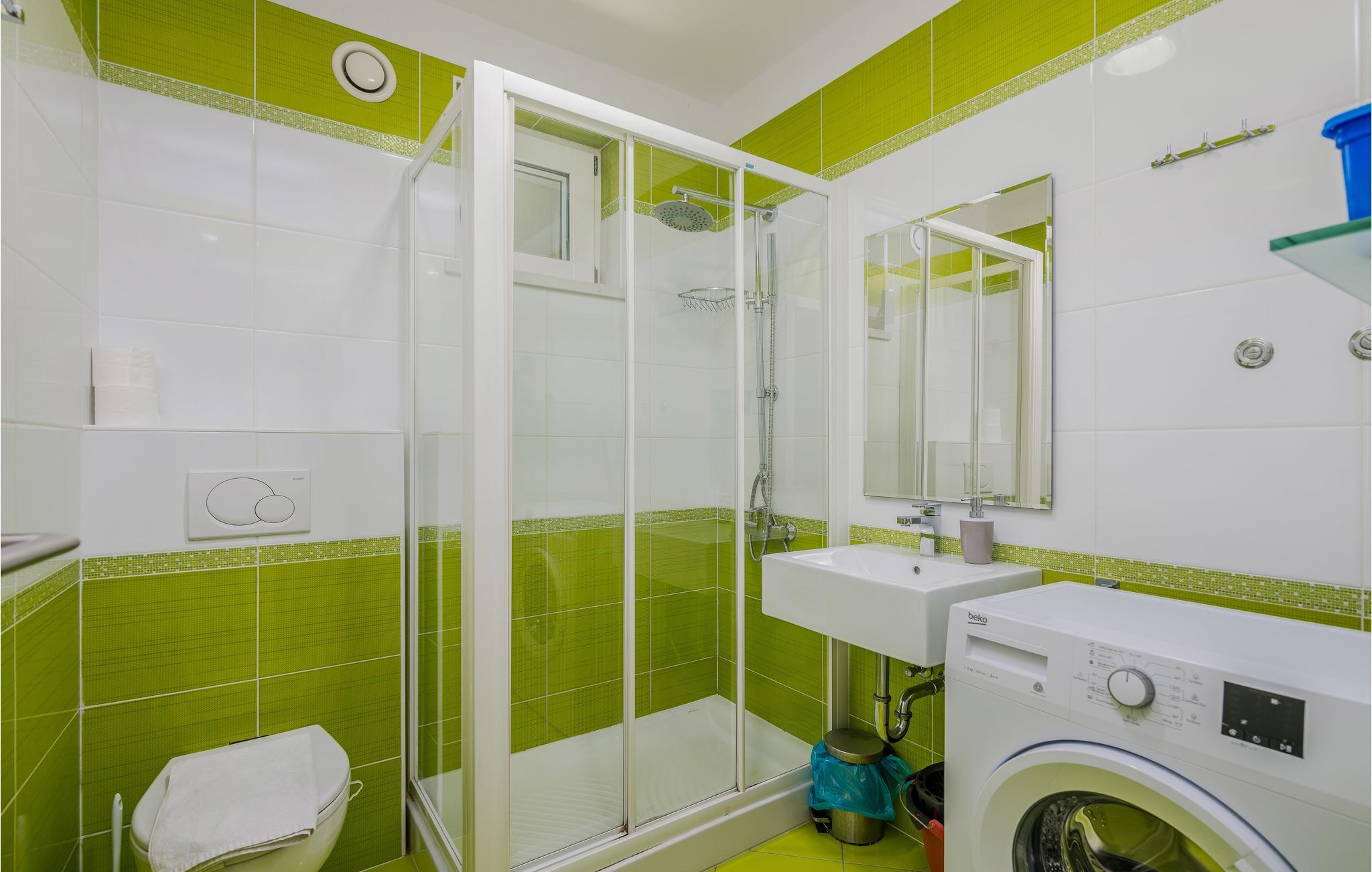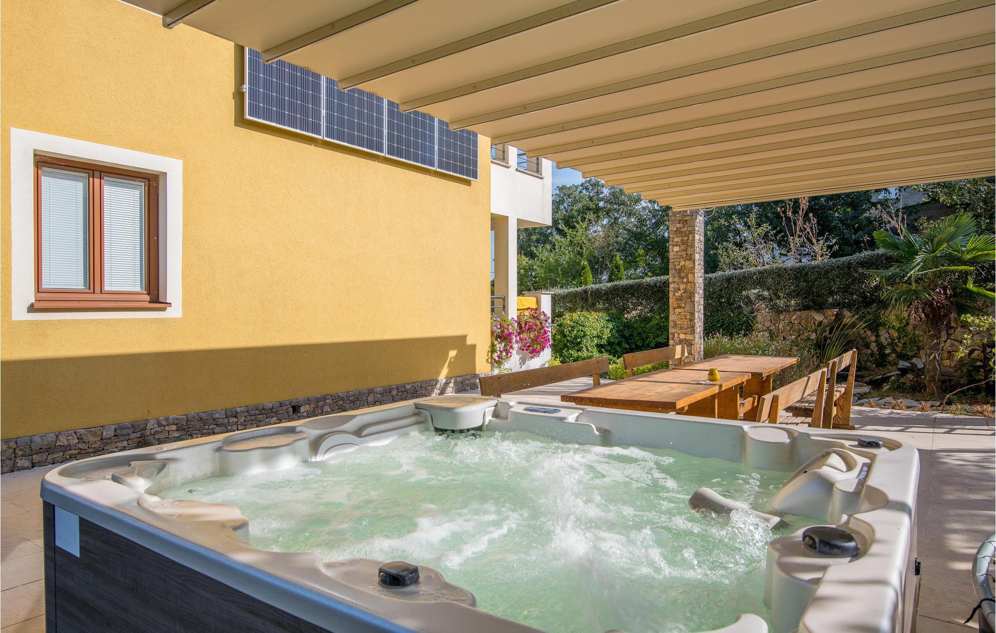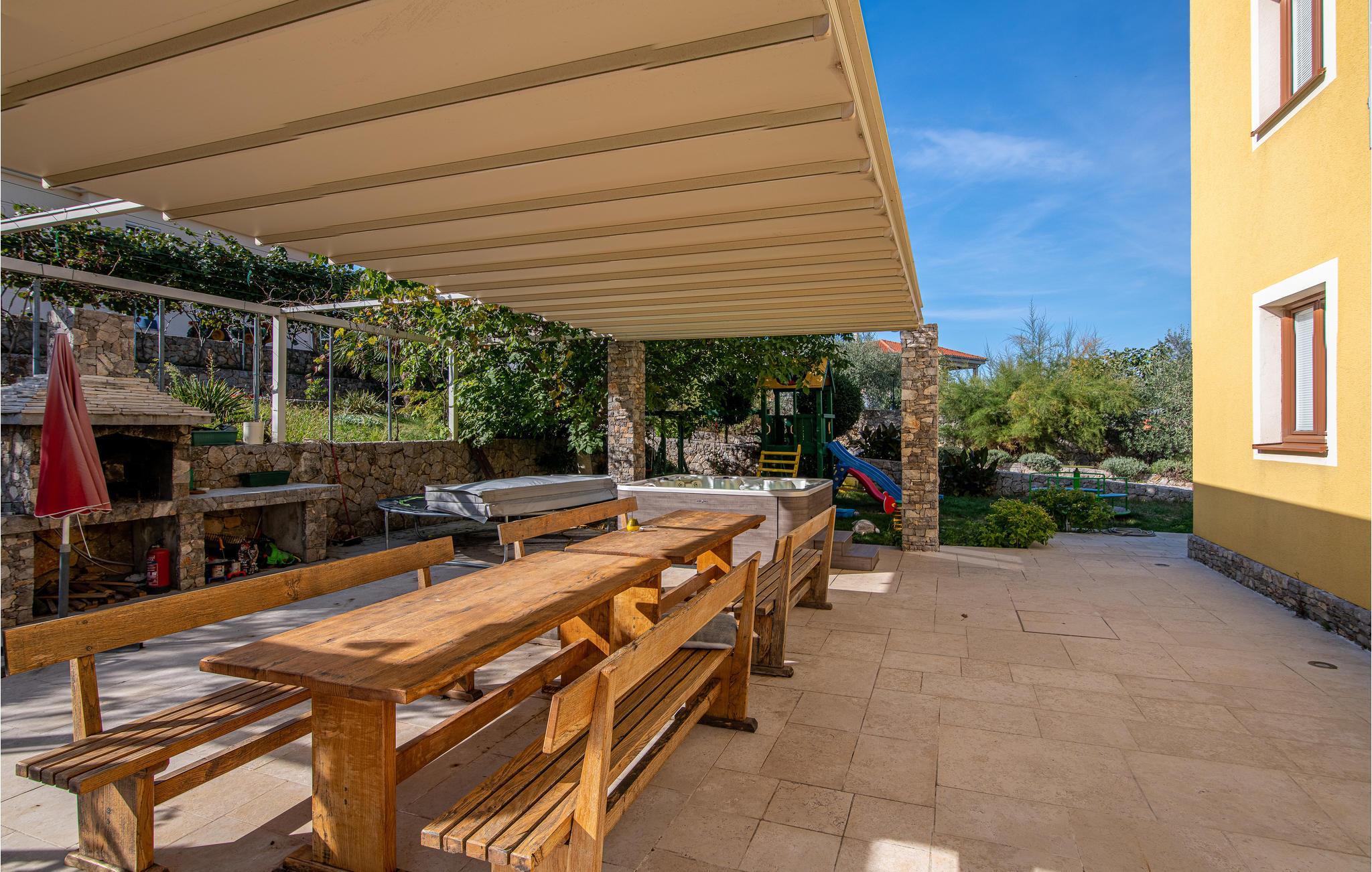 I nærheden af byen Krk, i den lille by Salatic og i rolige omgivelser ligger disse dejlige og stilfulde ferielejligheder i en beboelsesbygning. Her tilbydes der høj komfort. På den store grund ligger der en pool, en overdækket terrasse med grill og en specielt udstyret legeplads med gynge, vippe, rutsjebane og sandkasse. Det hele er forberedt til jeres uforstyrrede afslapning i de rolige omgivelser. I kan ikke kun slappe af, I kan også være aktive. Der er afvekslende cykel- og vandreruter i området. På grunden er der ladestation til både elbiler og -cykler.