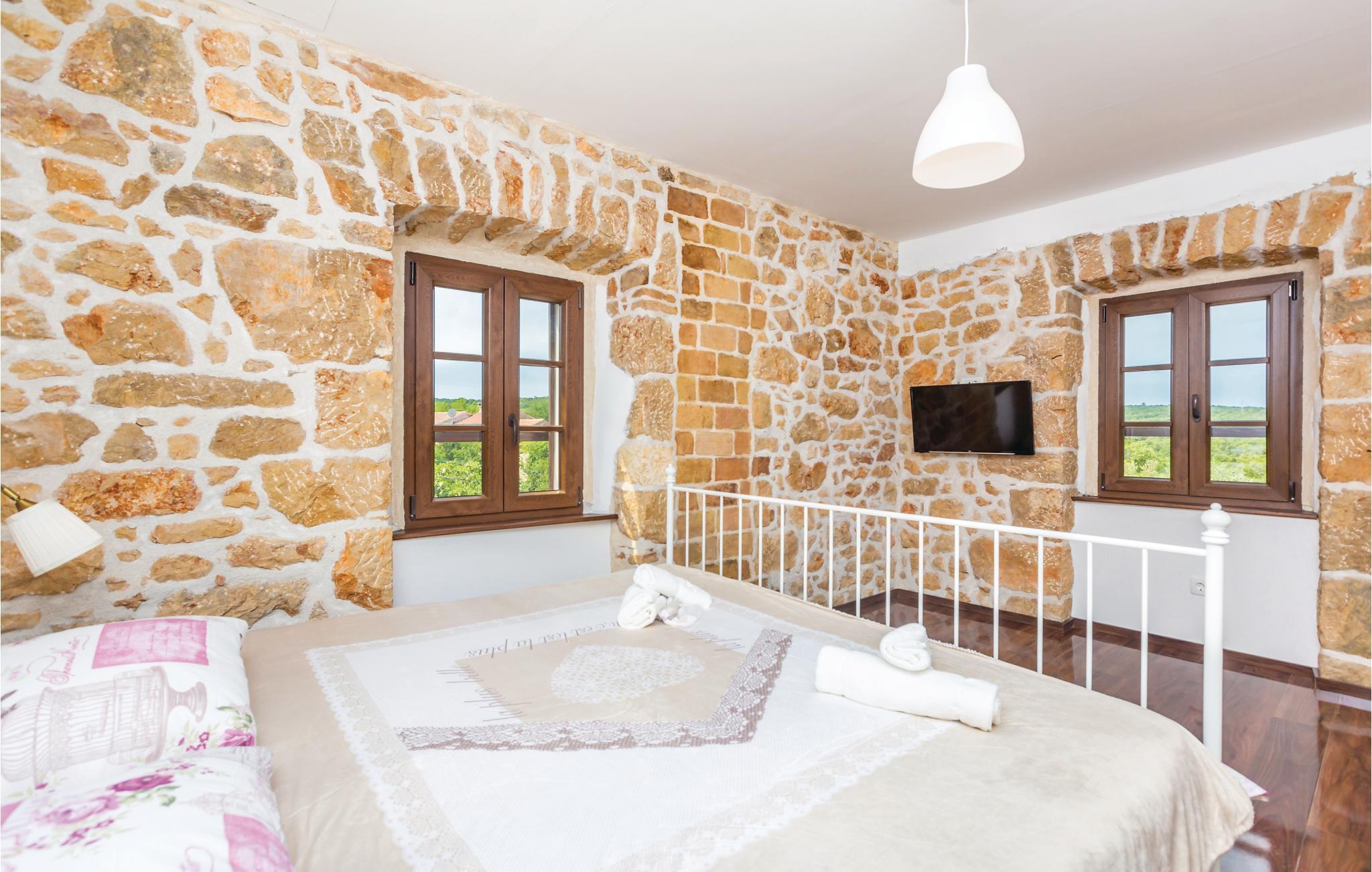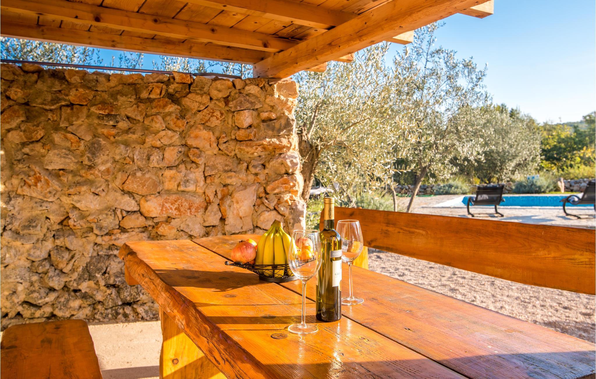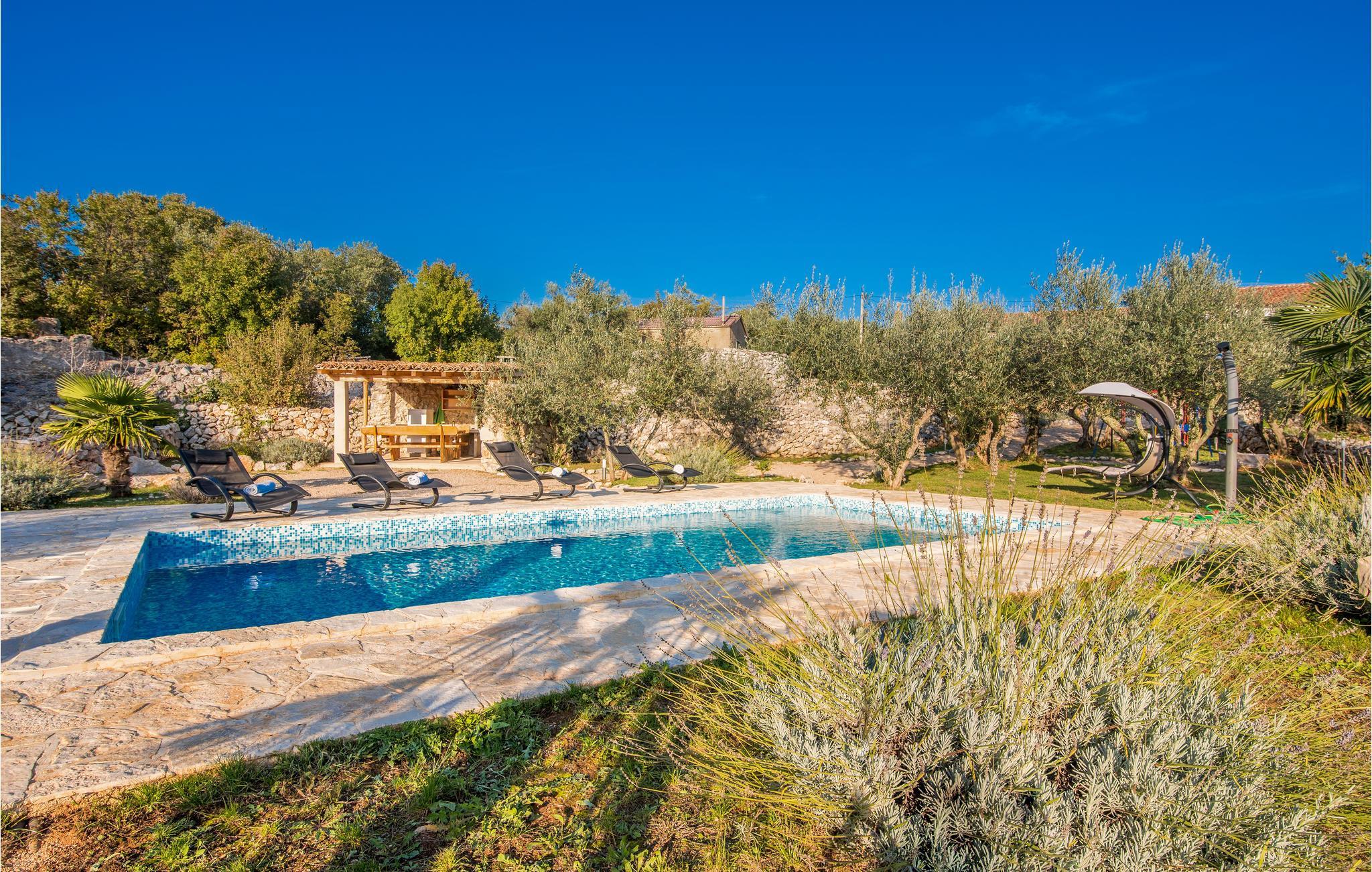 Feriehuset byder på den nødvendige komfort og afslapning. Det ligger i nærheden af olivenlunde med oliventræer, der er 100 år gamle. Fra den plejede og indhegnede have, kan I nyde udsigten over olivenlunden. Samtidig kan I slappe af ved grillen eller ved poolen med en god bog. Børnene kan lege frit og ubesværet. I stueetagen ligger boligområdet med køkken og spisestuen, indretningen er traditionelt og moderne. I kommer op på anden sal over indendørstrapper. Her er der to soveværelser. I bil kommer I hurtigt til strandene i Šilo, Cižici eller stranden med helende mudder i Klimno. Besøg byen Vrbnik og de kendte vinkældre med kvalitetsvine, som for eksempel Vrbnicka Žlahtina.