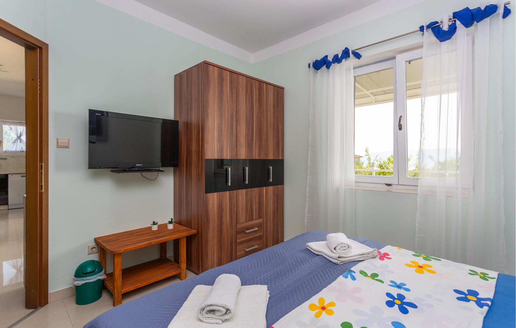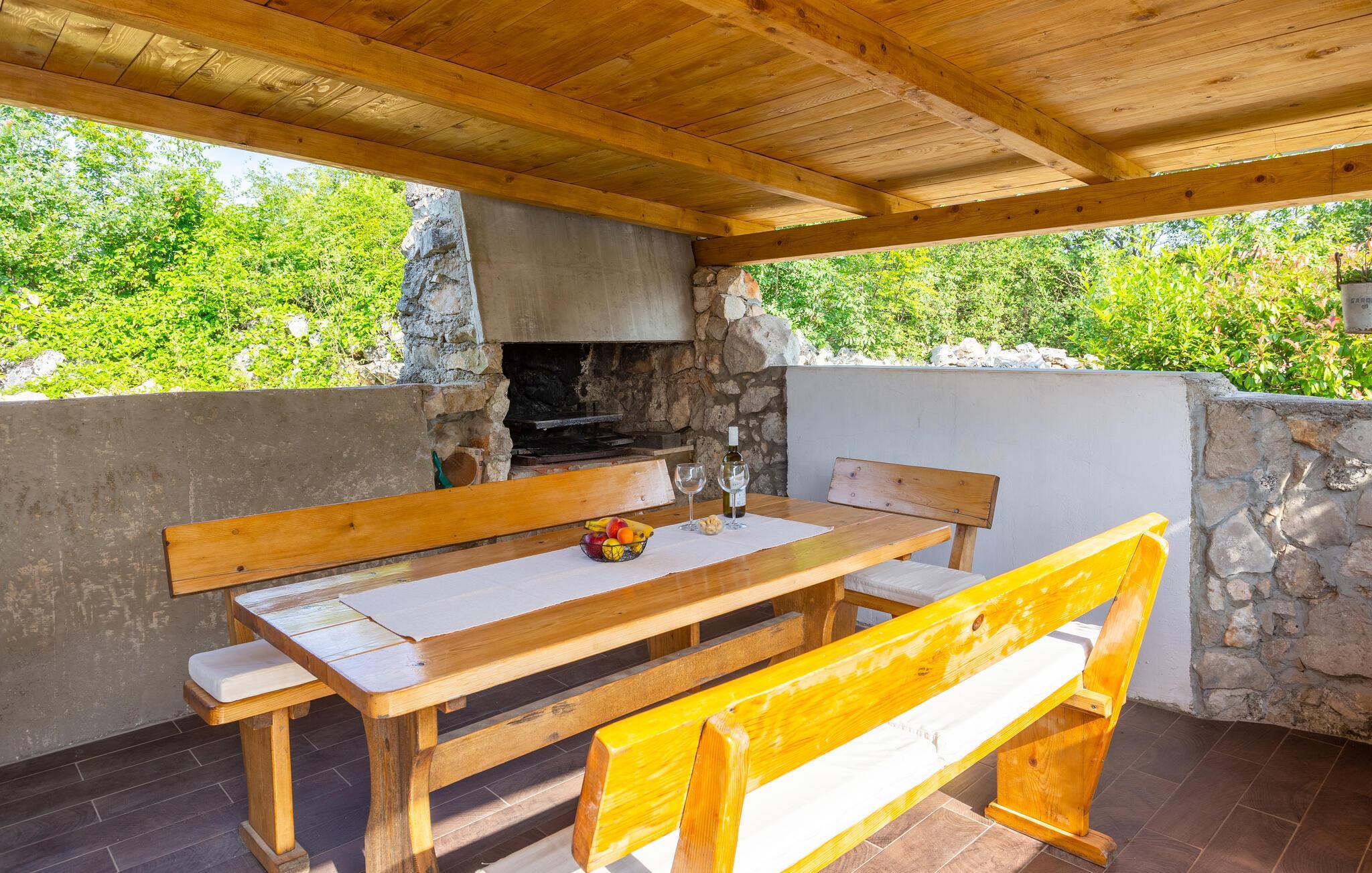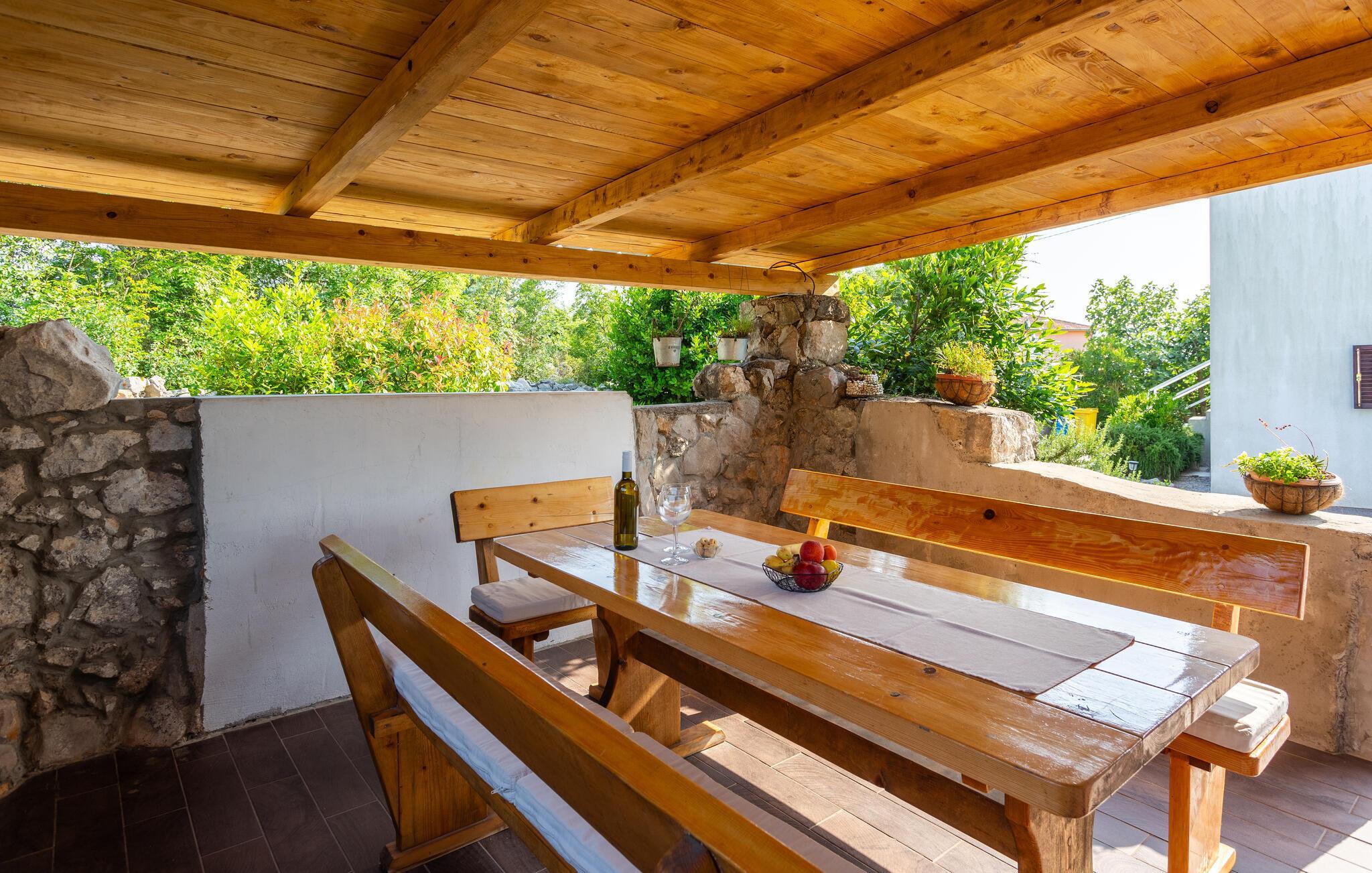 Velkommen til Krk. Et roligt og afslappende feriehus nær havet venter jer her, langt væk fra hverdagens hektiske tempo. Få en god nats søvn og nyd derefter lidt morgenmad ved køkkenbordet eller ved det charmerende træbord på den overdækkede terrasse. Sådan begynder en perfekt feriedag. Her finder I også en muret grill, der gør det nemt at kokkerere en lækker sommermiddag om aftenen. Og glæd jer til at nyde den imponerende udsigt over det blå hav fra terrassen ovenover.