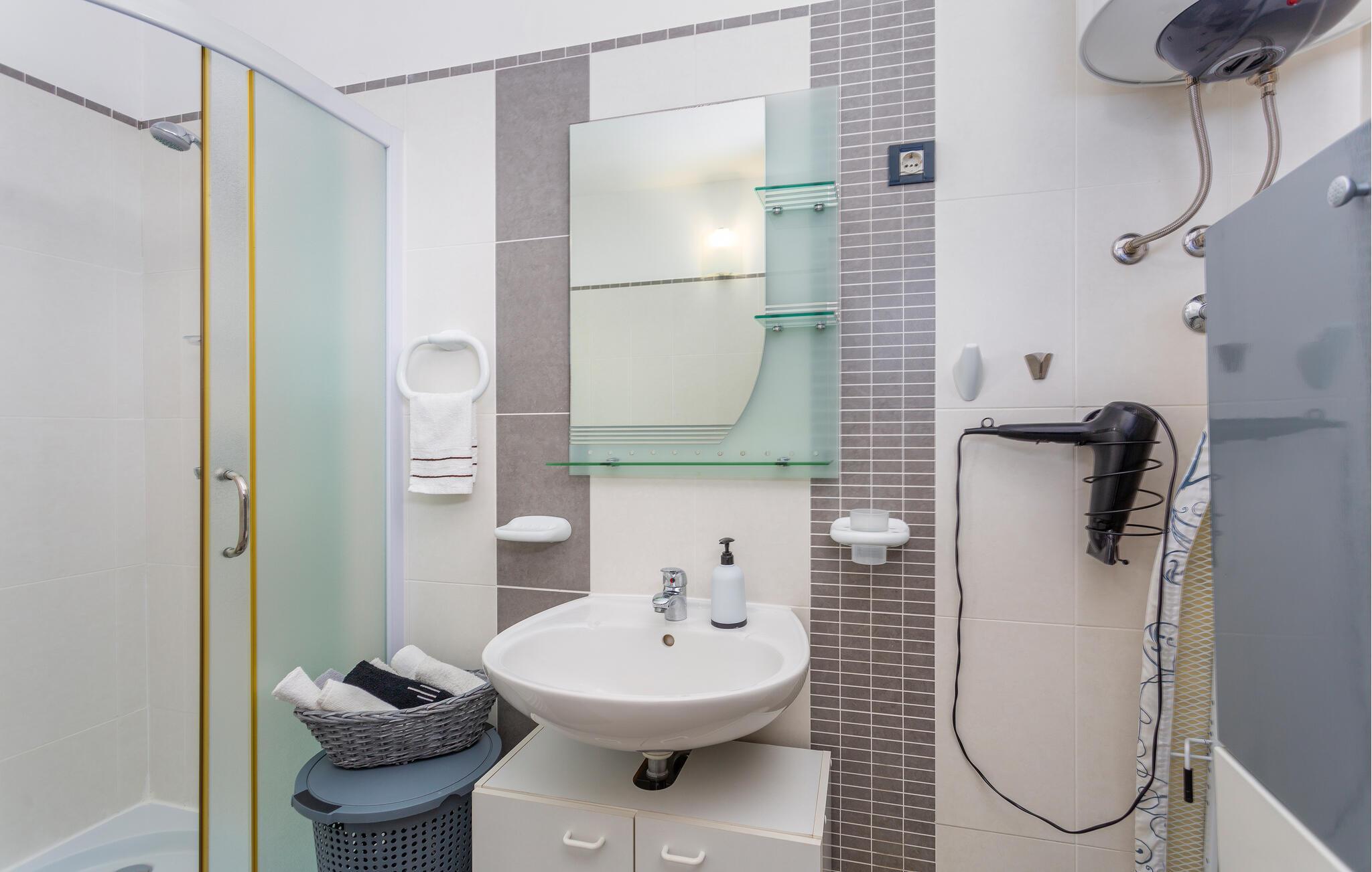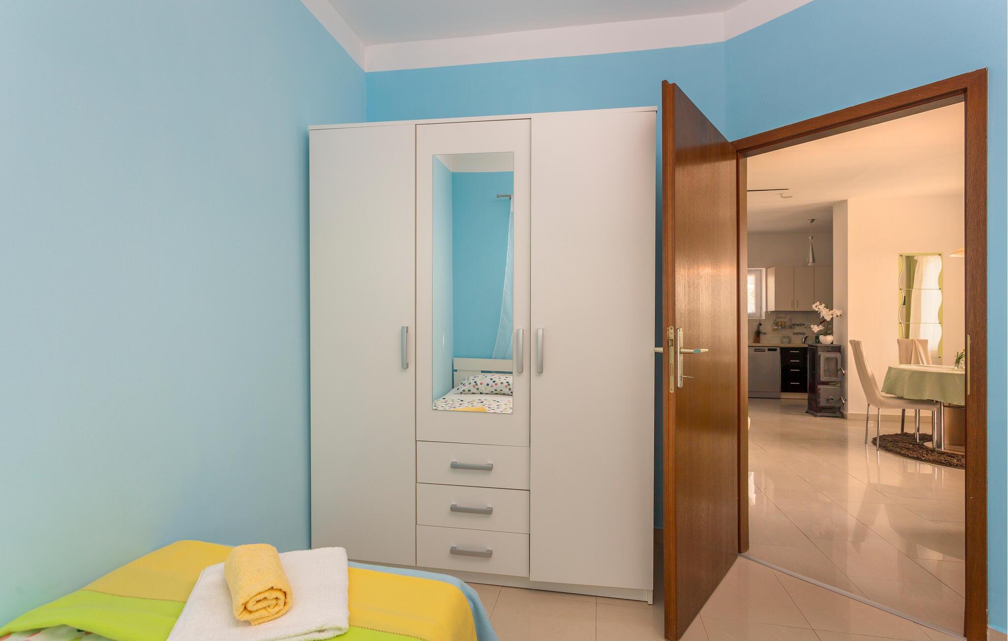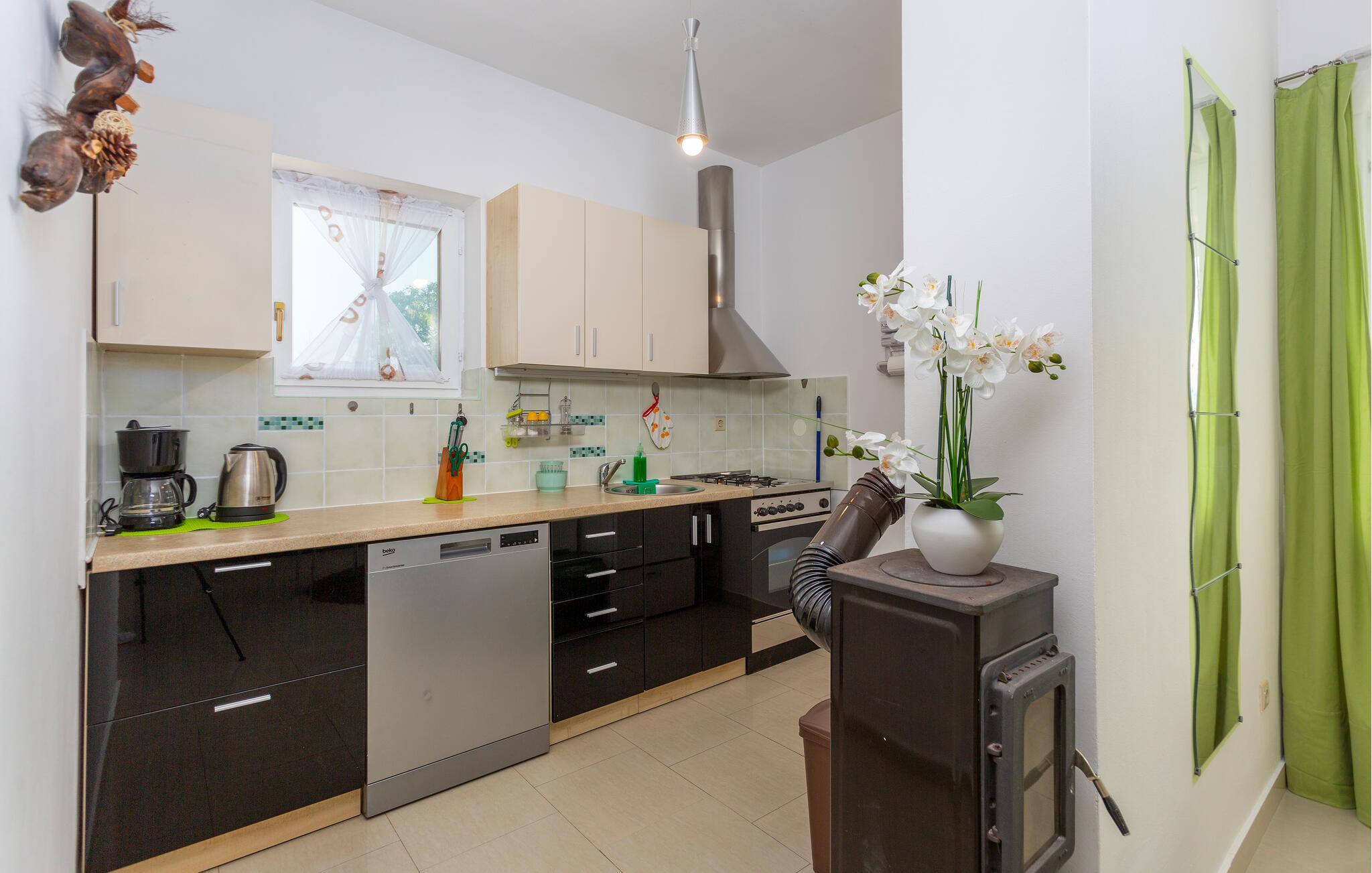 Velkommen til Krk. Et roligt og afslappende feriehus nær havet venter jer her, langt væk fra hverdagens hektiske tempo. Få en god nats søvn og nyd derefter lidt morgenmad ved køkkenbordet eller ved det charmerende træbord på den overdækkede terrasse. Sådan begynder en perfekt feriedag. Her finder I også en muret grill, der gør det nemt at kokkerere en lækker sommermiddag om aftenen. Og glæd jer til at nyde den imponerende udsigt over det blå hav fra terrassen ovenover.